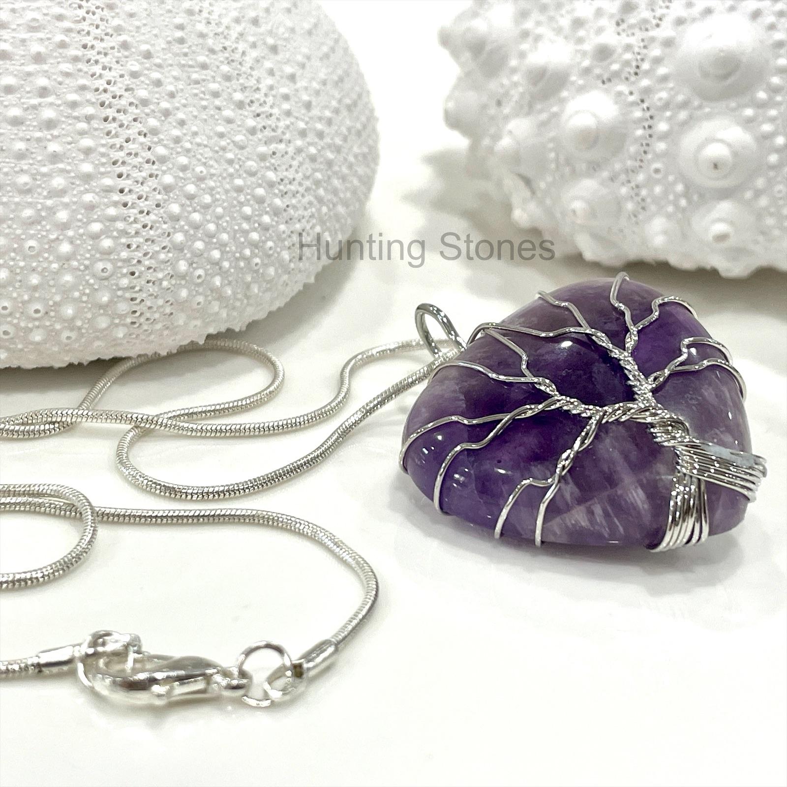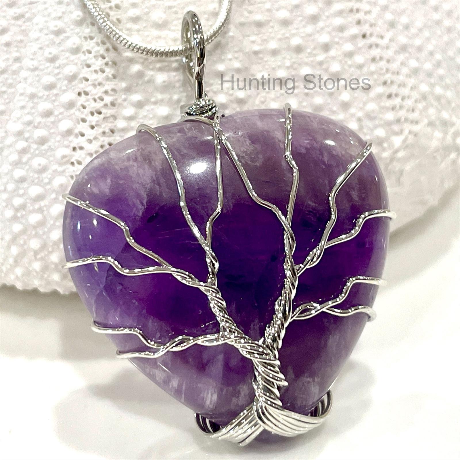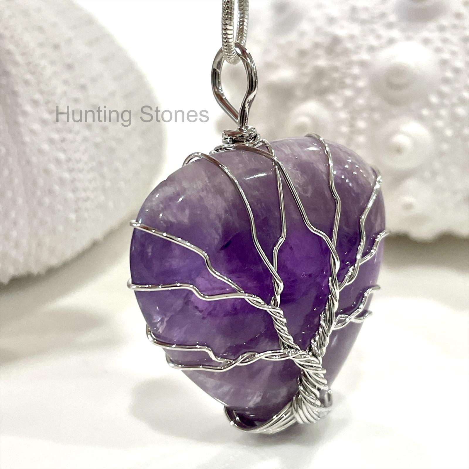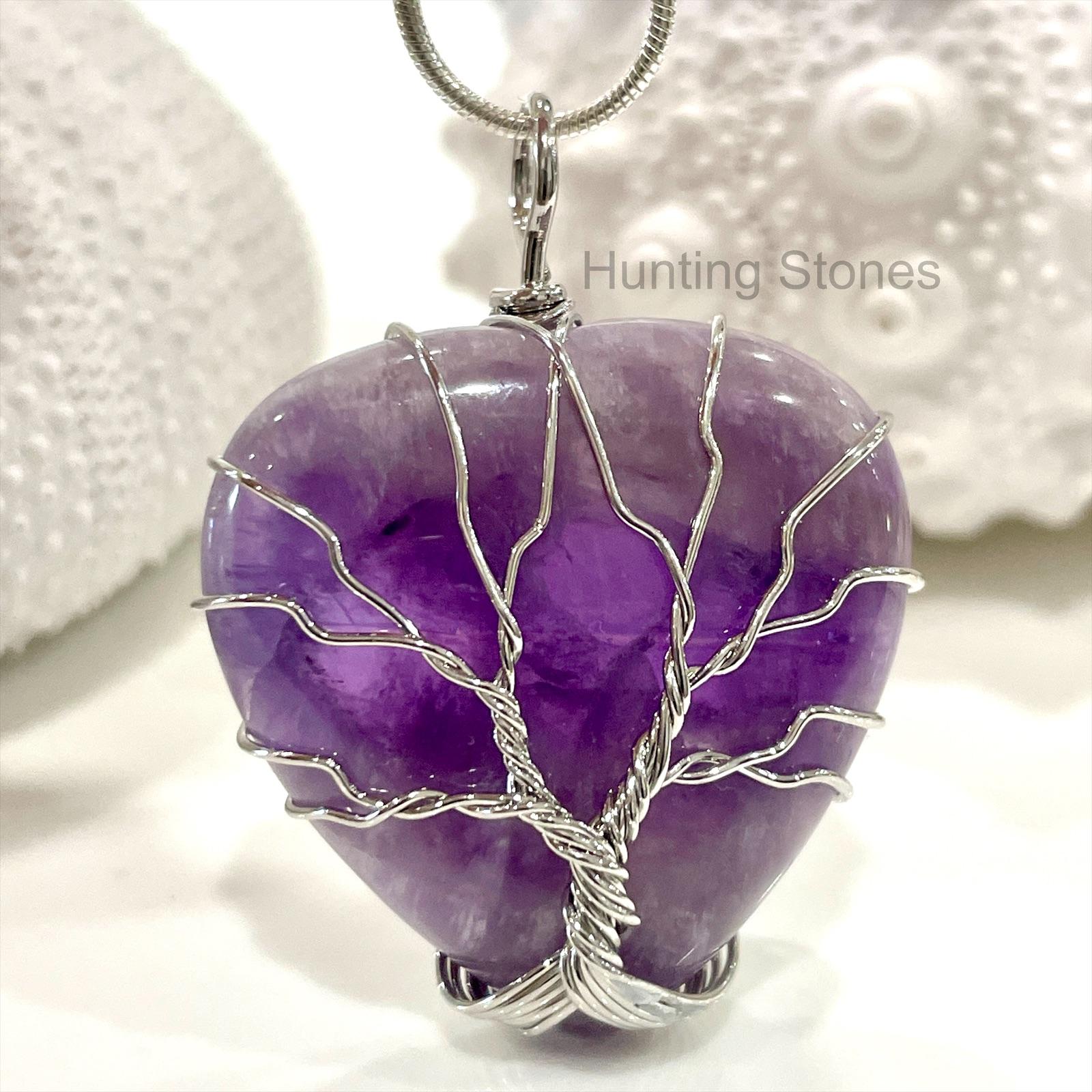 Amethyst Tree of Life Heart Natural Crystal Necklace – 31mm Peace Intuition