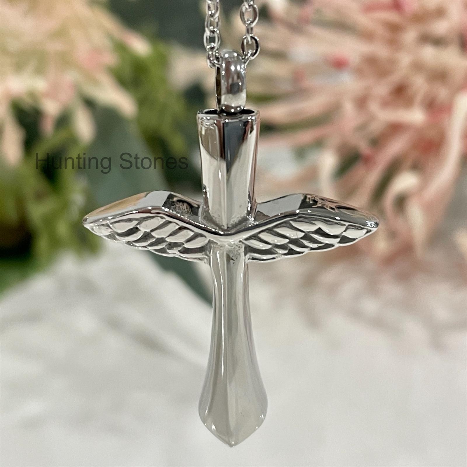 Angel Wing Cross Memorial Cremation Ashes Urn Pendant Necklace
