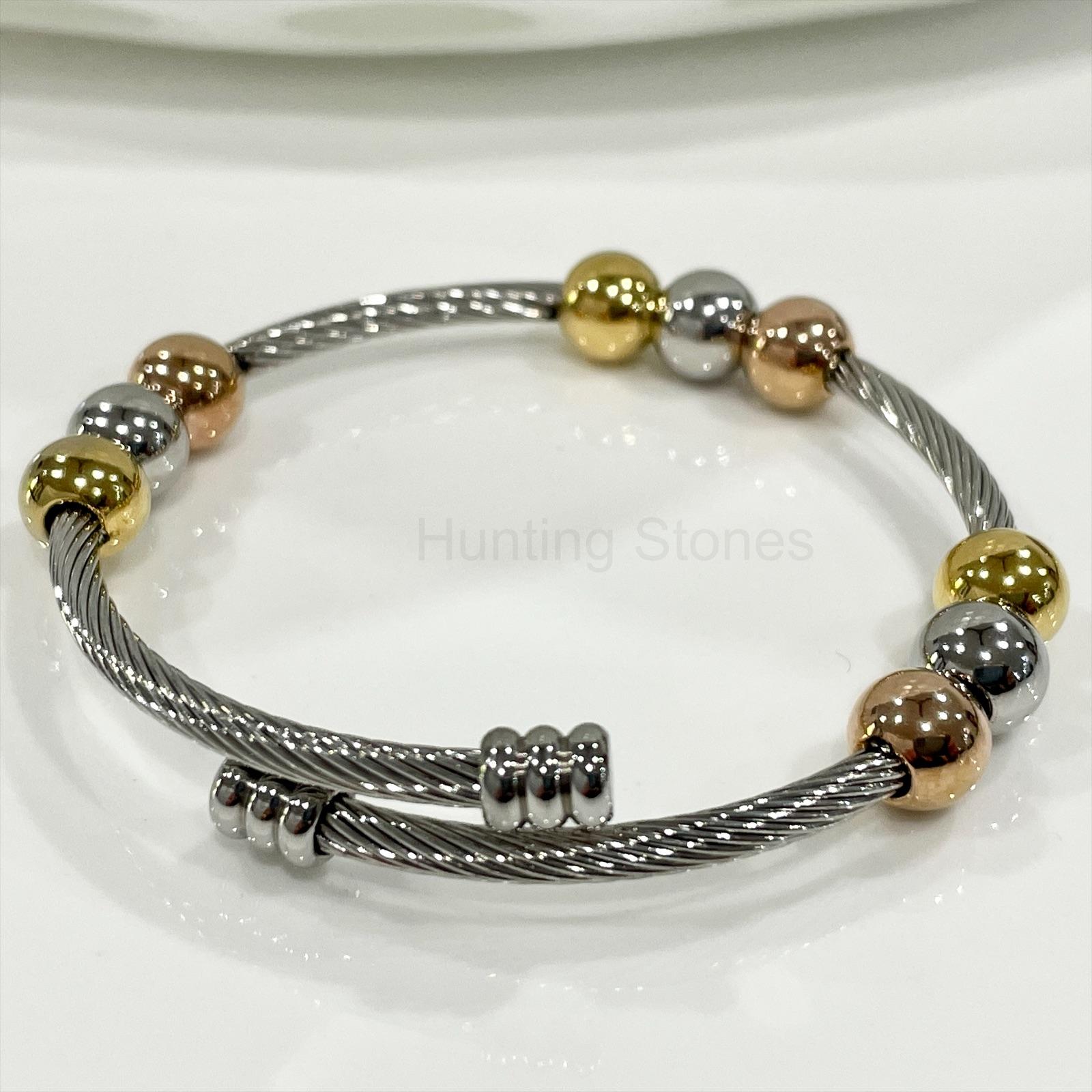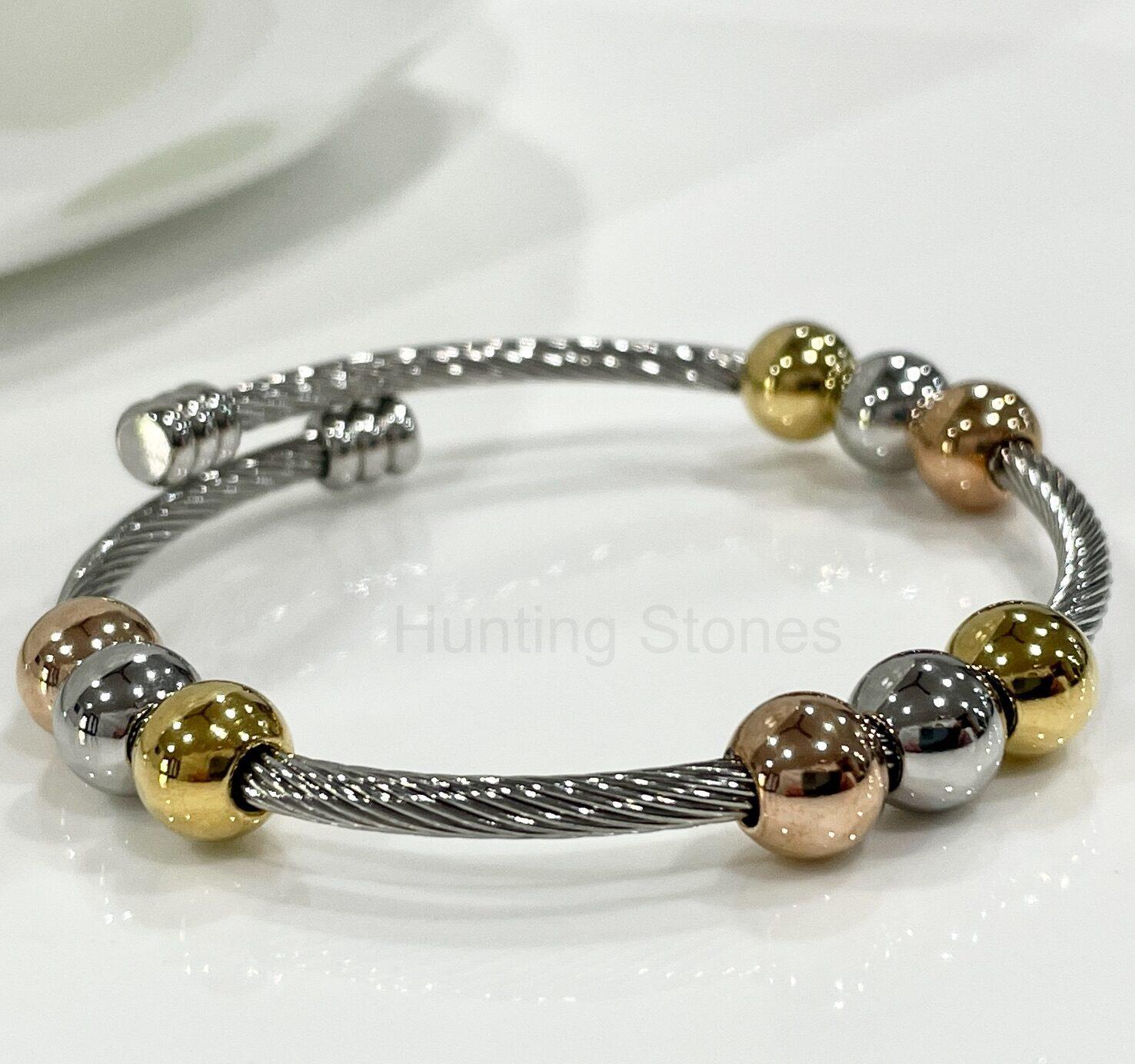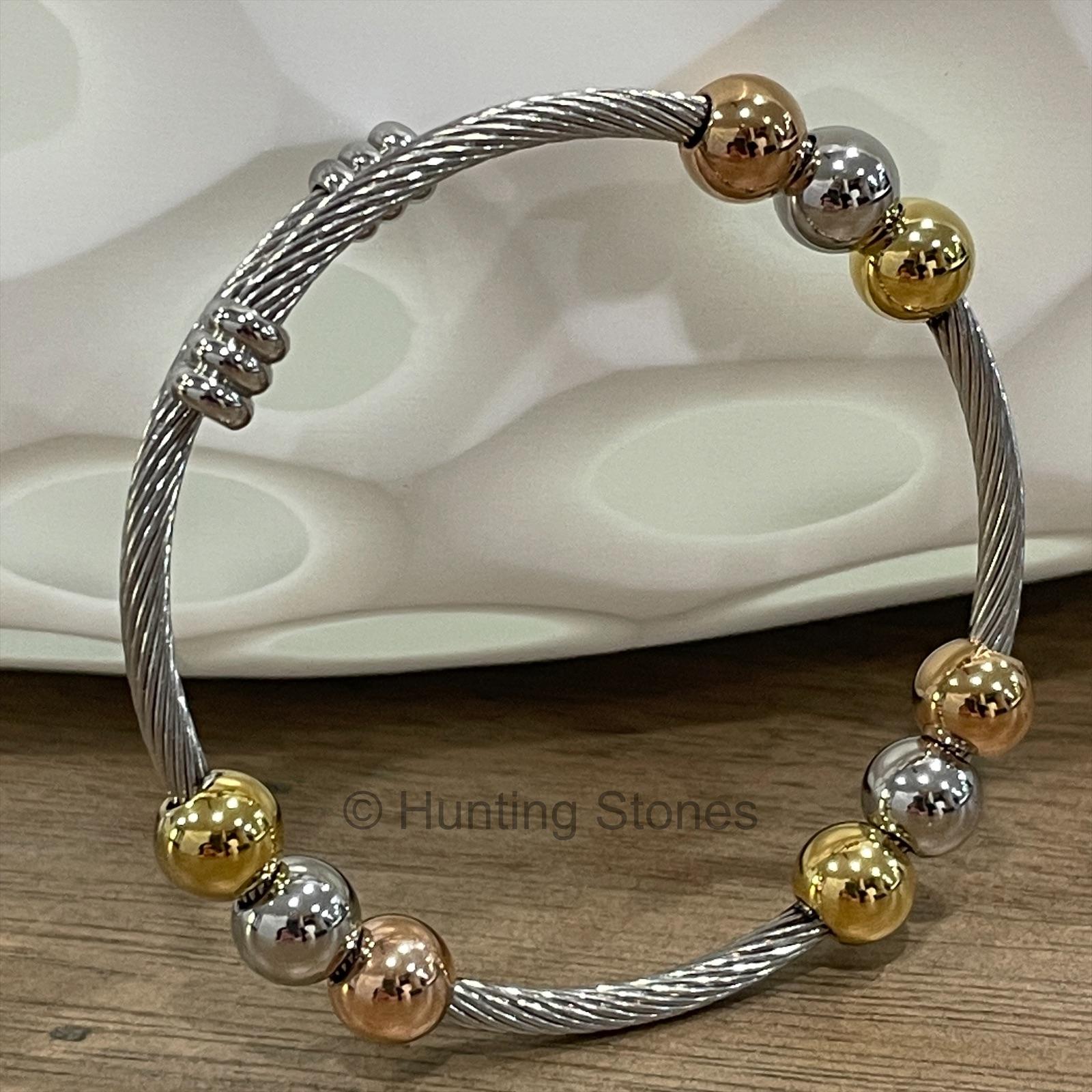 - 8mm rose gold, silver and gold plated stainless steel beads