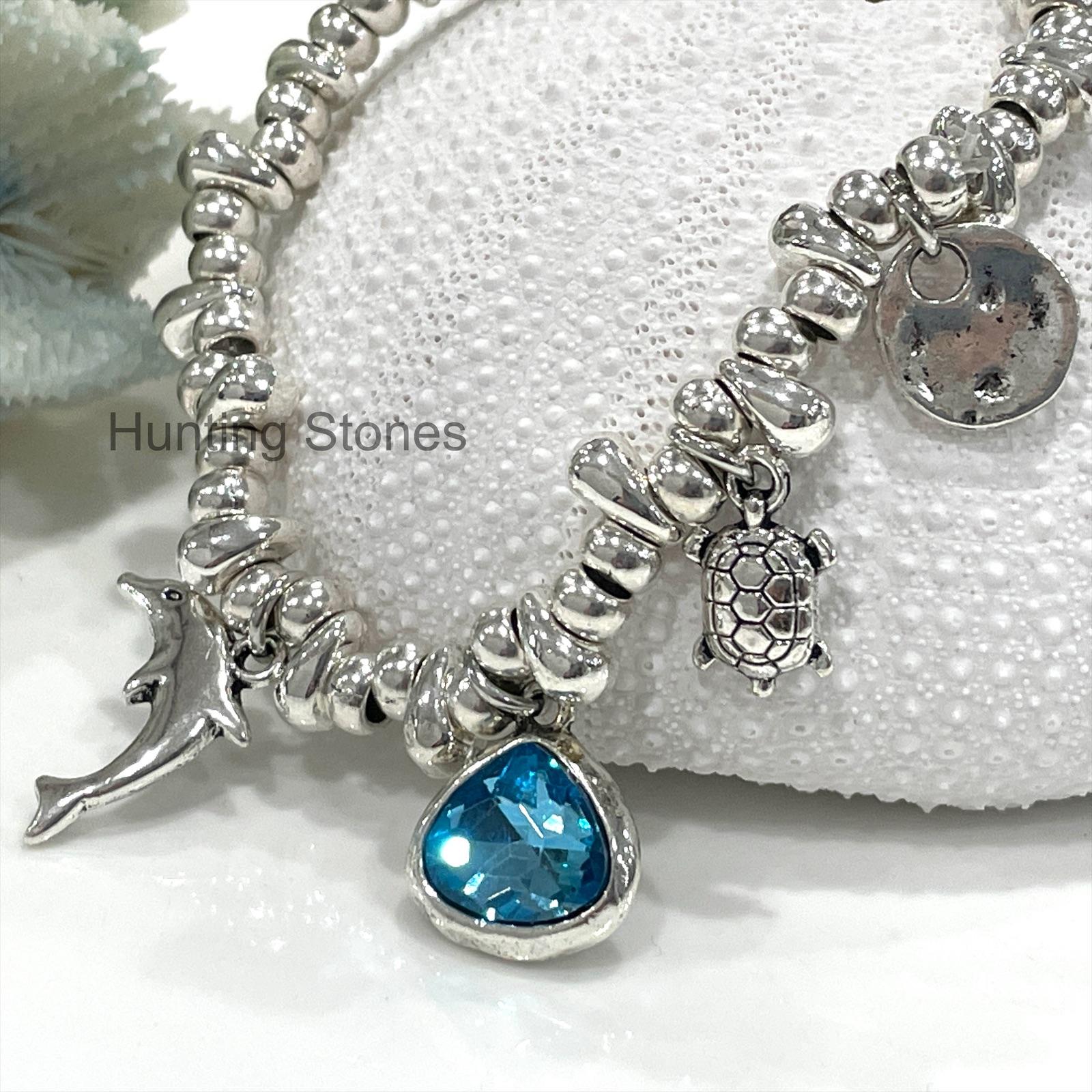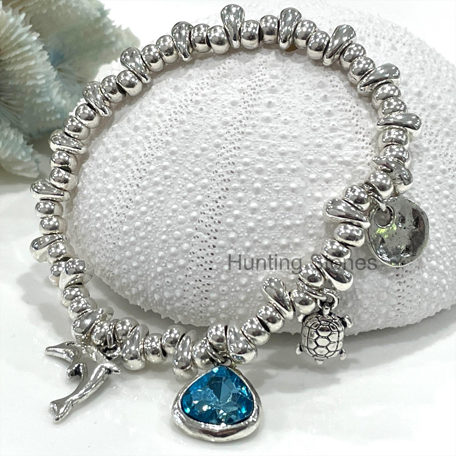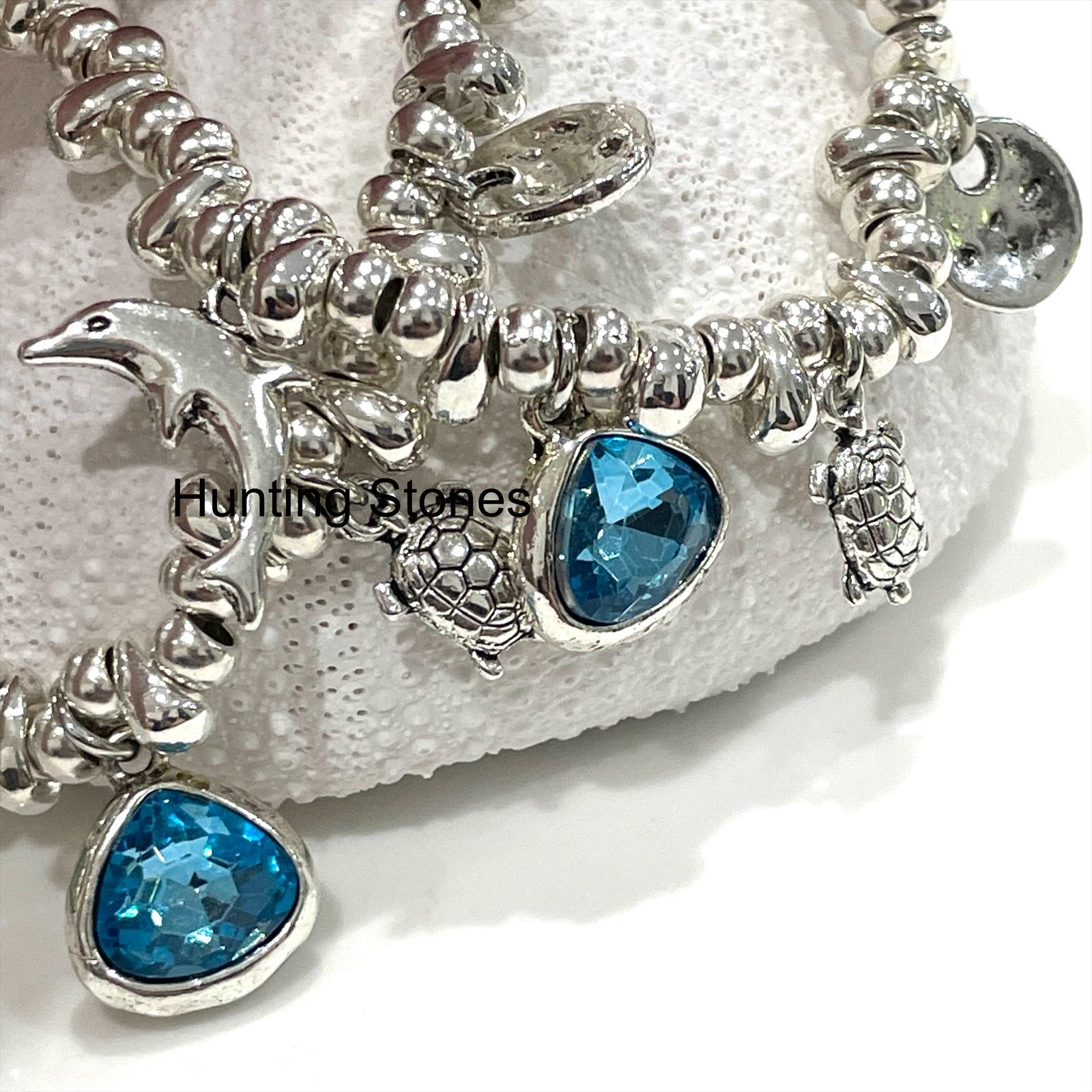 Beautiful Beach Collection Bracelet Dolphin Turtle Blue Crystal
