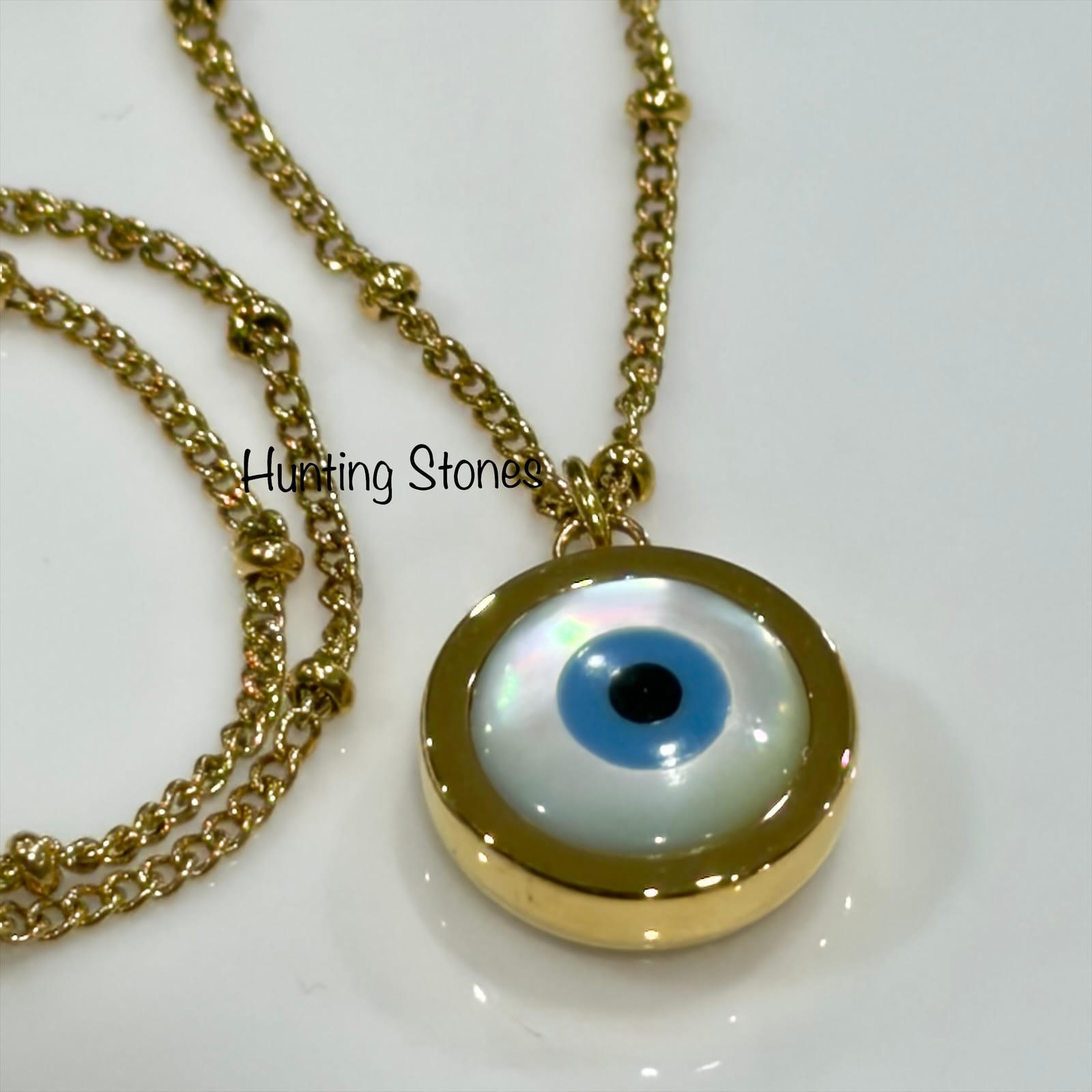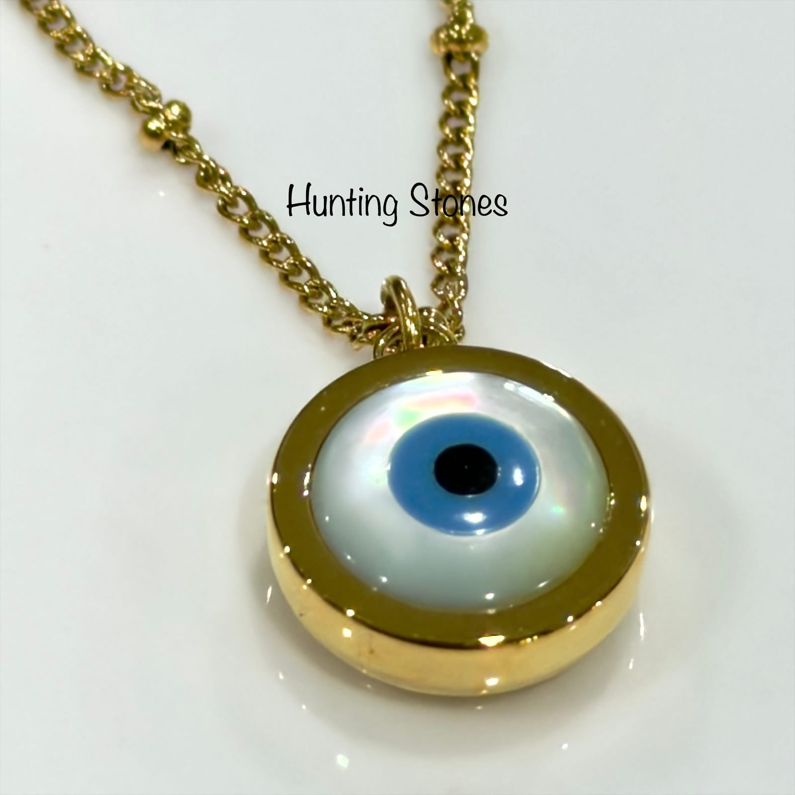 Beautiful Natural Shell Evil Eye Talisman Necklace 13mm