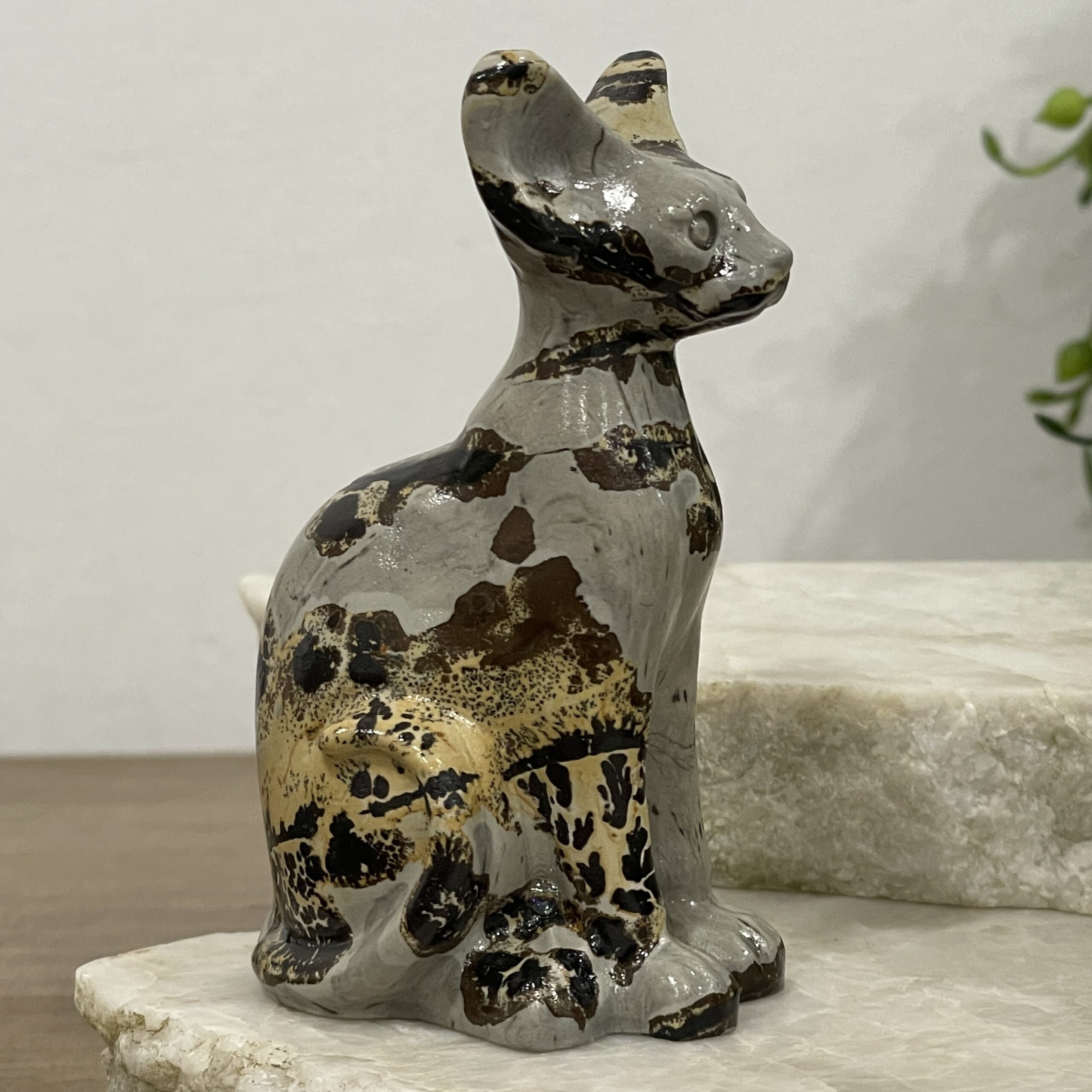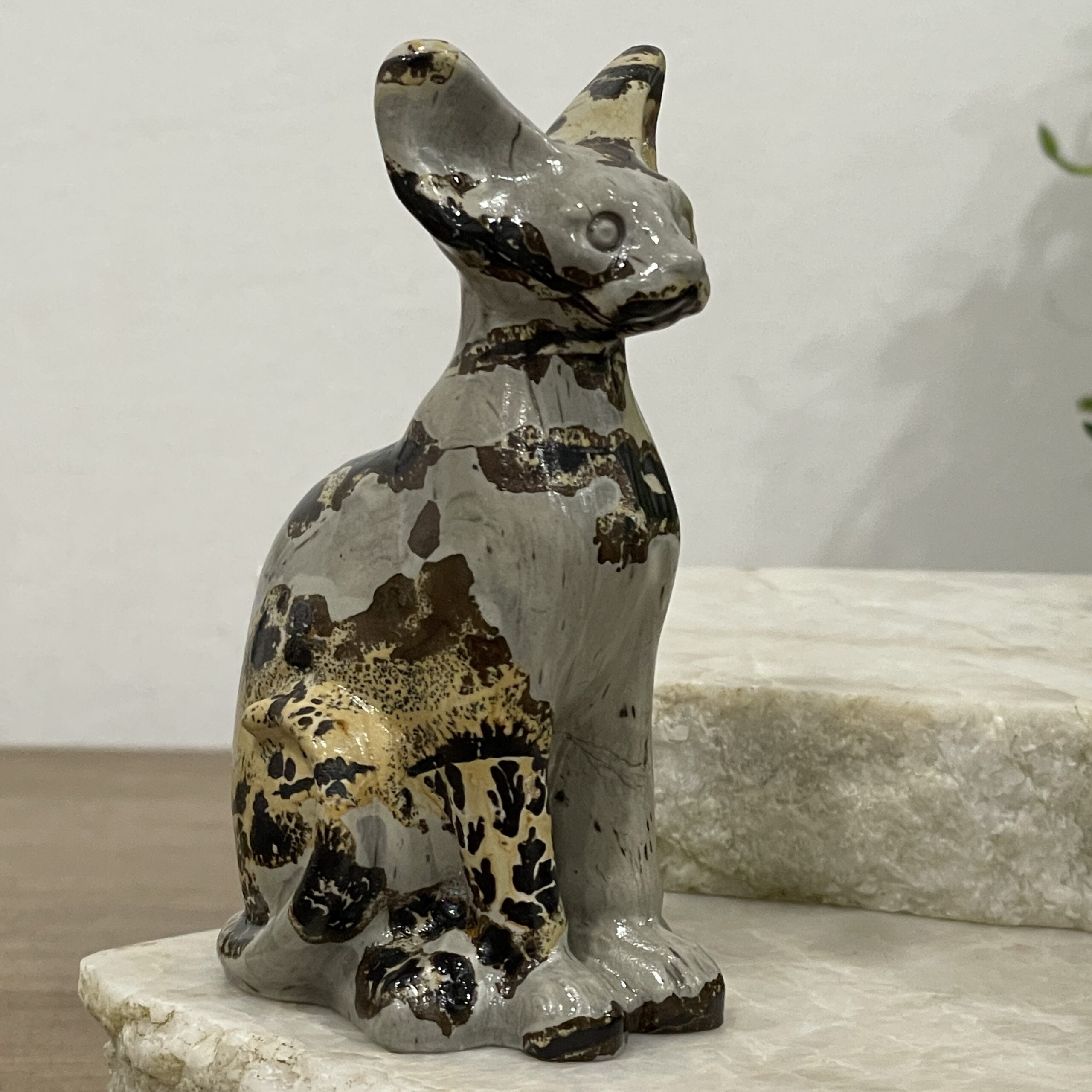 Beautiful Picture Jasper Crystal Egyptian Cat Statue – Sphinx 81mm 02