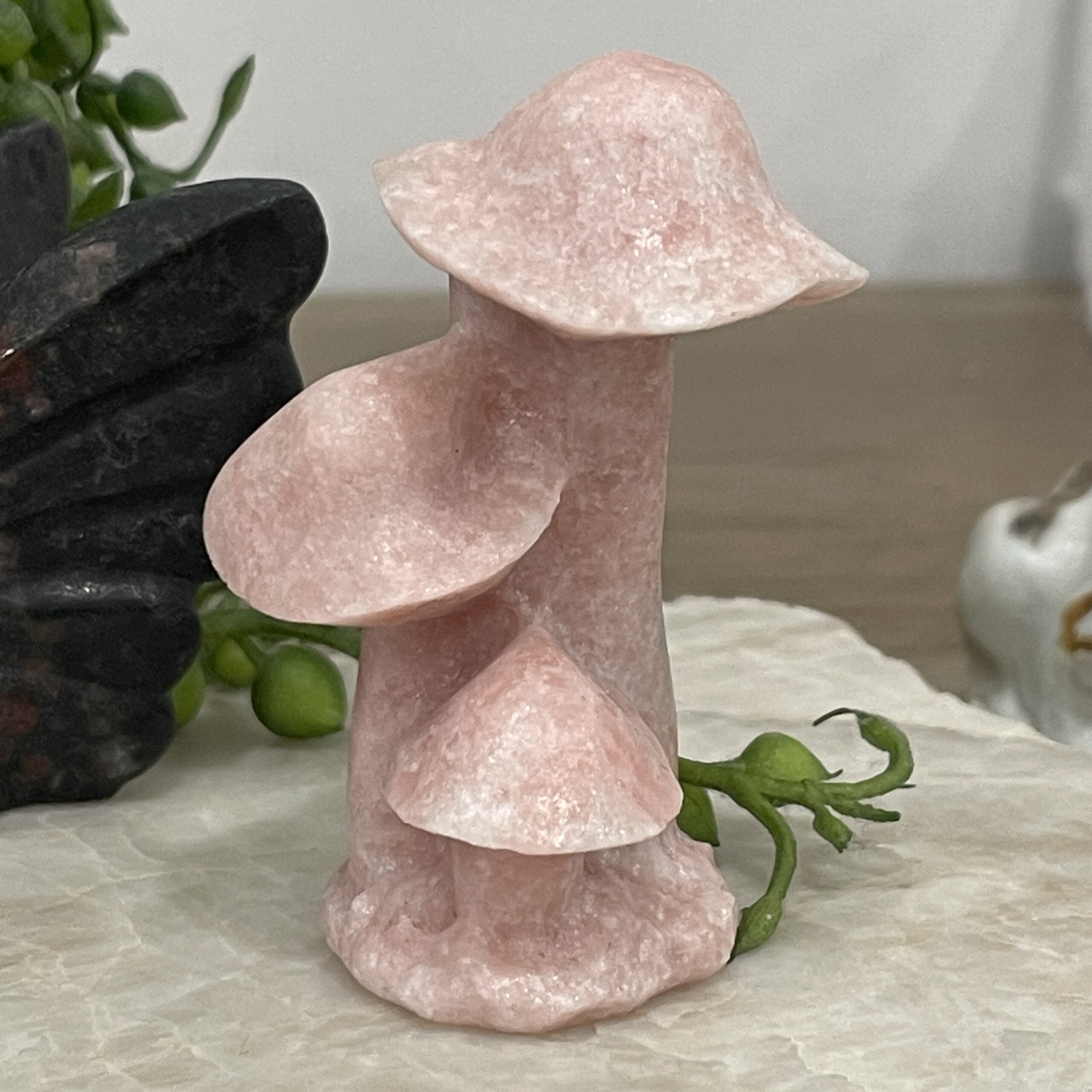 Beautiful Pink Jasper Crystal Mushroom Trio – 6cm 02