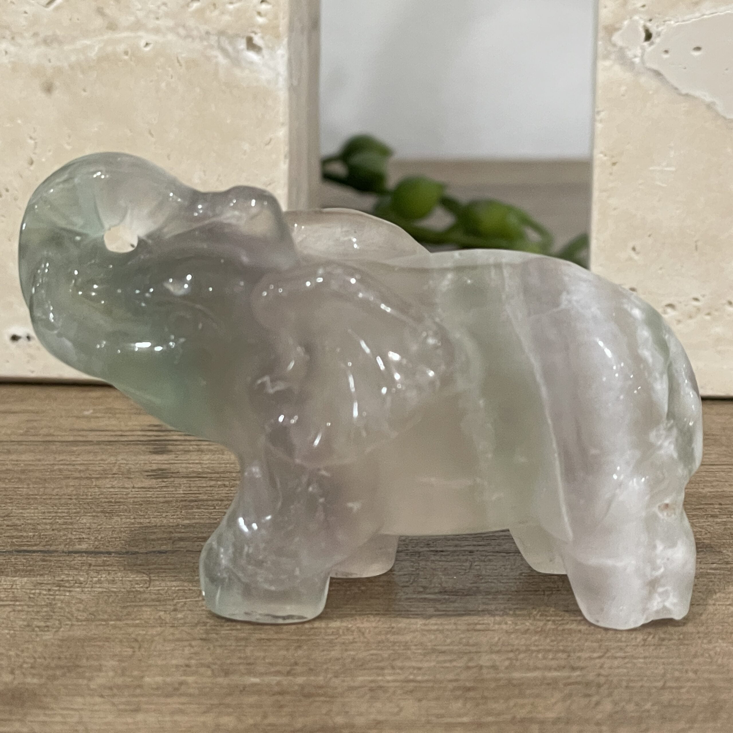 Beautiful Rainbow Fluorite Crystal Elephant – 5.9cm 01 – Good Luck