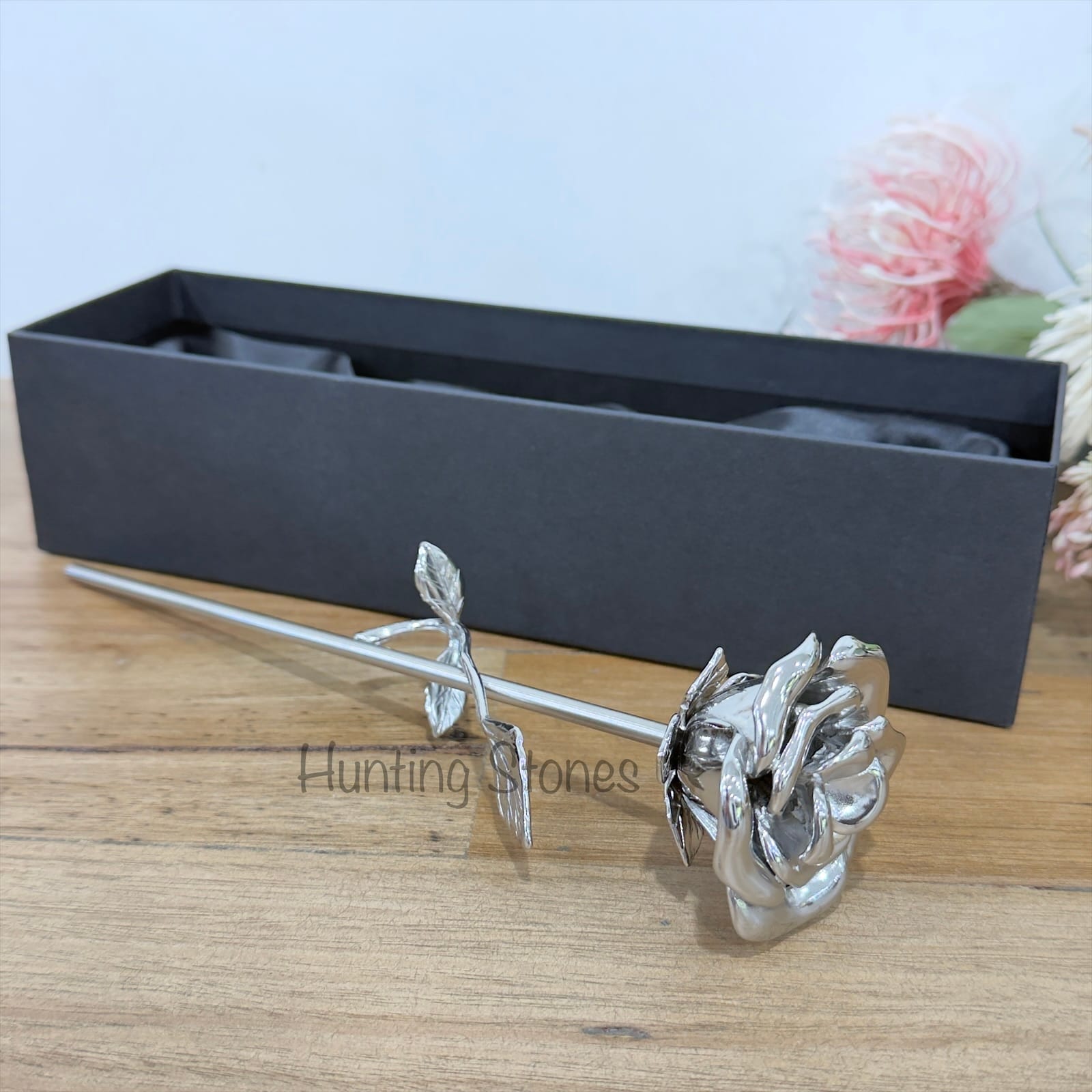 - Stainless Steel Rose finished in a high quality silver colour plating