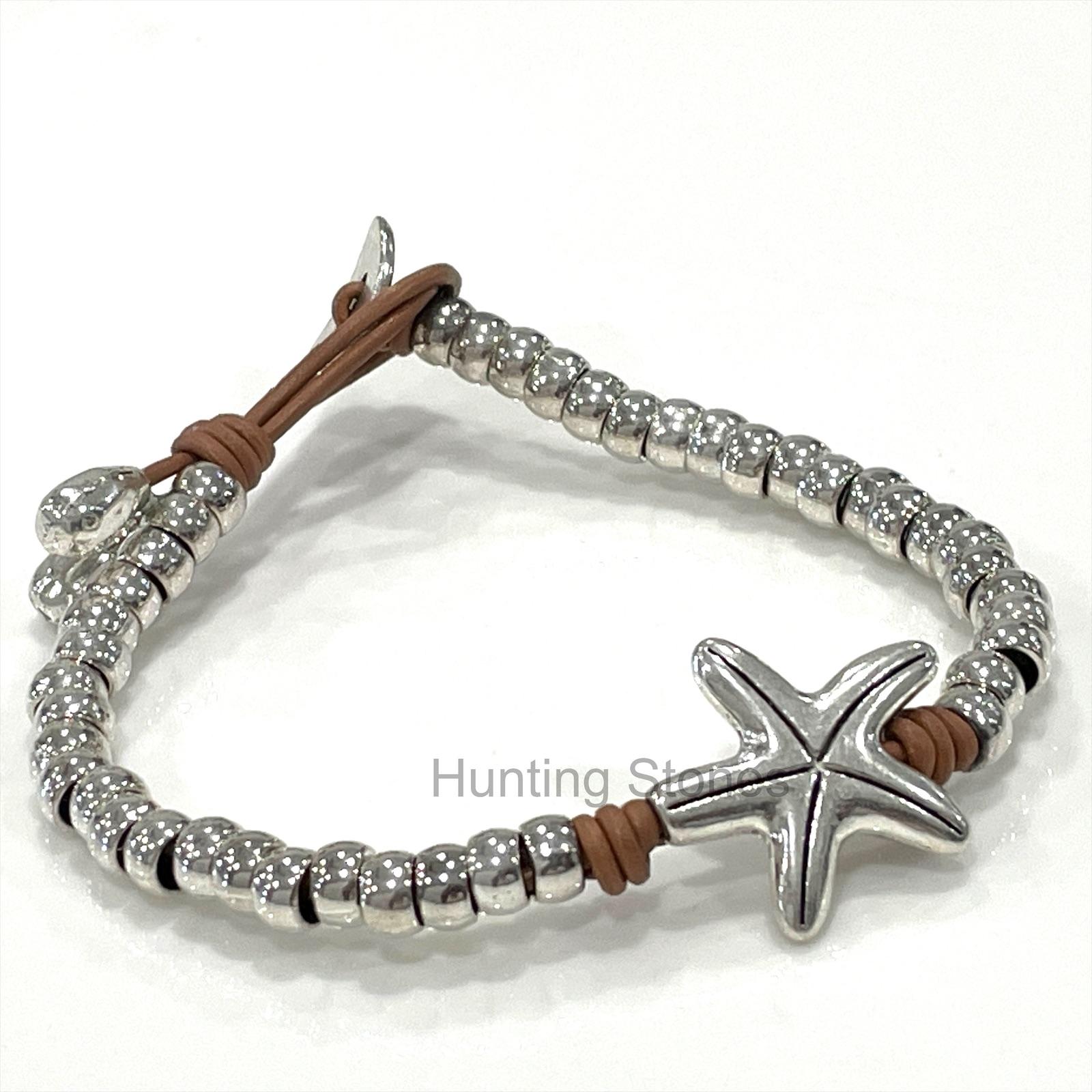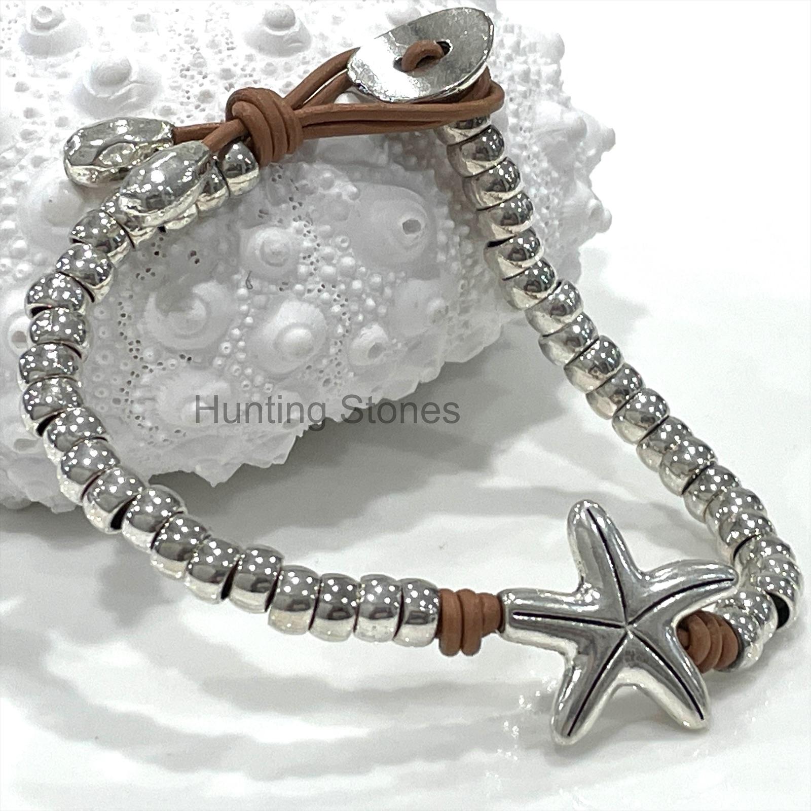 Genuine leather Starfish bracelet 7.5 inch Light Brown