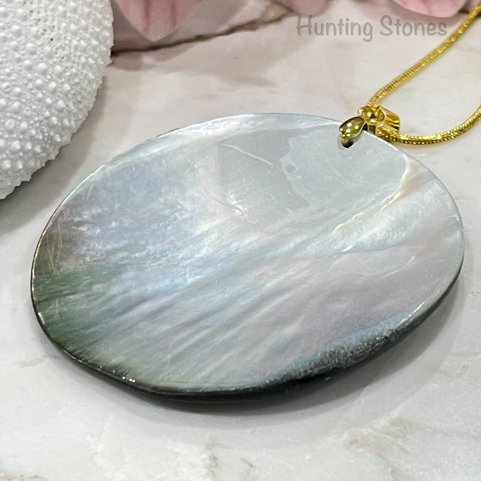 Beautiful handmade natural shell pendant with a gold foil sea turtle that has been sealed on the front to protect and provide a quality smooth finish