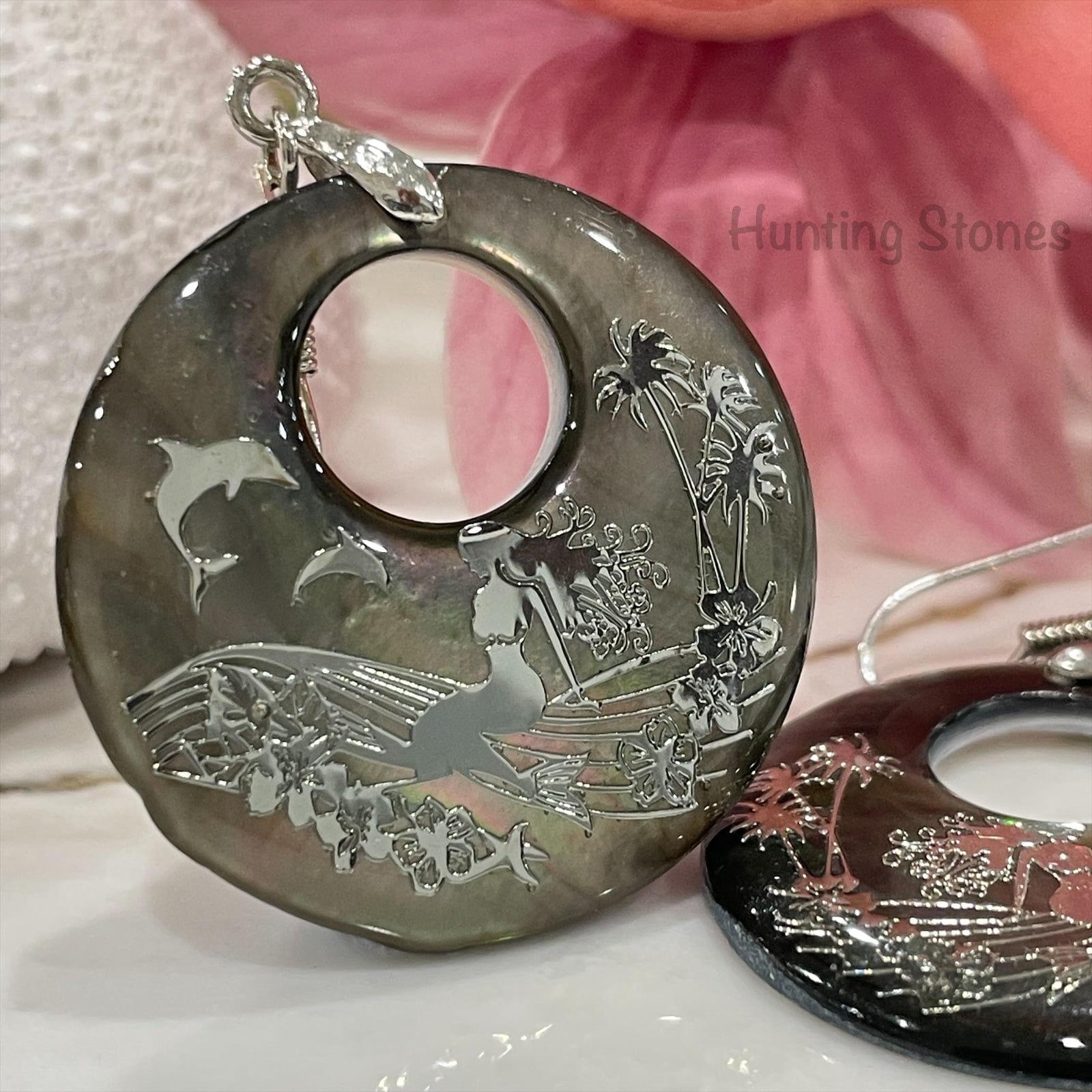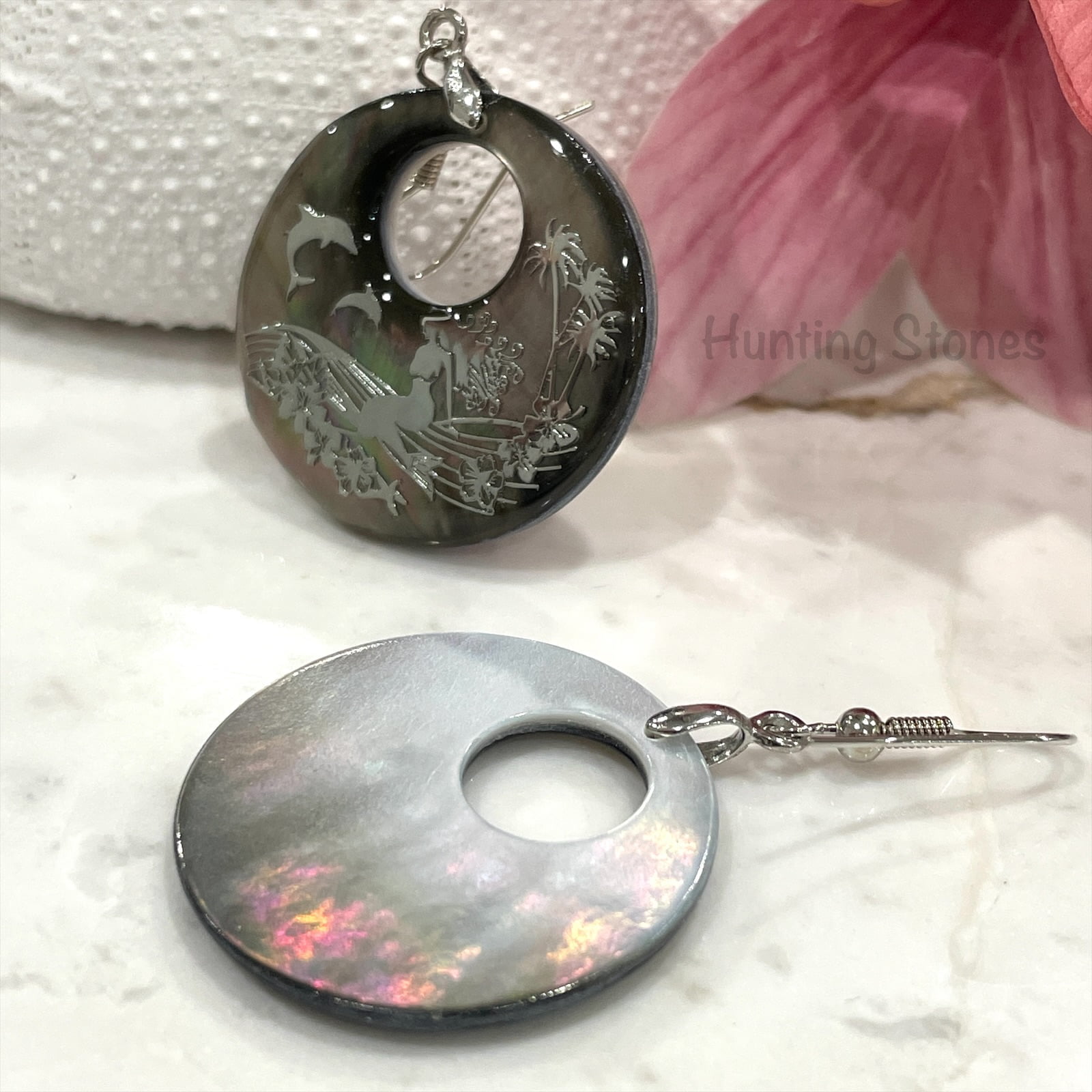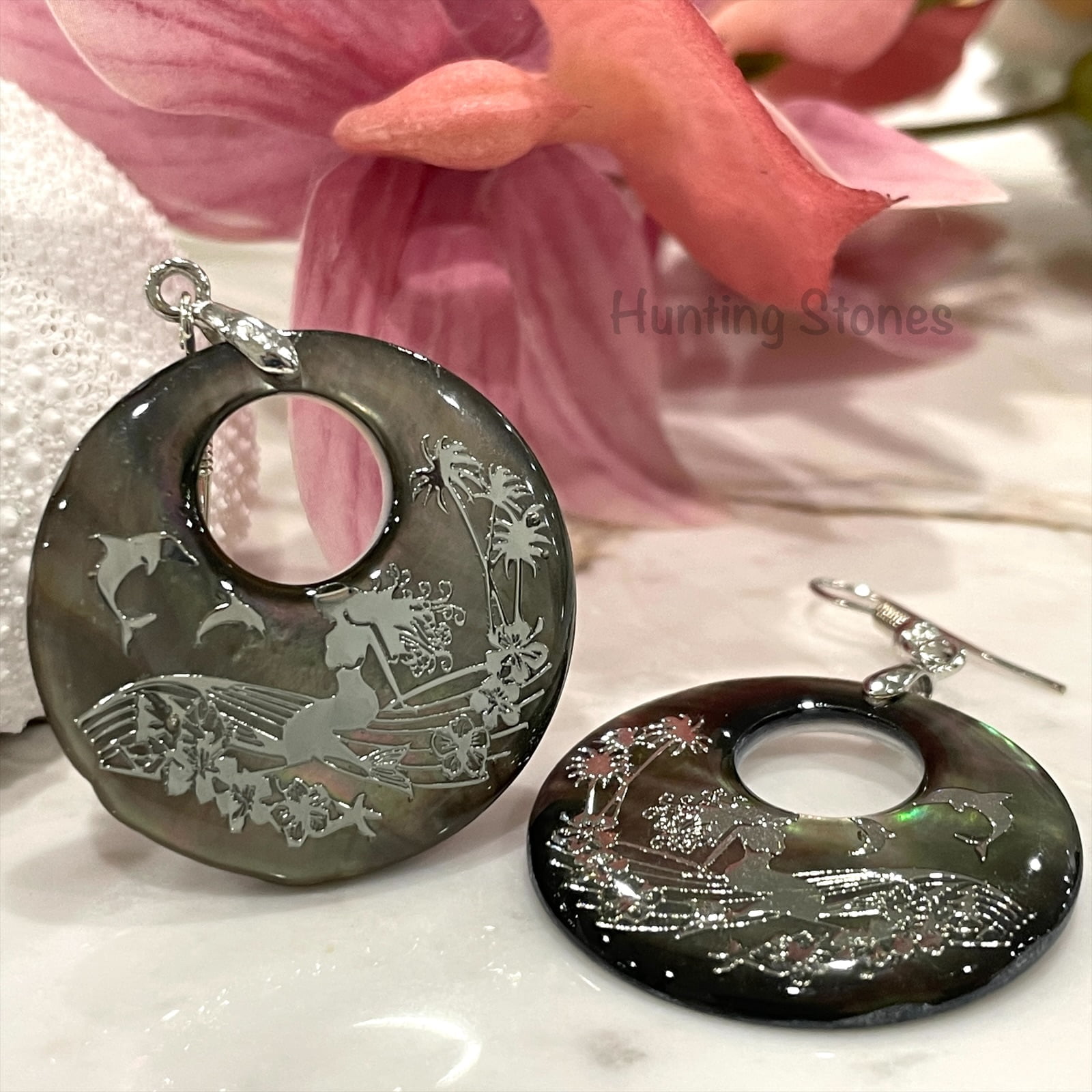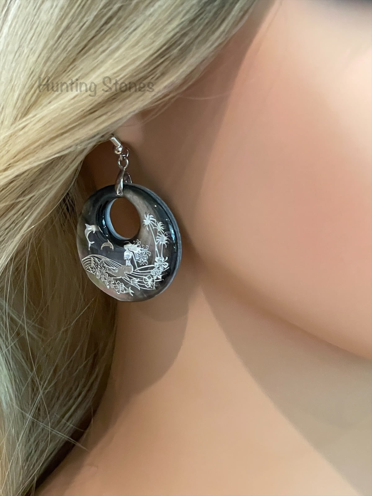 Handmade Natural Abalone Shell Mermaid and Dolphins Earrings
