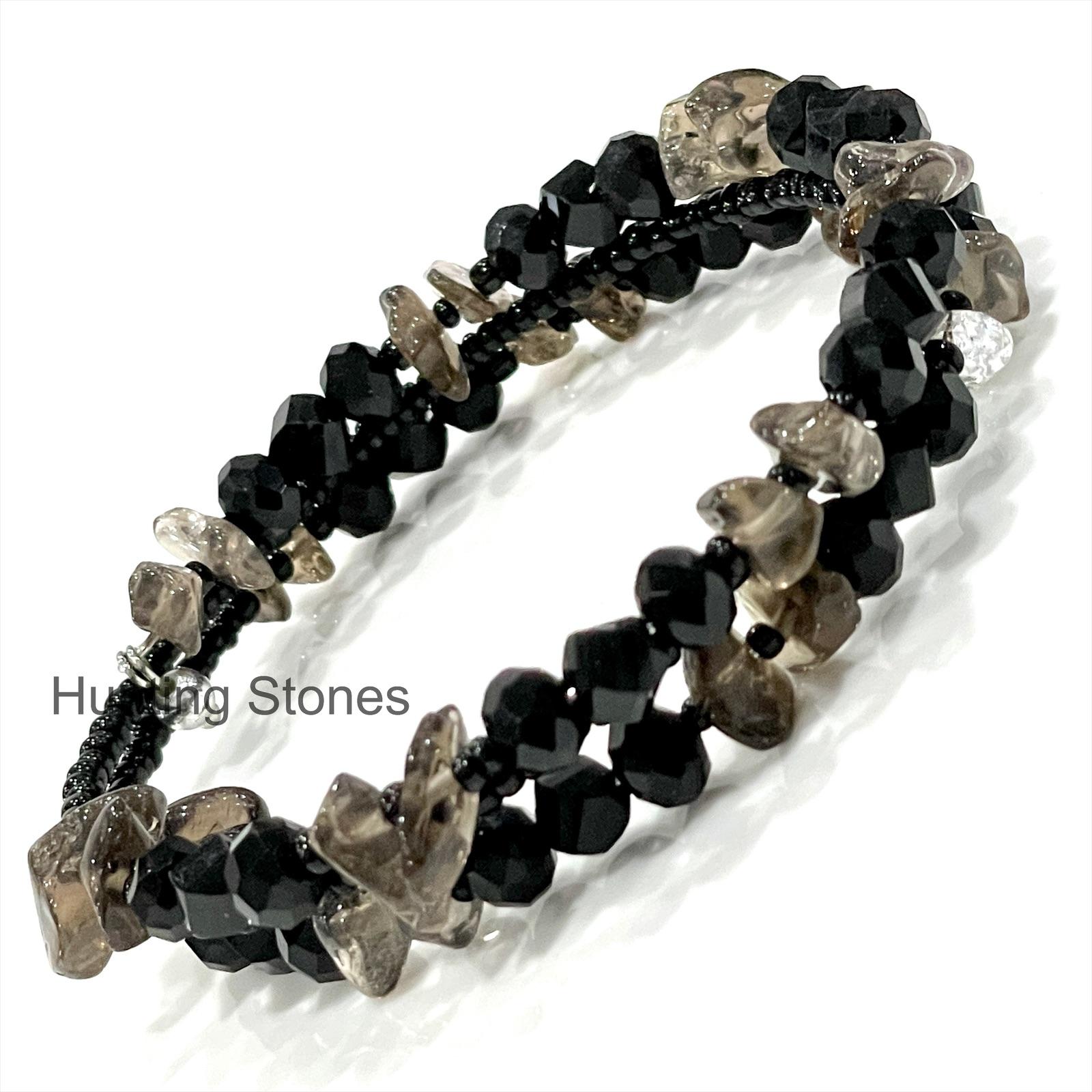 Handmade Smoky Quartz Crystal Bracelet 3 layers – 7 inch stretchy – Limited Stock