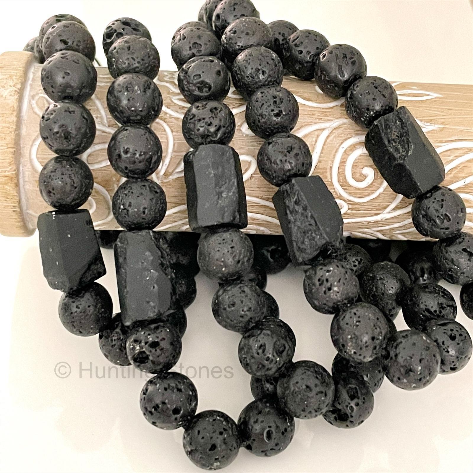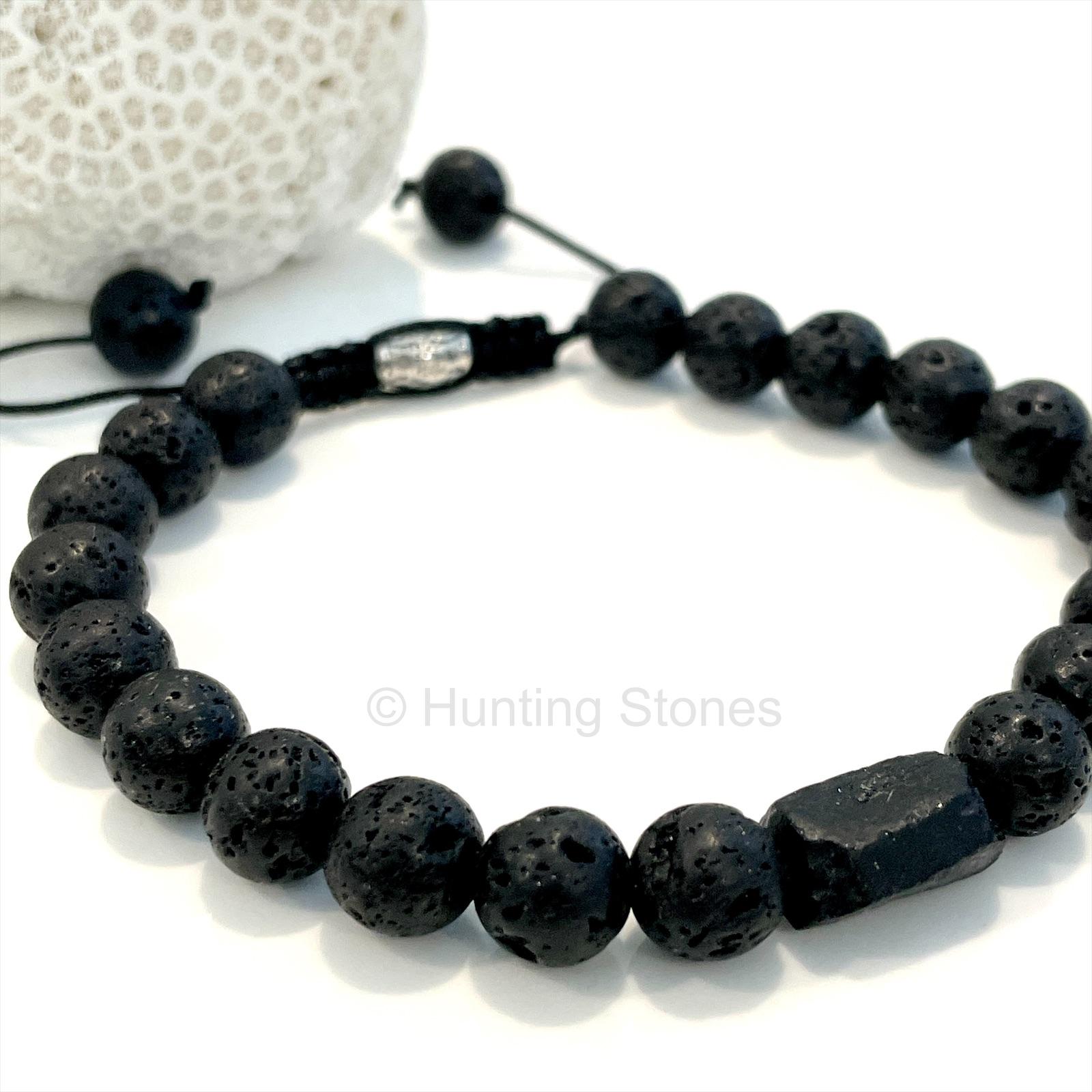 Tourmaline crystal and Lava natural gemstone Unisex bracelet