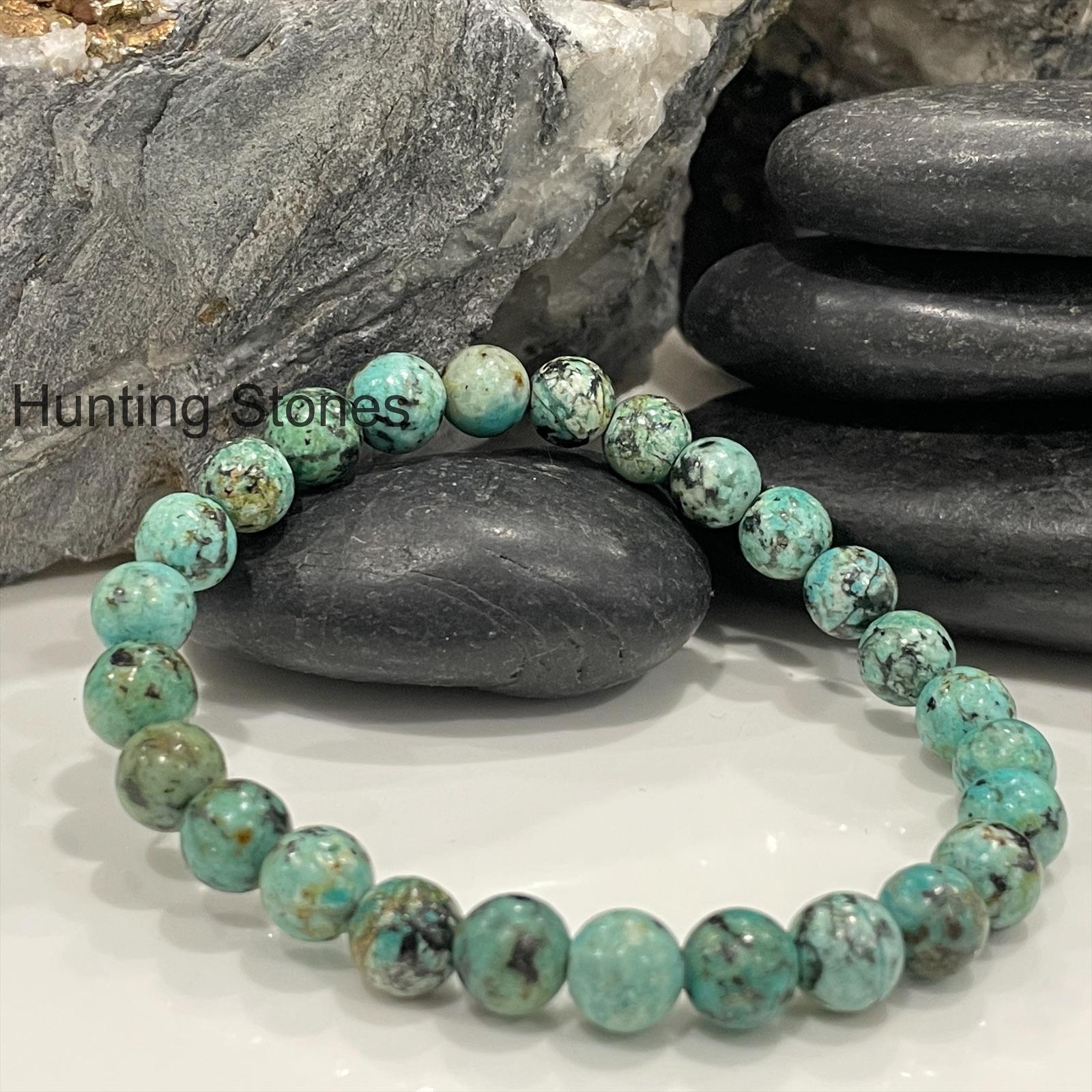 Hunting Stones Natural African Turquoise Unisex Gemstone Bracelet – 3 Sizes stretch