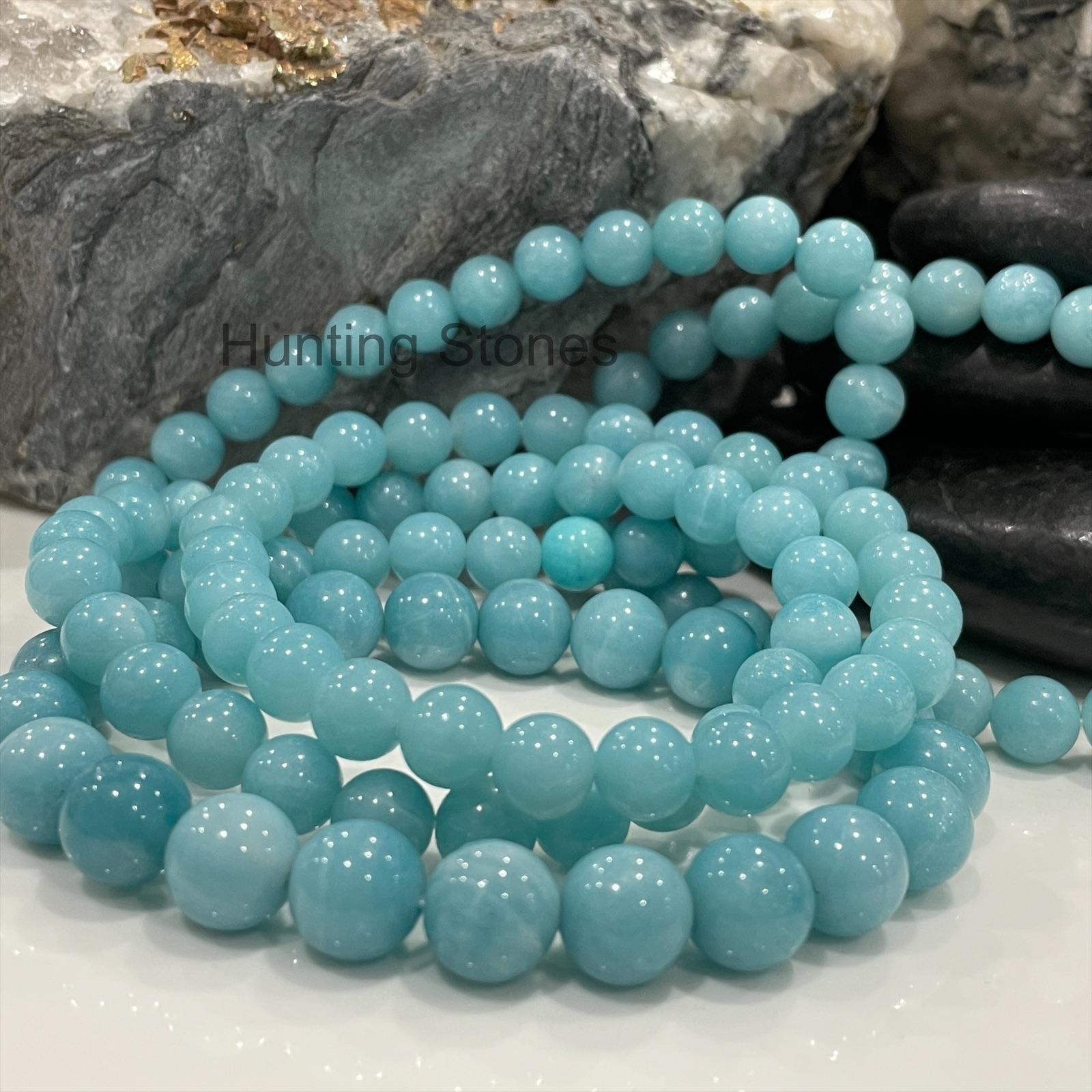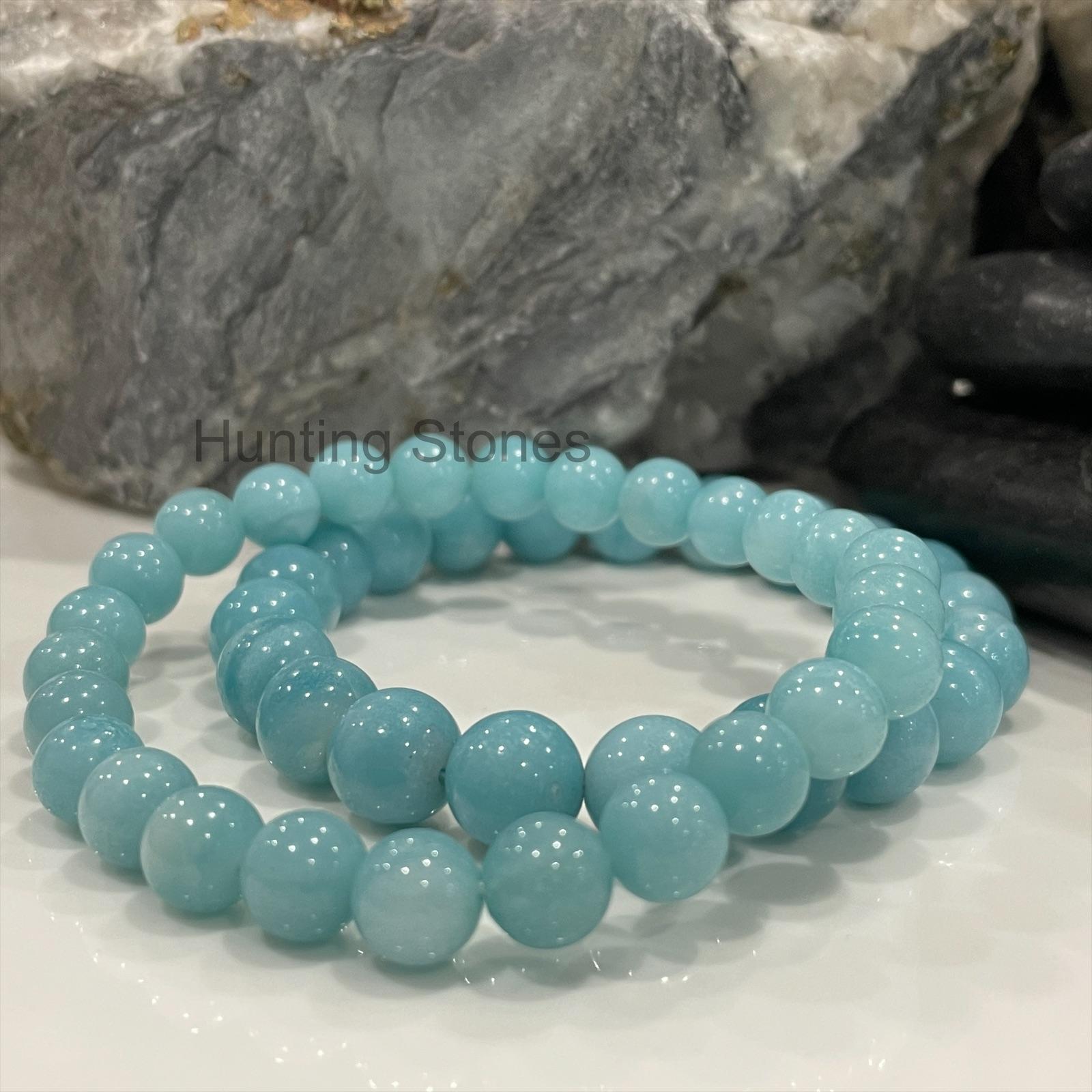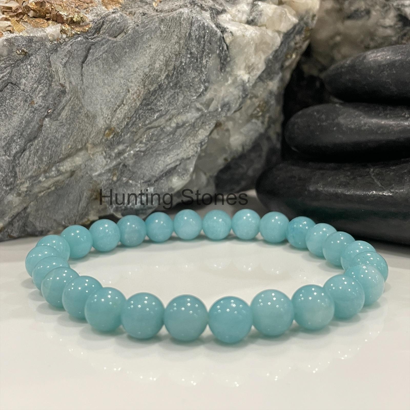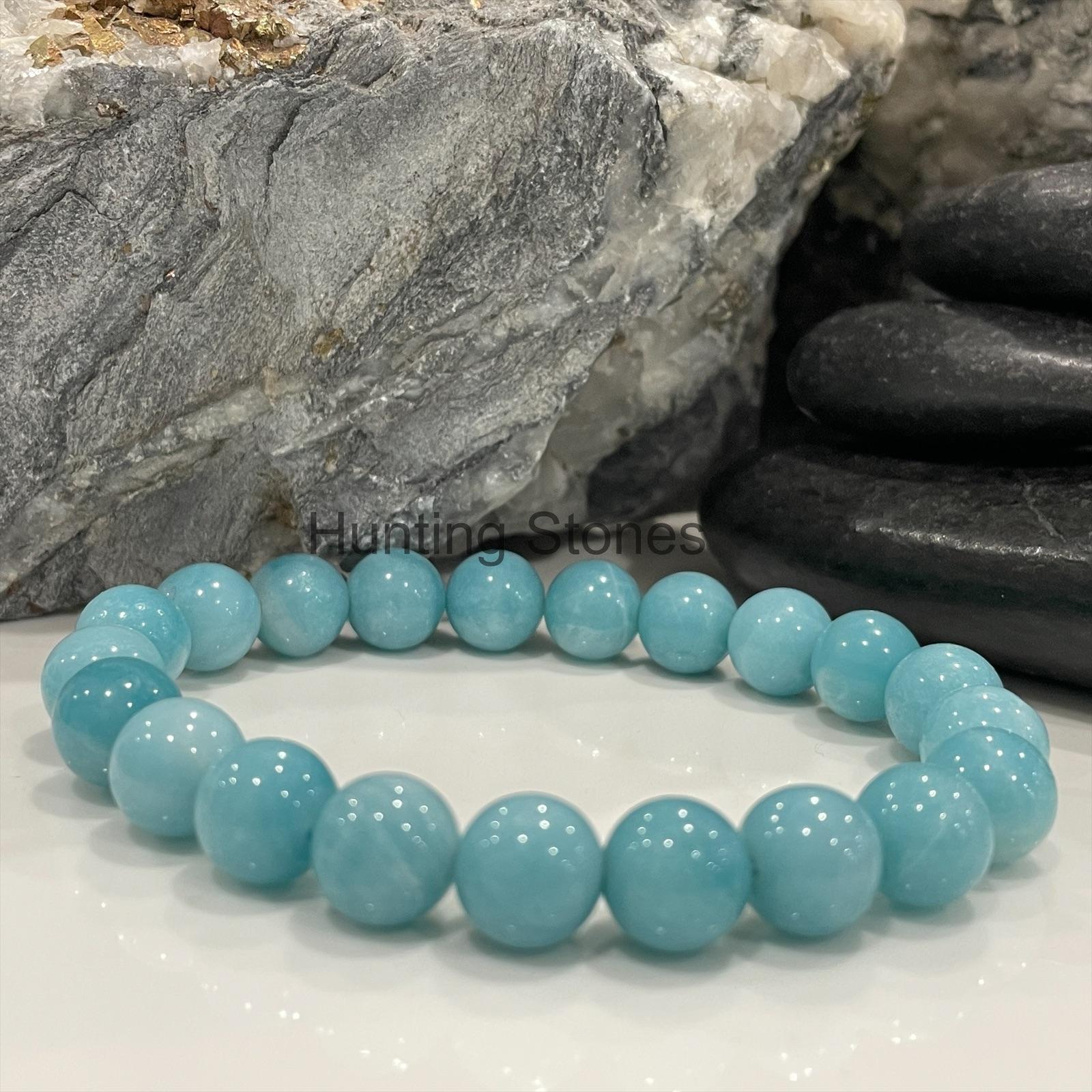 Hunting Stones Natural Blue Amazonite Unisex Crystal Bracelet – 2 Sizes stretch