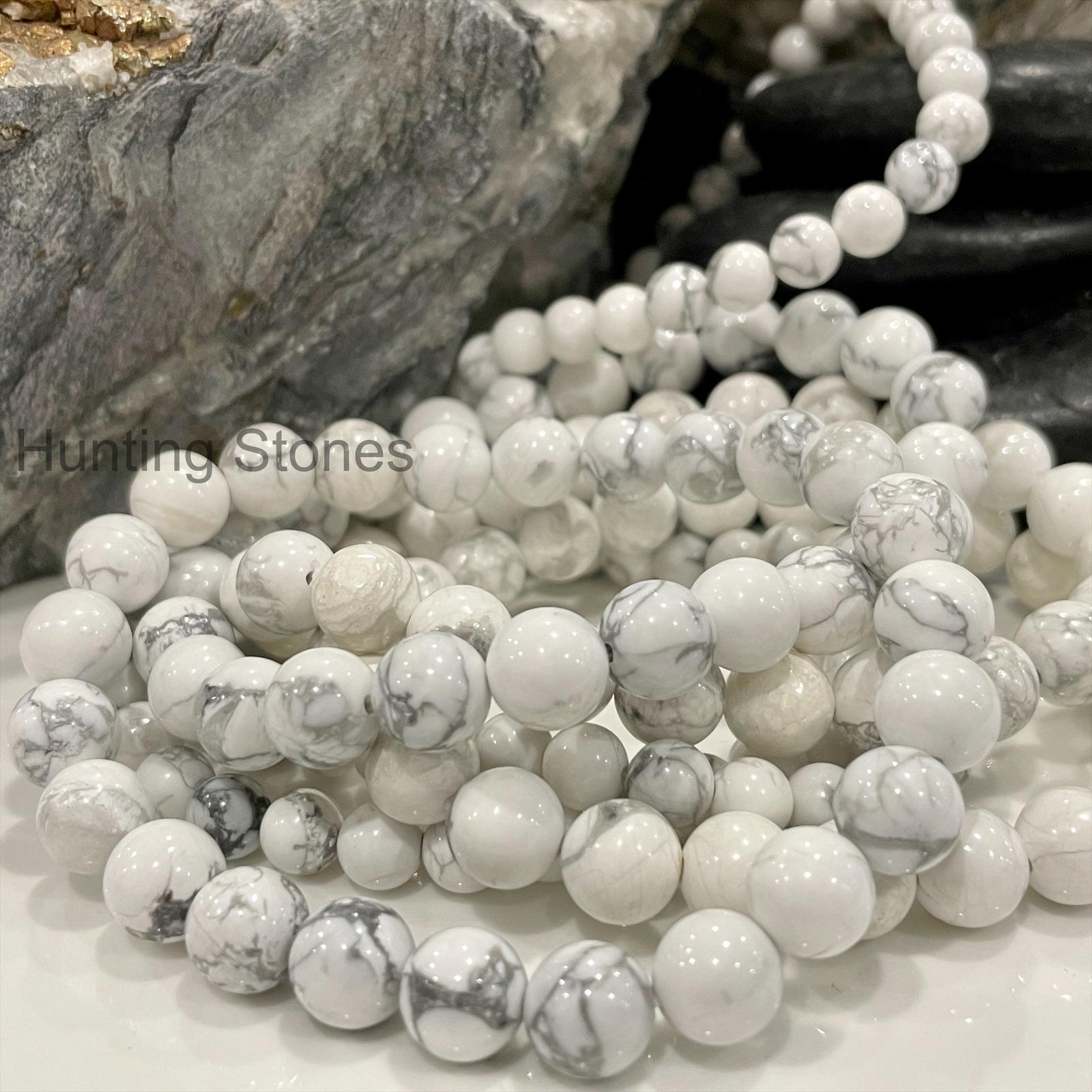Hunting Stones Natural Howlite Unisex Gemstone Bracelet – 2 sizes stretch – Calm Peace Focus