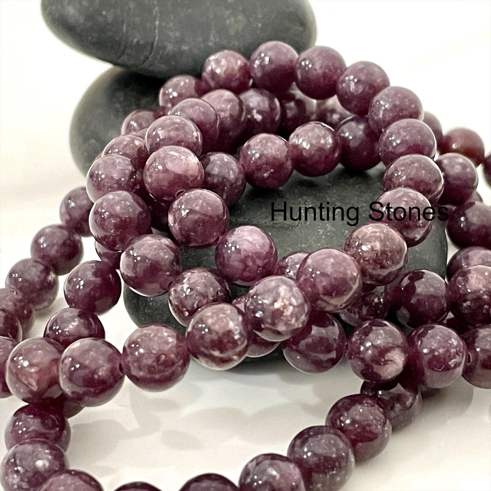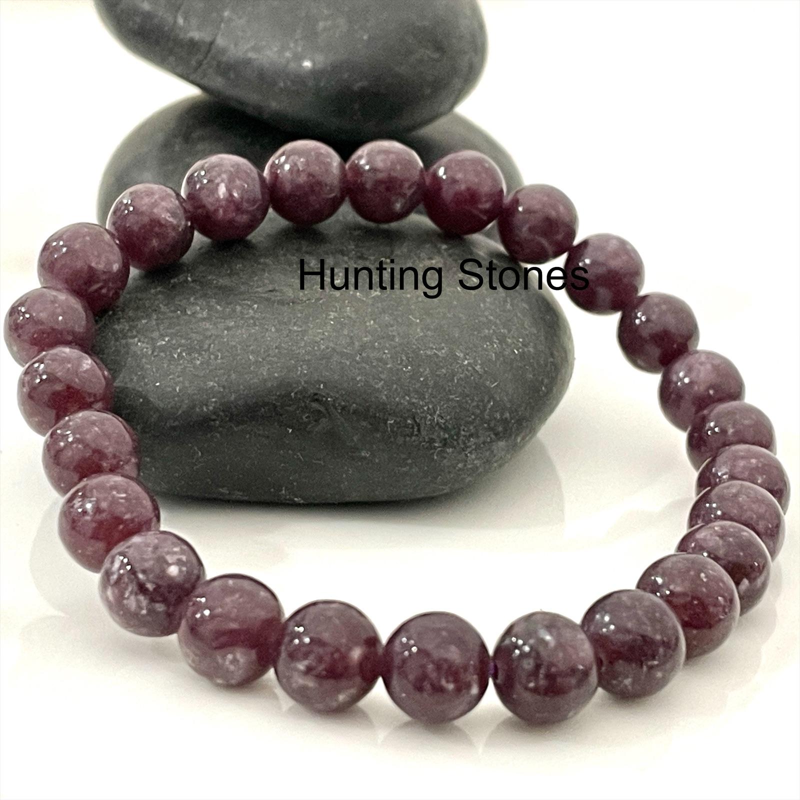 Hunting Stones Natural Lepidolite Unisex Gemstone Crystal Bracelet – 2 sizes stretch – Calming Peace Uplifting