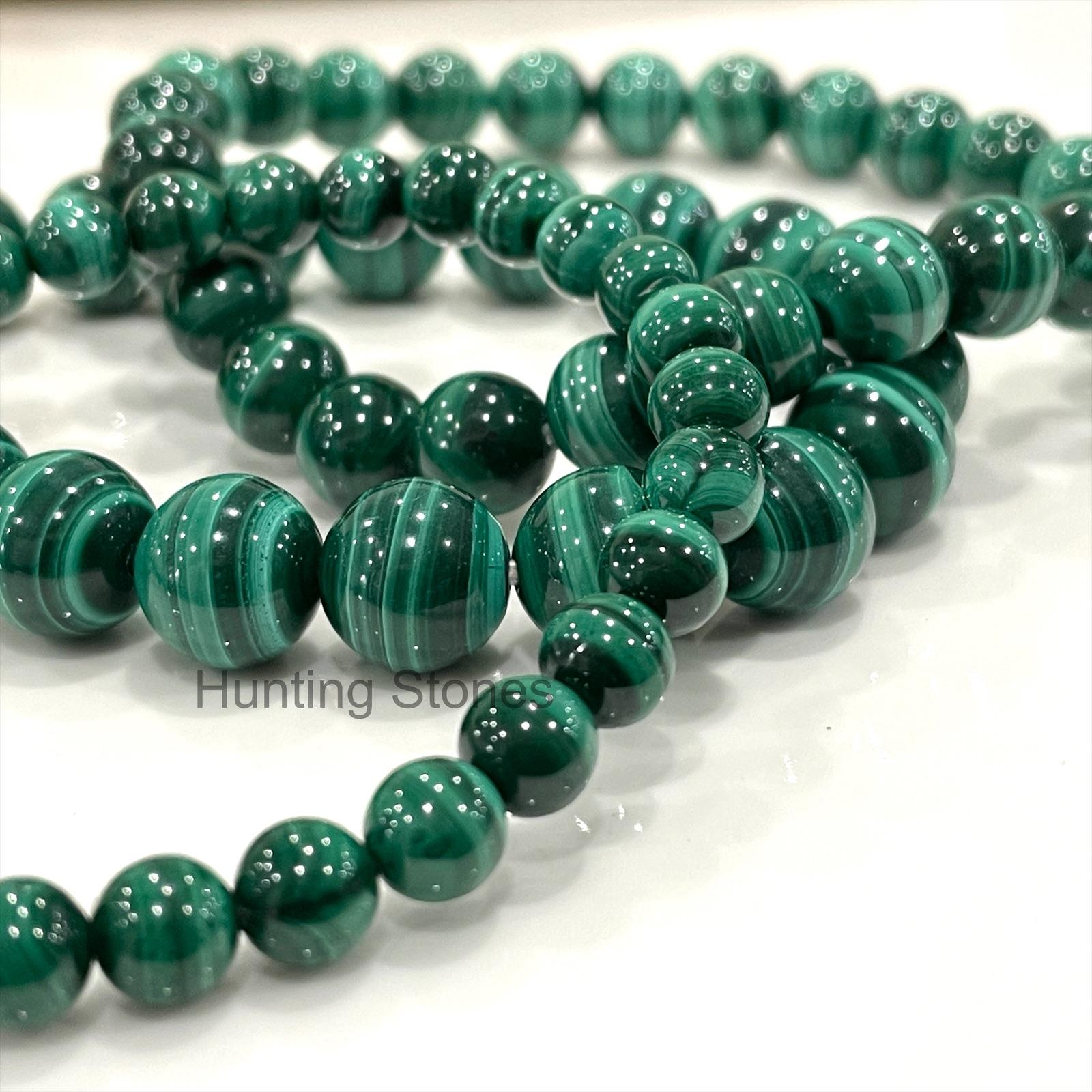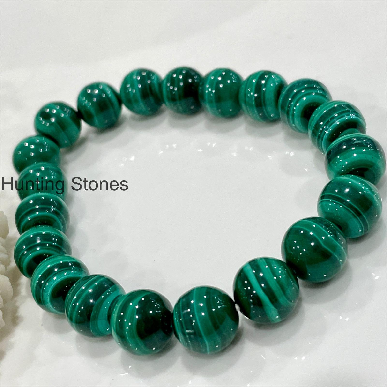 Hunting Stones Natural Malachite Unisex Gemstone Bracelet – 2 sizes stretch – Protection Self Confidence