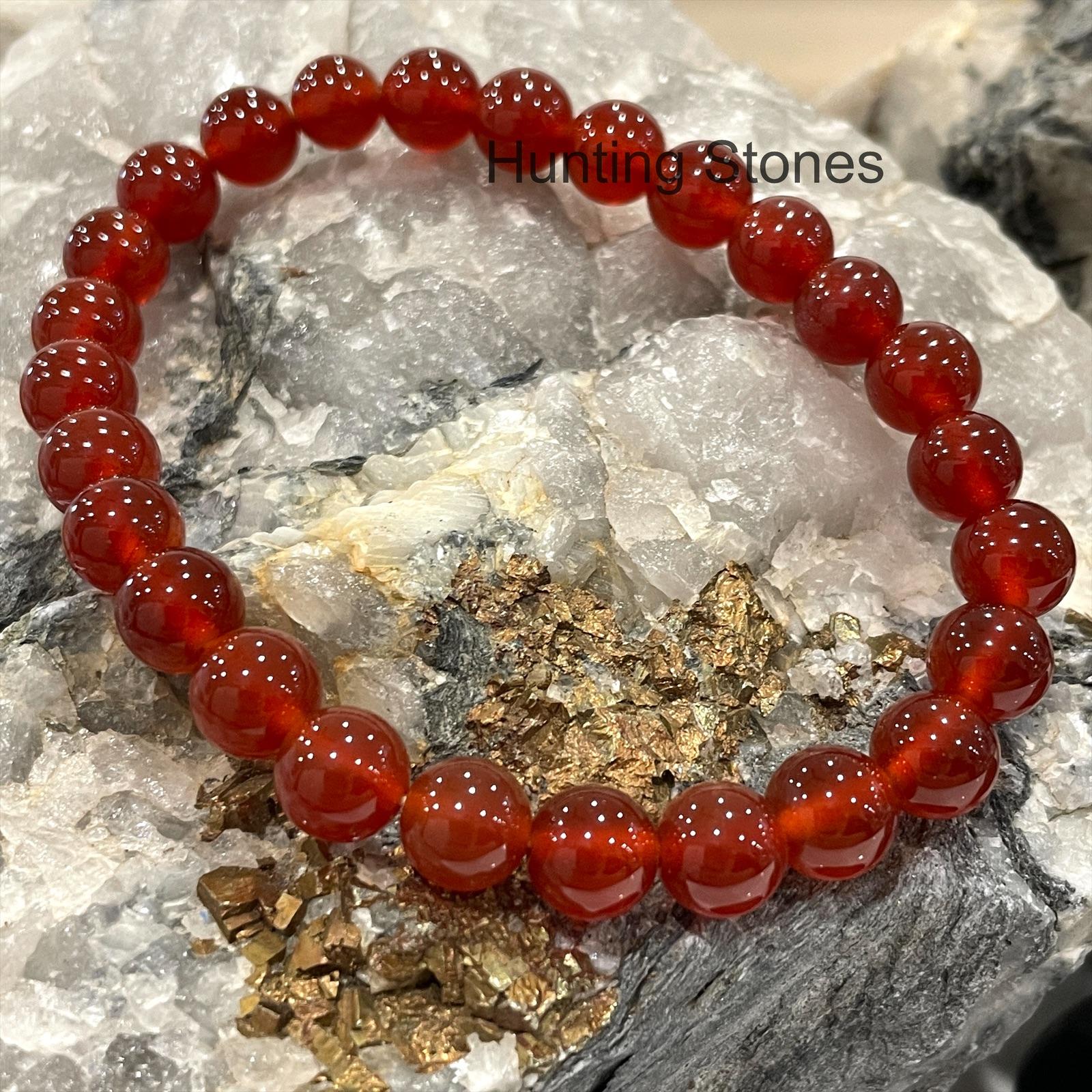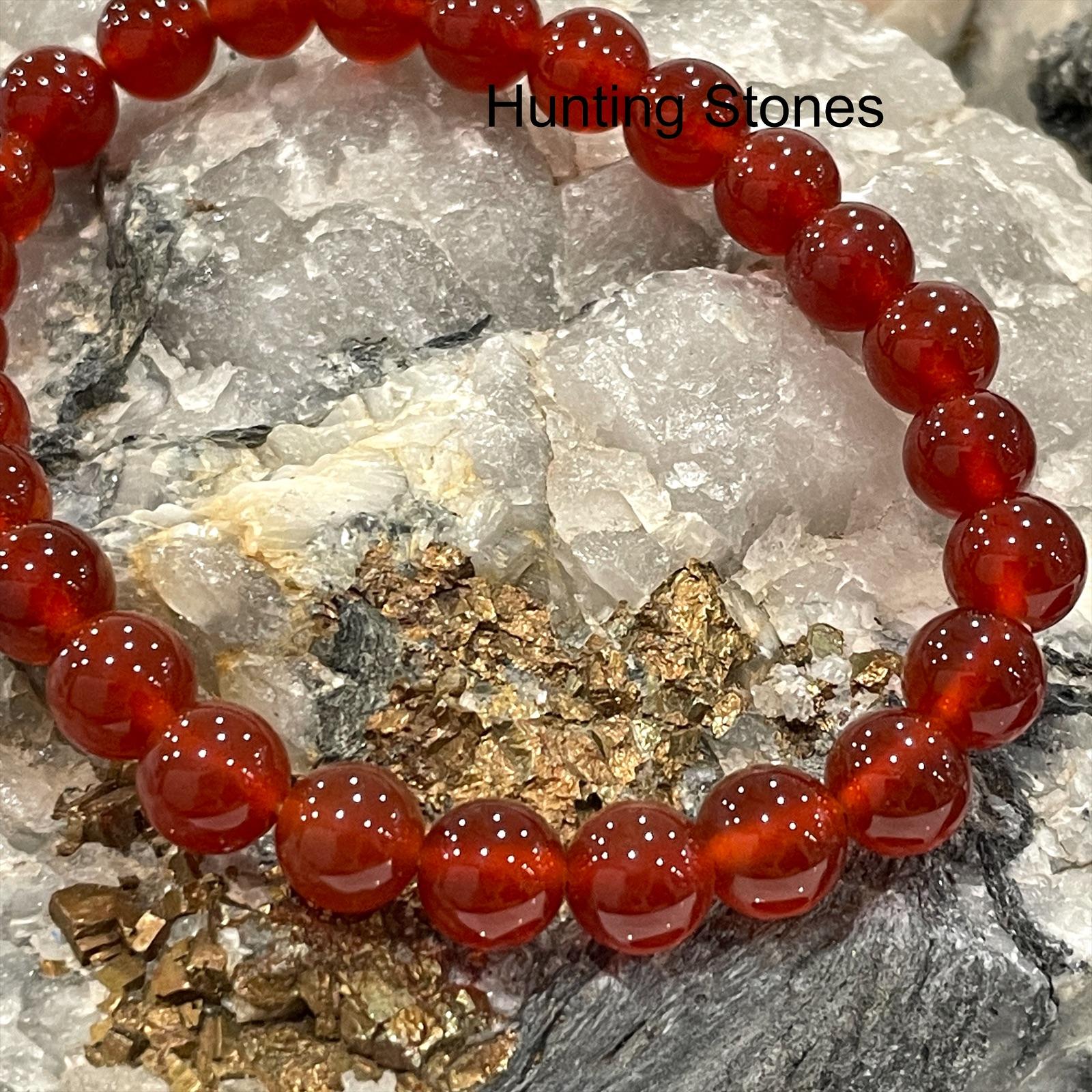 Hunting Stones Natural Red Agate Crystal Bracelet – 2 Sizes stretch -Unisex