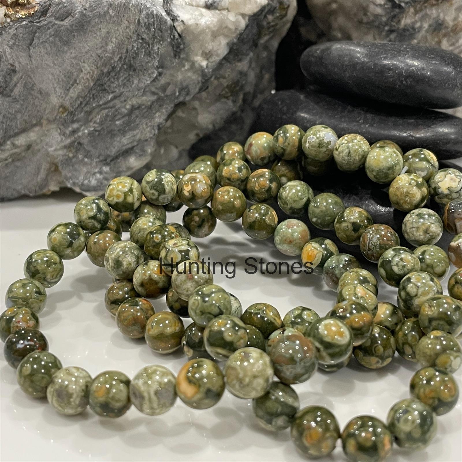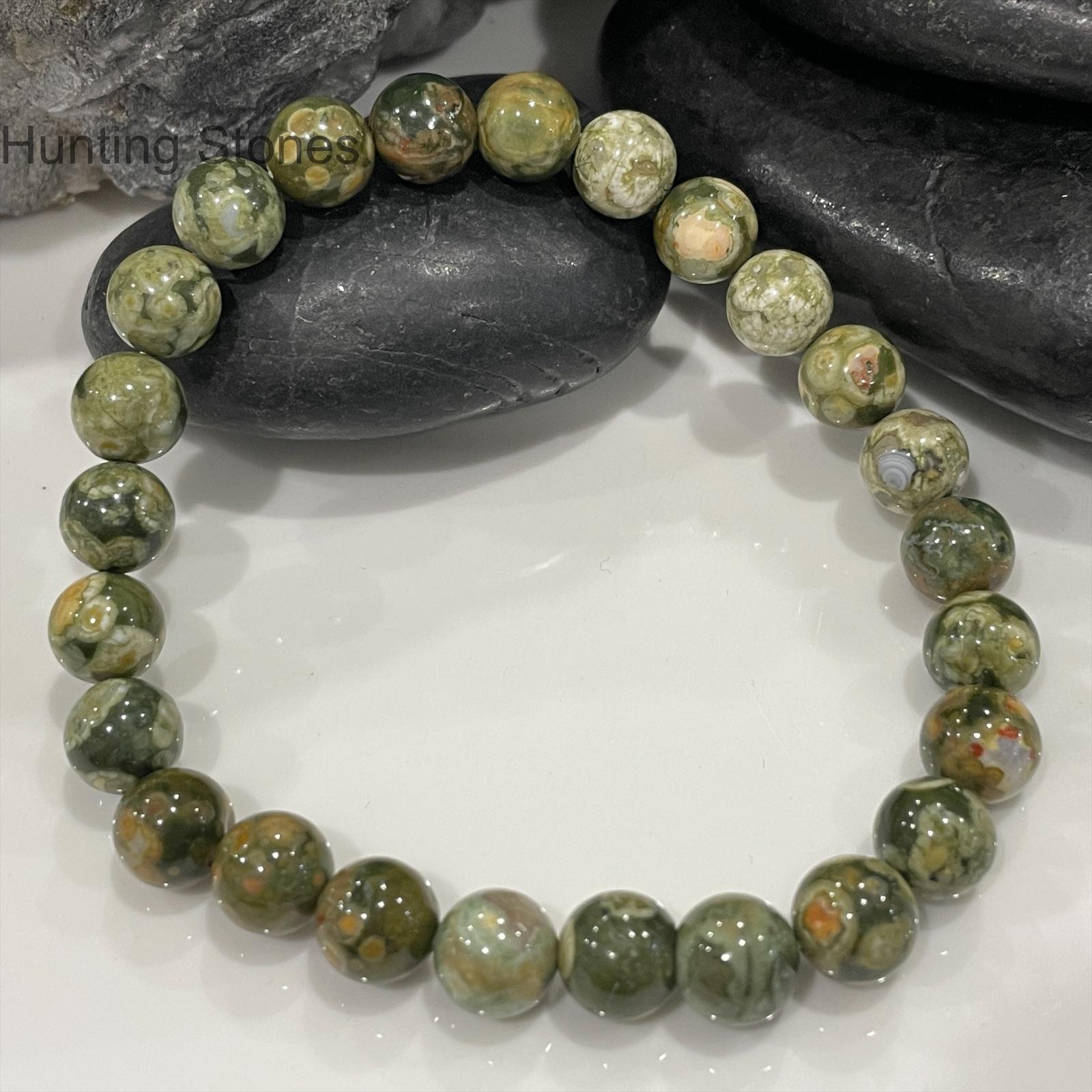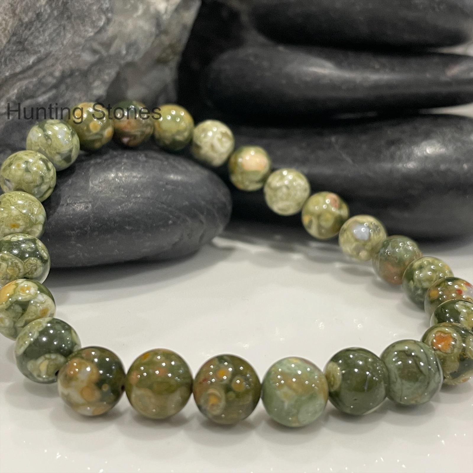 Hunting Stones Natural Rhyolite – Australian Rainforest Jasper Unisex Gemstone Bracelet – 2 Sizes stretch