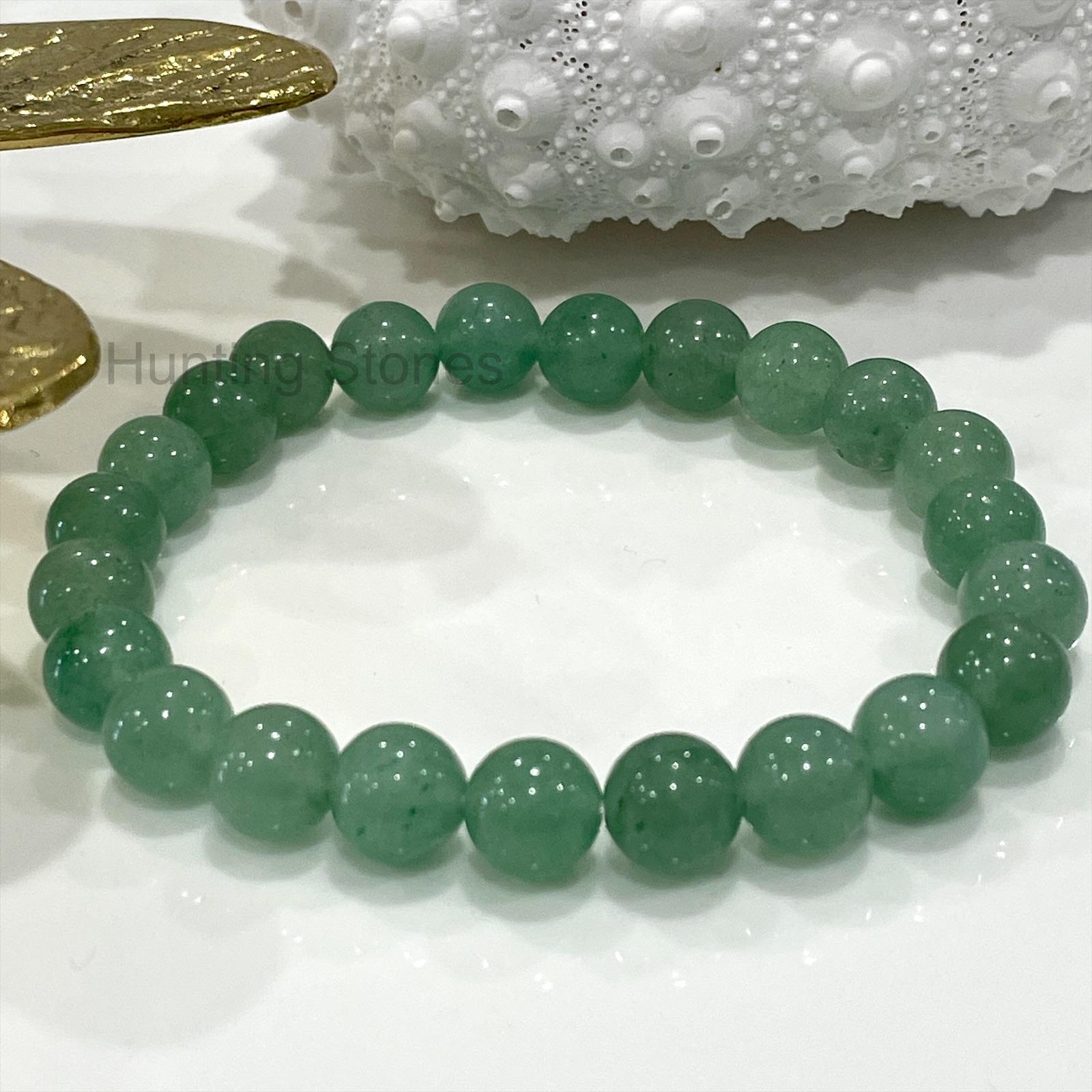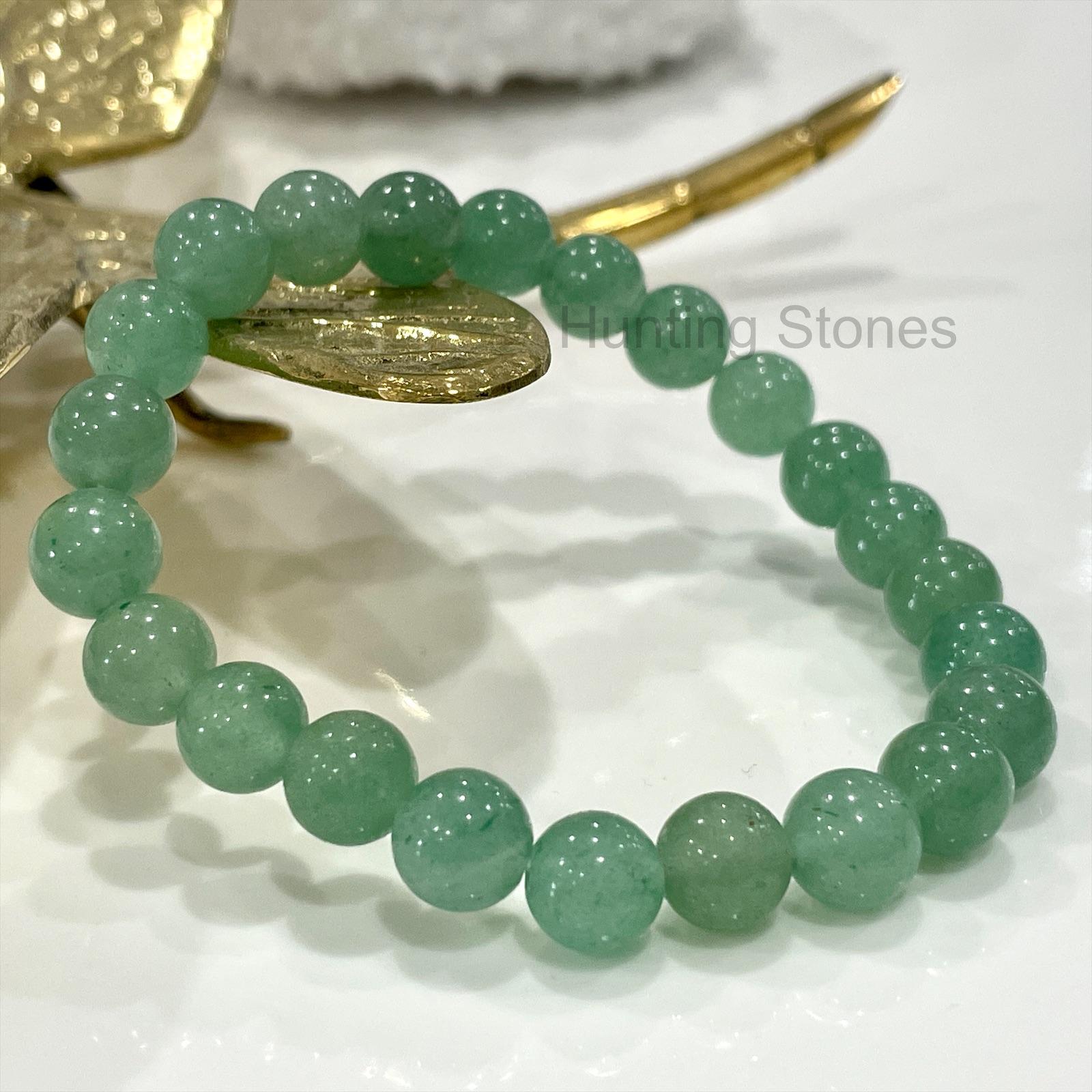Hunting Stones Unisex Green Aventurine Crystal Bracelet – 18cm stretch – De Stress Peace Optimistic