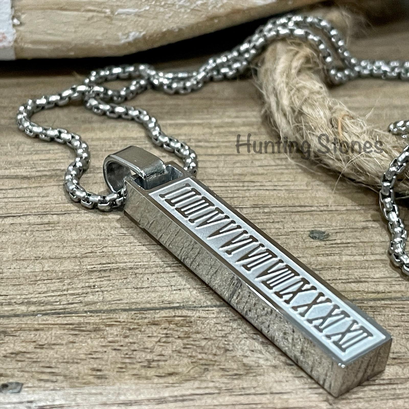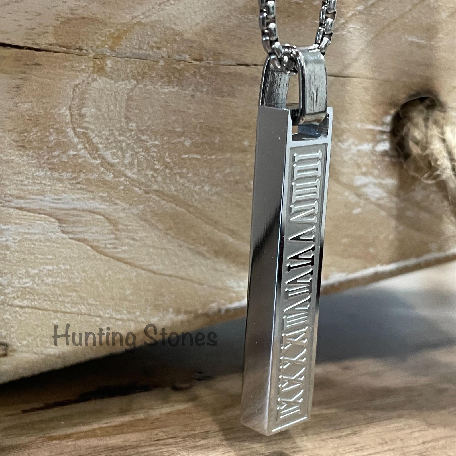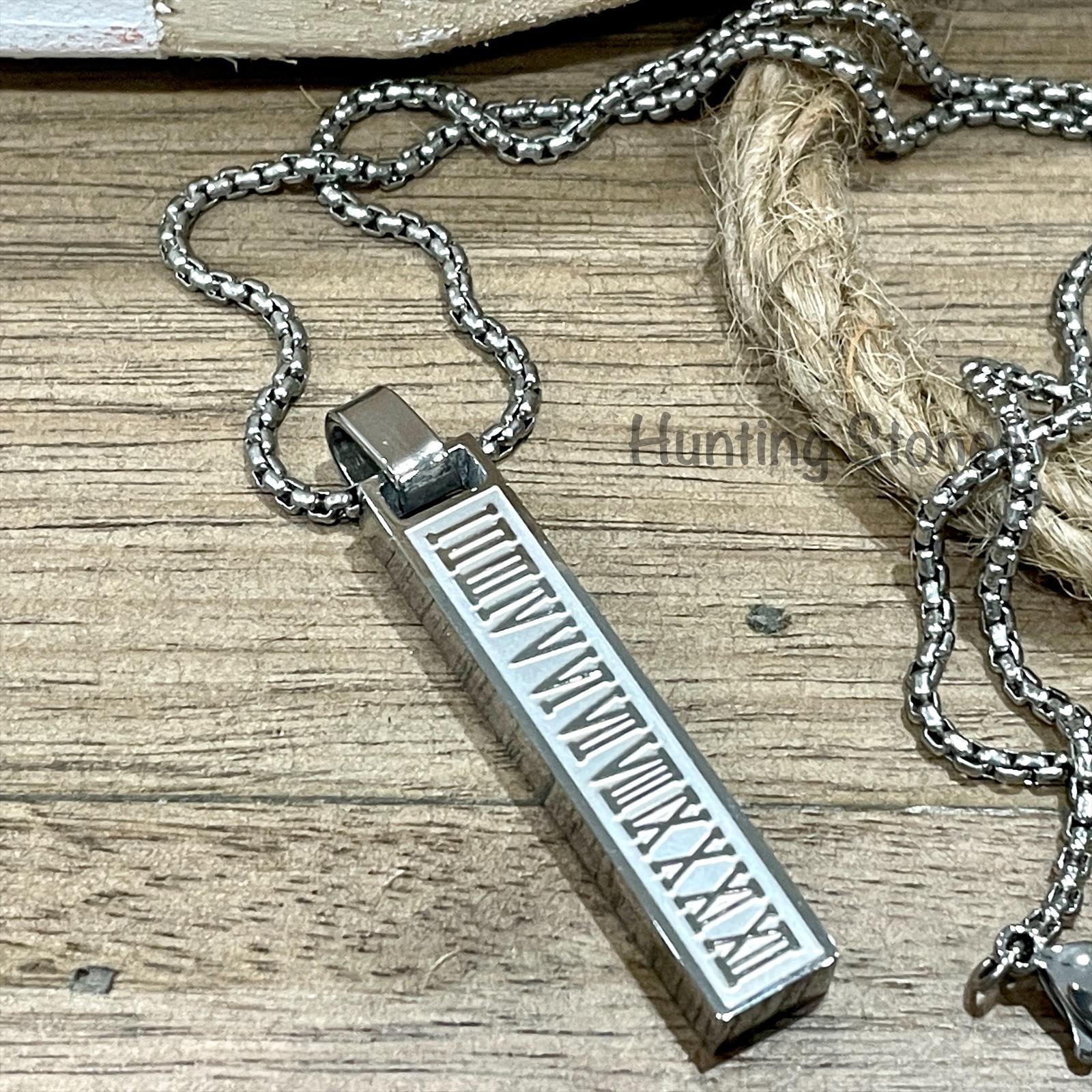 Men’s Quality Stainless Steel Roman Numeral Bar Necklace