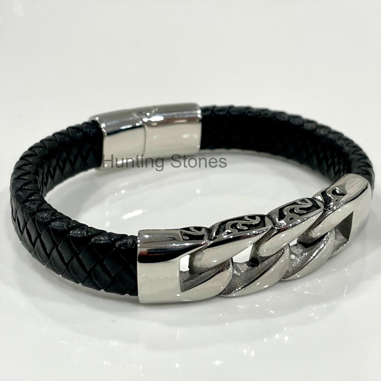 • Band Material: 11mm wide x 5.5mm thick Braided black Genuine Leather band