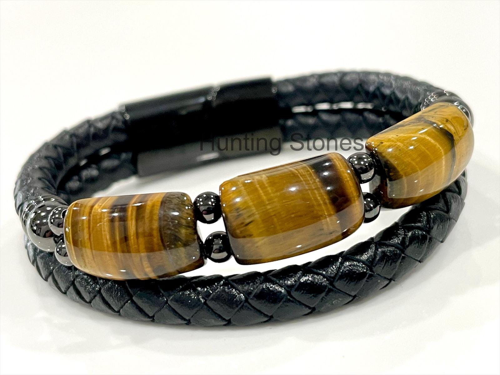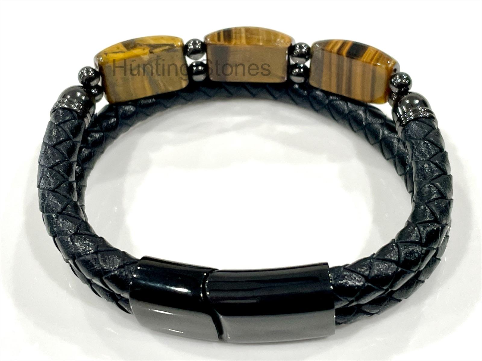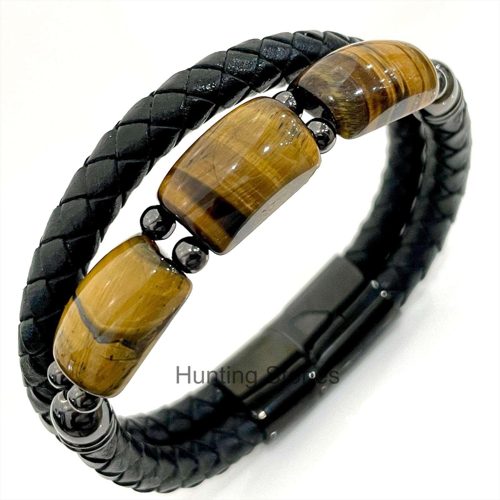 Men’s Tiger Eye and Braided Genuine Leather Bracelet – Unisex