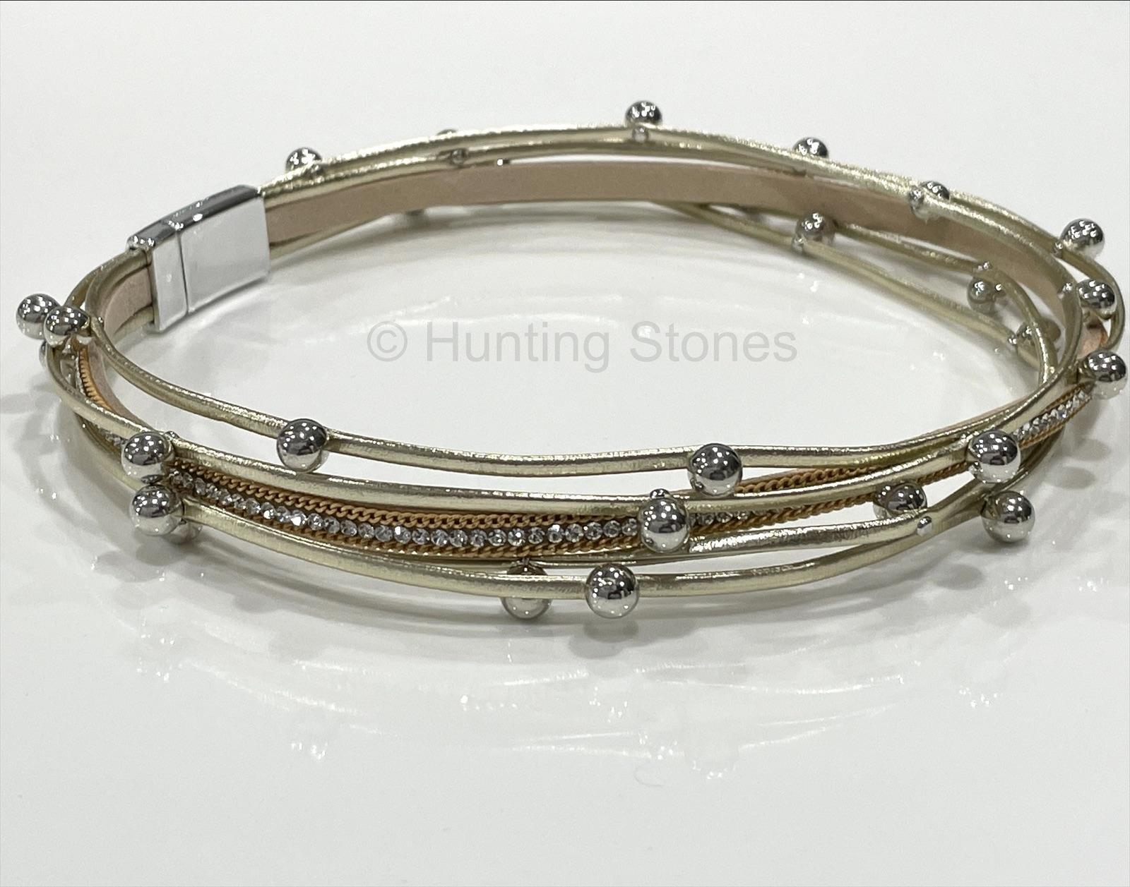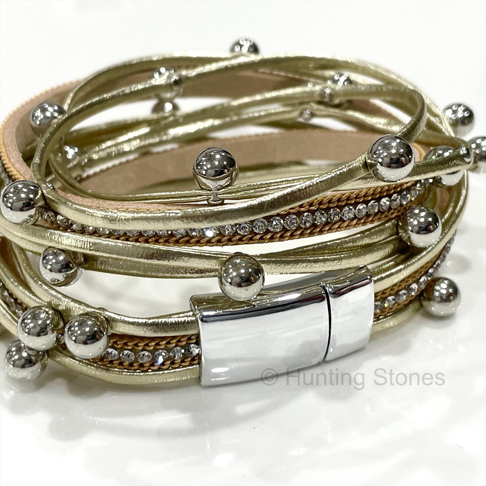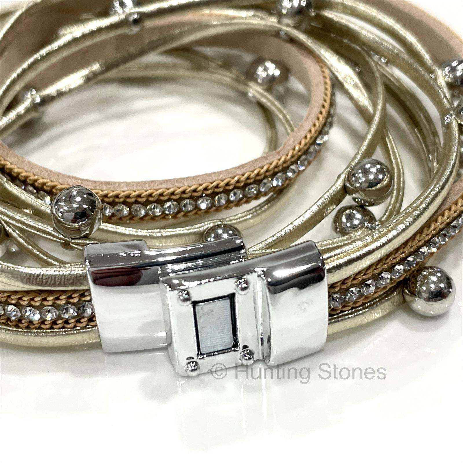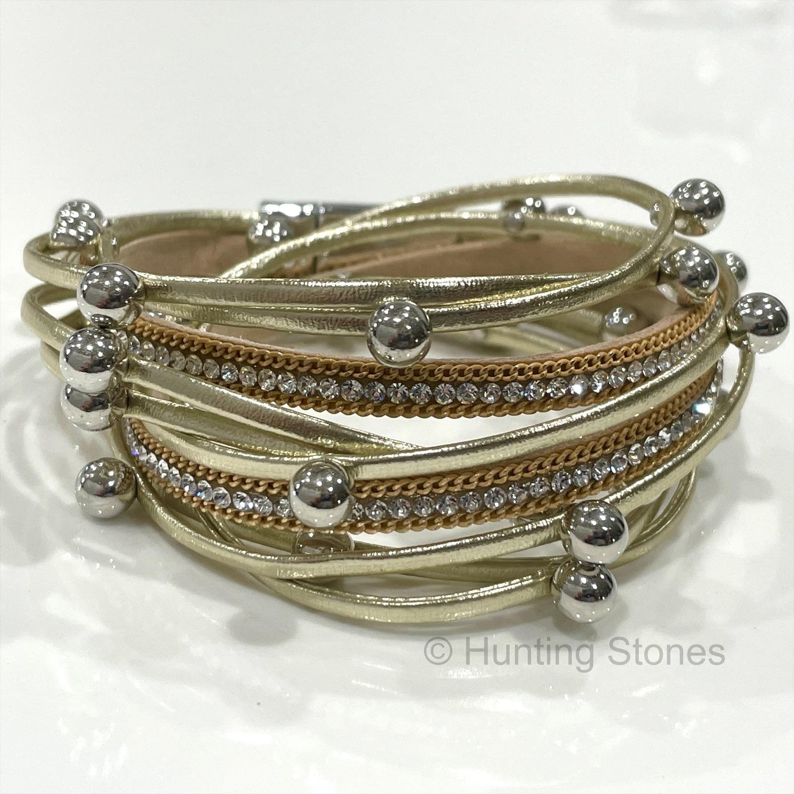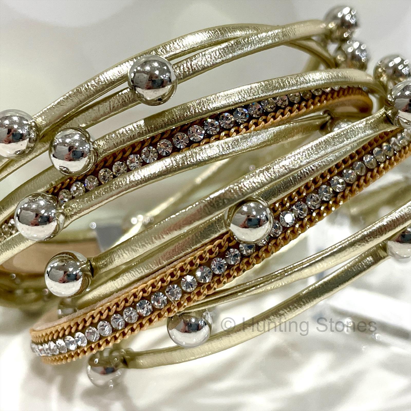 Multi layer pu Leather Wrap bracelet with Natural Rhinestone Crystals – Gold