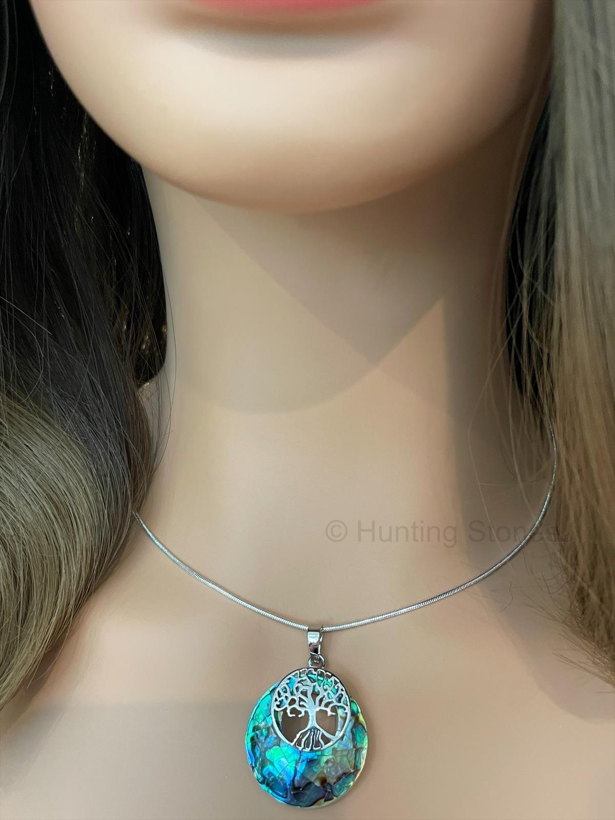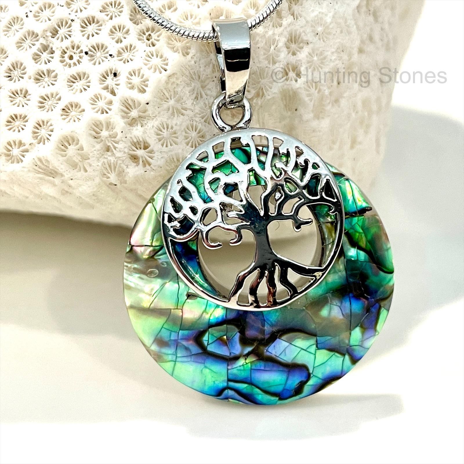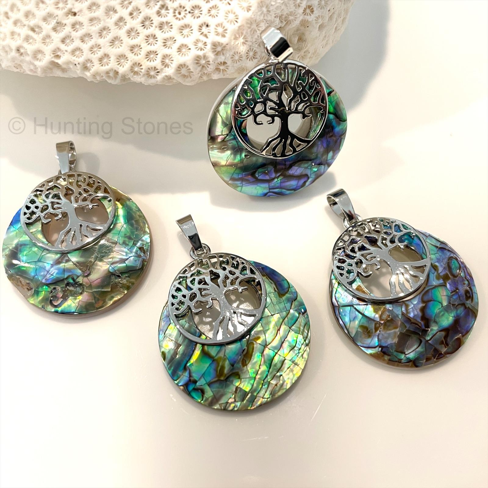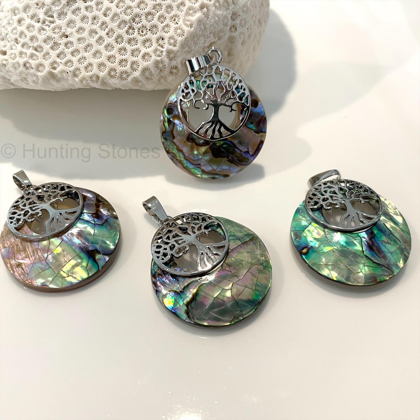 Shell natural abalone tree of life necklace 27mm