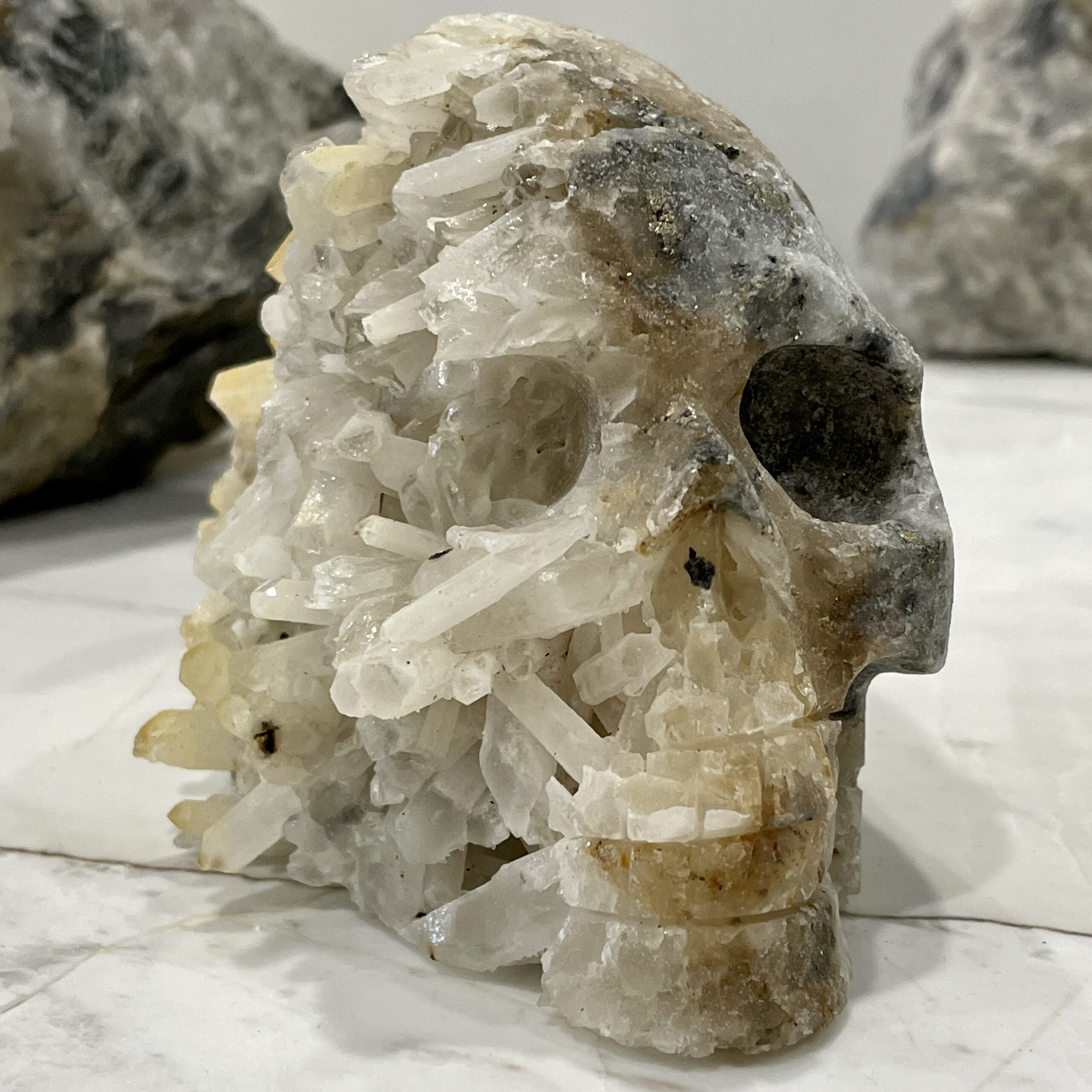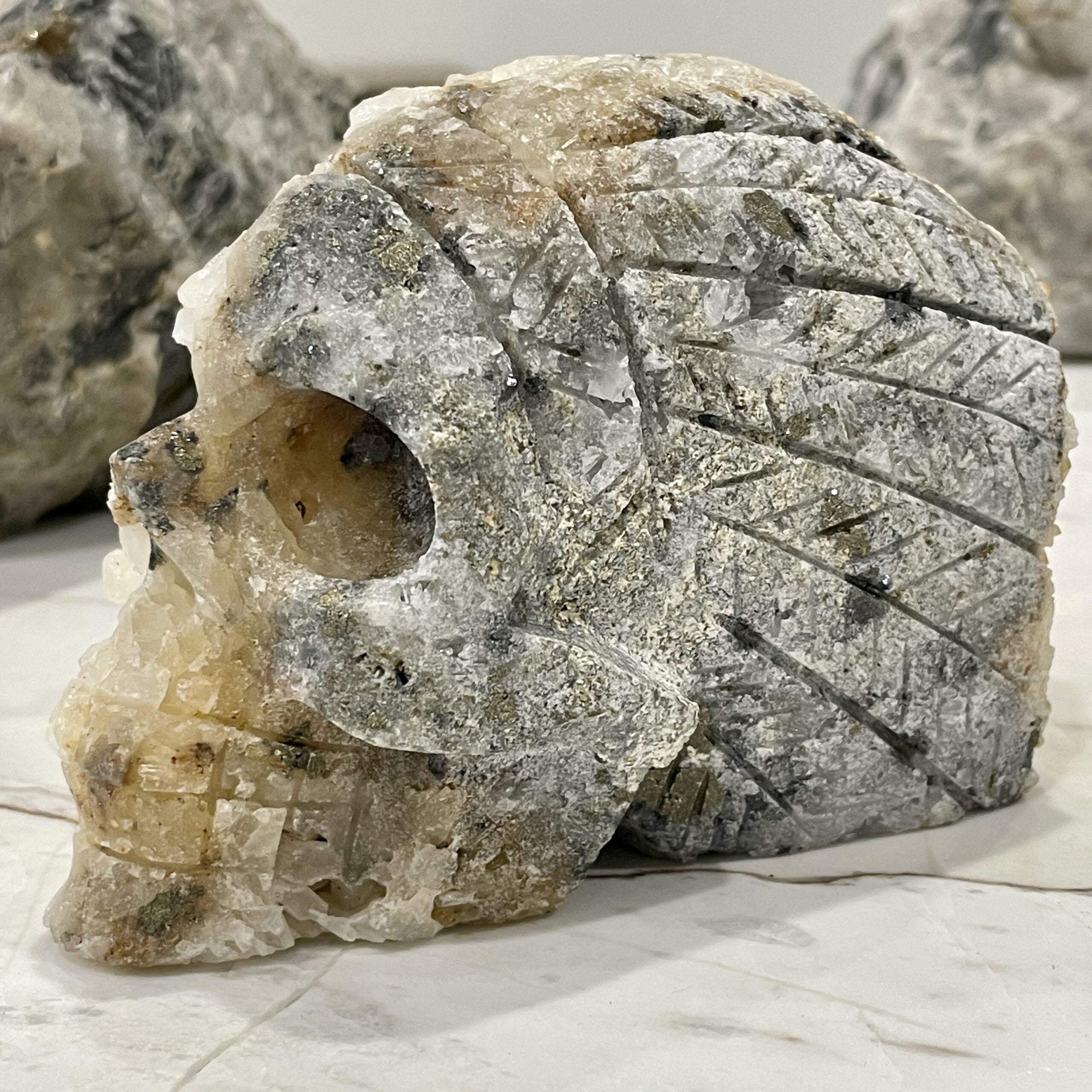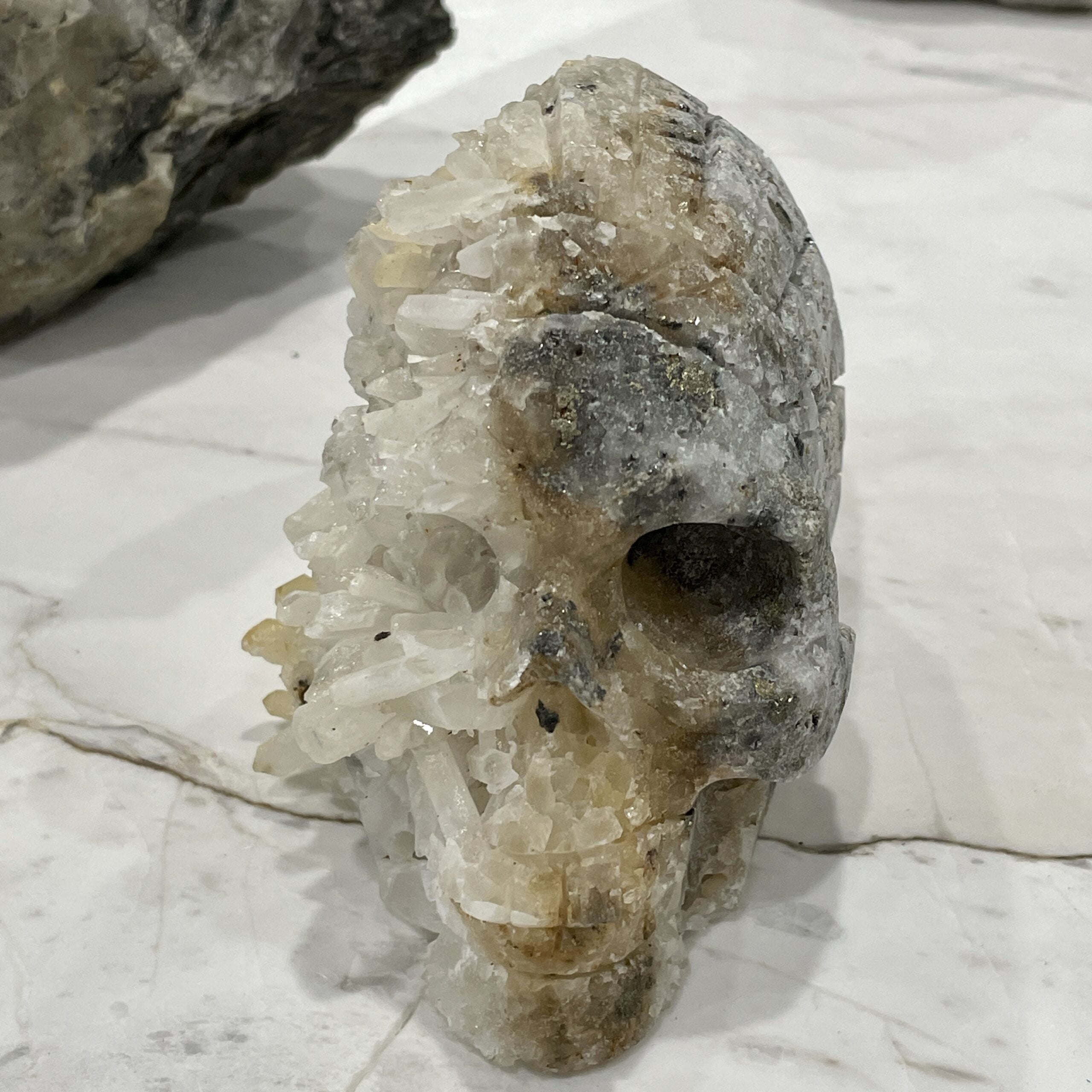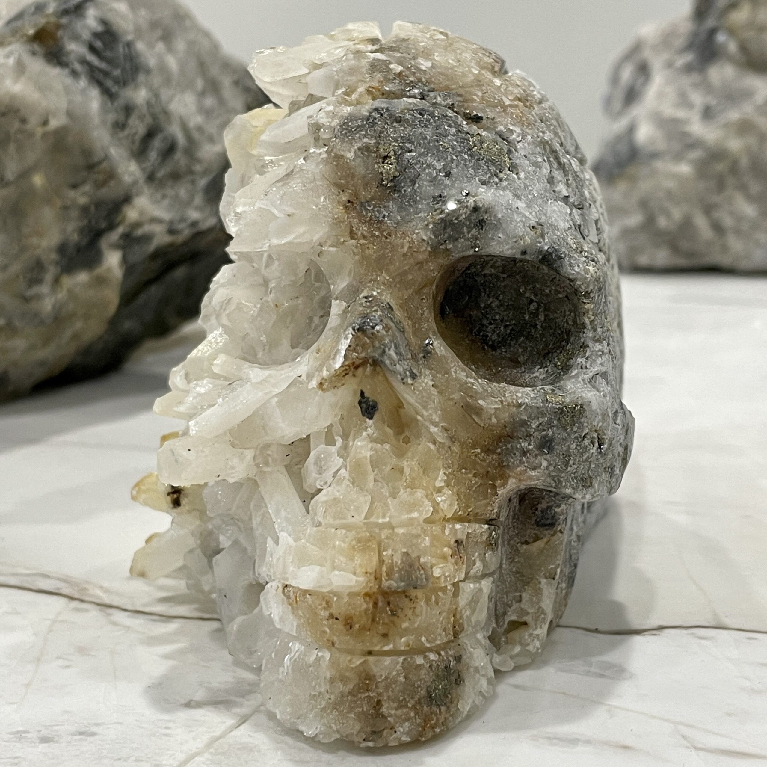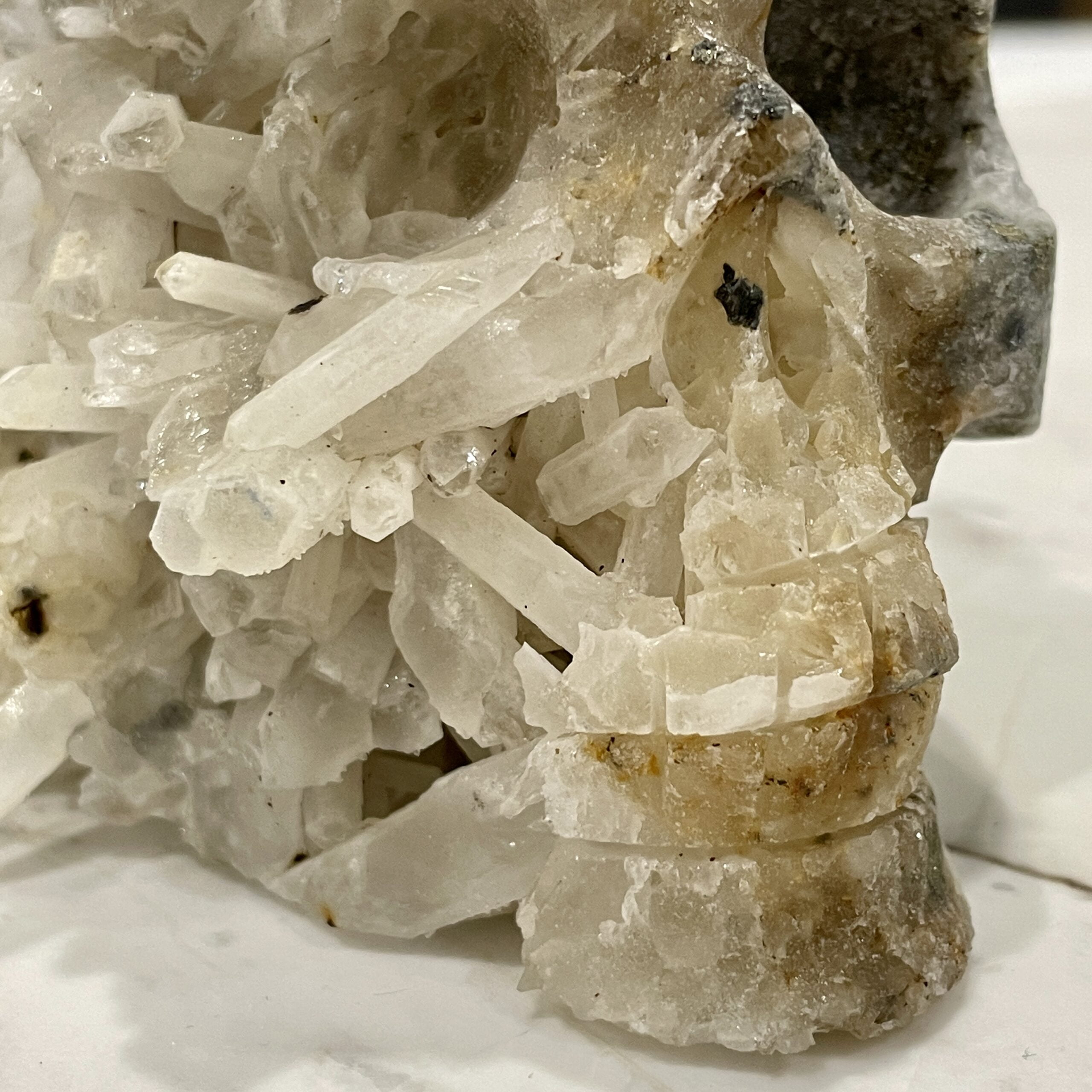 Natural Crystal Cluster Hand Carved Skull – 02 Indian Feathered Headdress