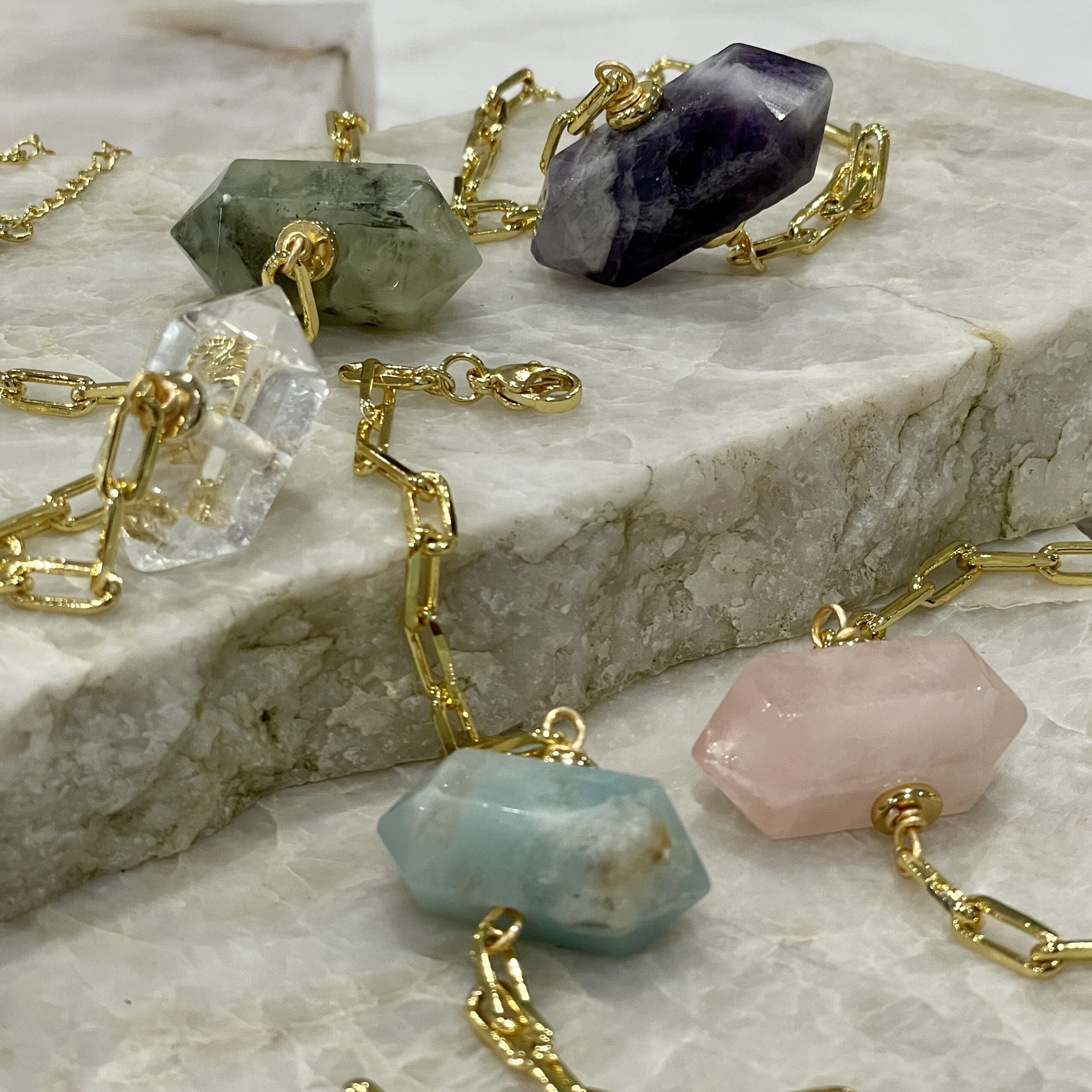 Natural Gemstone Crystal Point Bracelets – 30 to 34mm Crystals