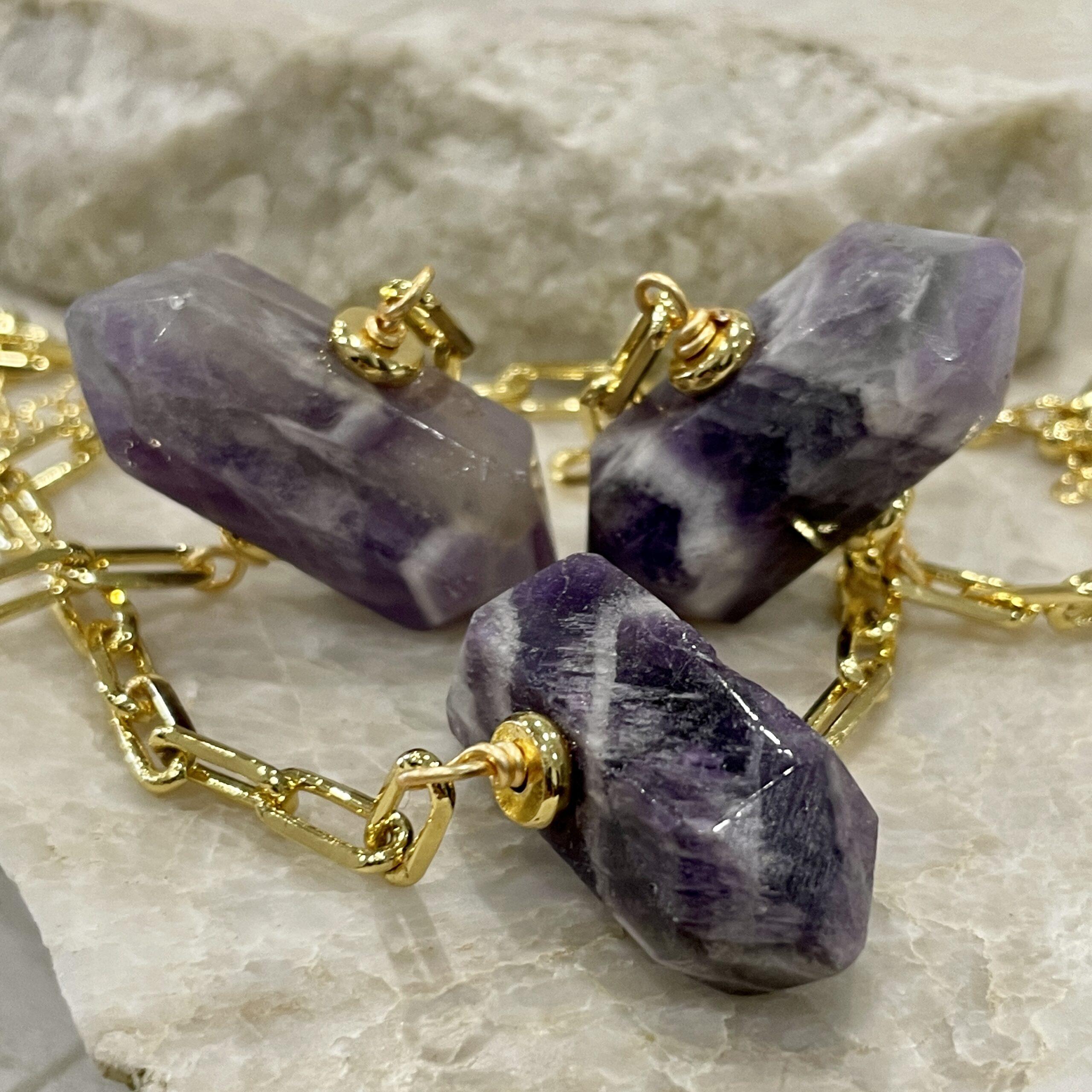 - Amethyst: Semi polished with an average length of 33mm and a thickness of 13mm