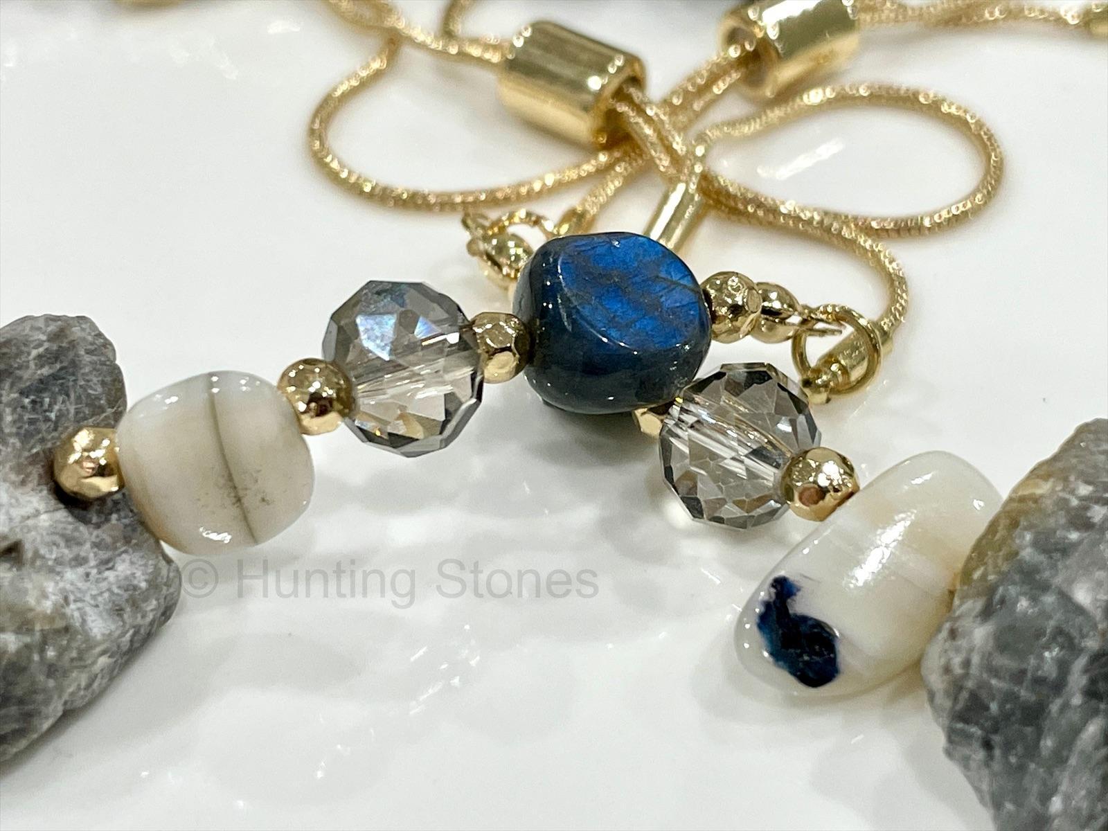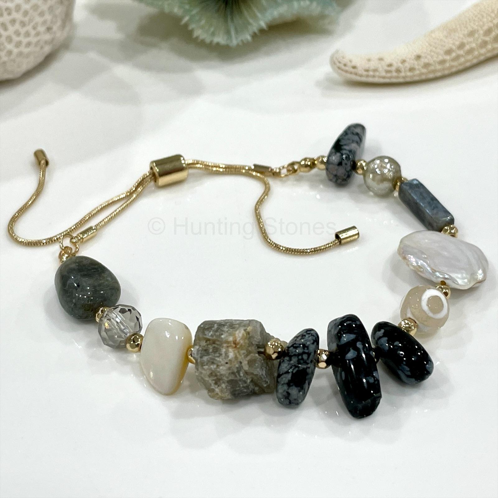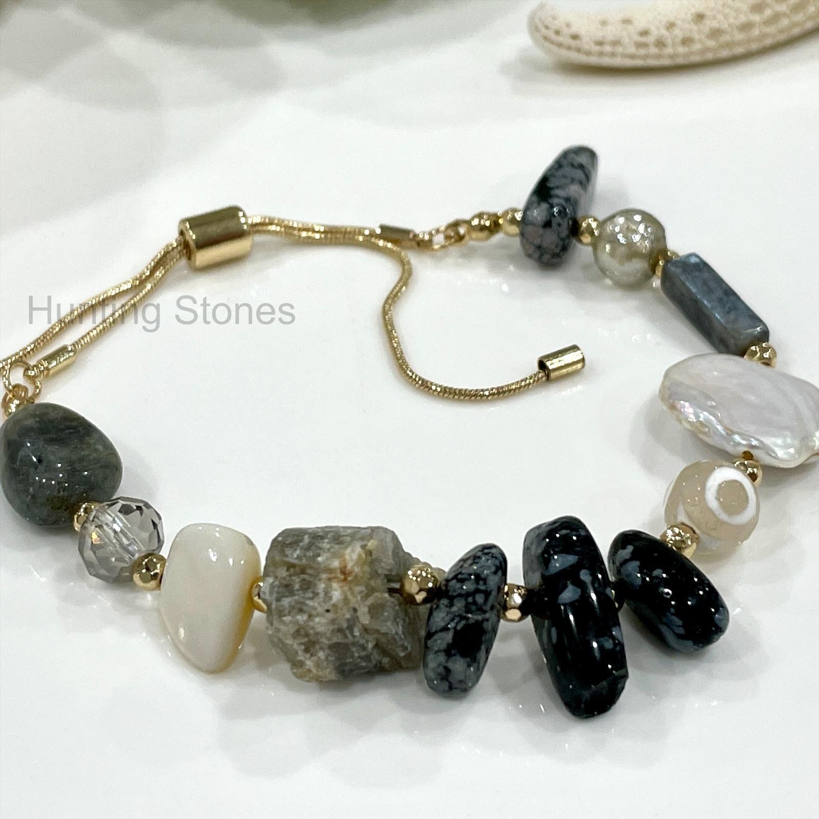 Natural Labradorite and Obsidian Gemstone Bracelet