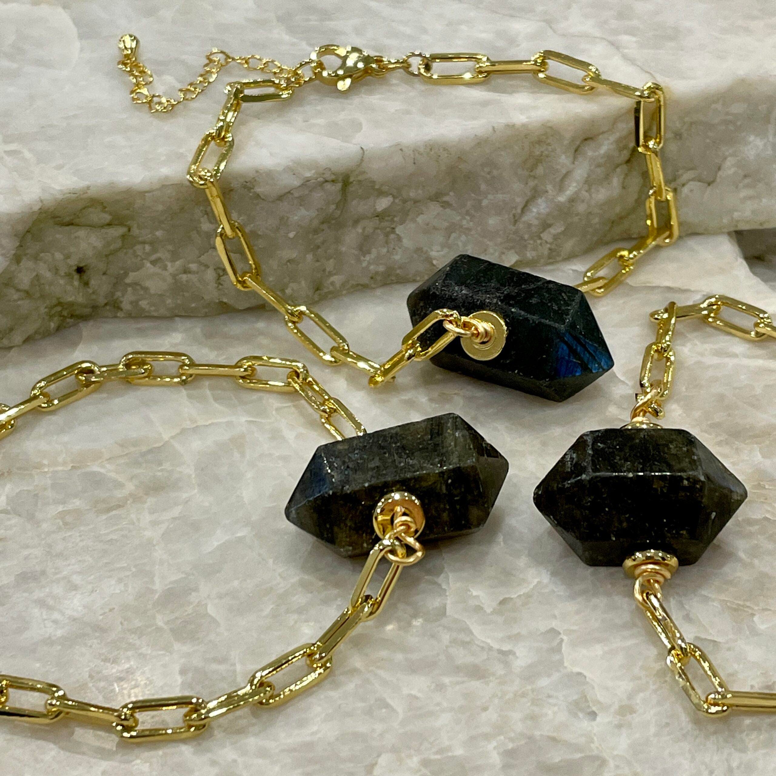 Natural Labradorite Crystal Point Bracelets – 23 to 27mm Crystals
