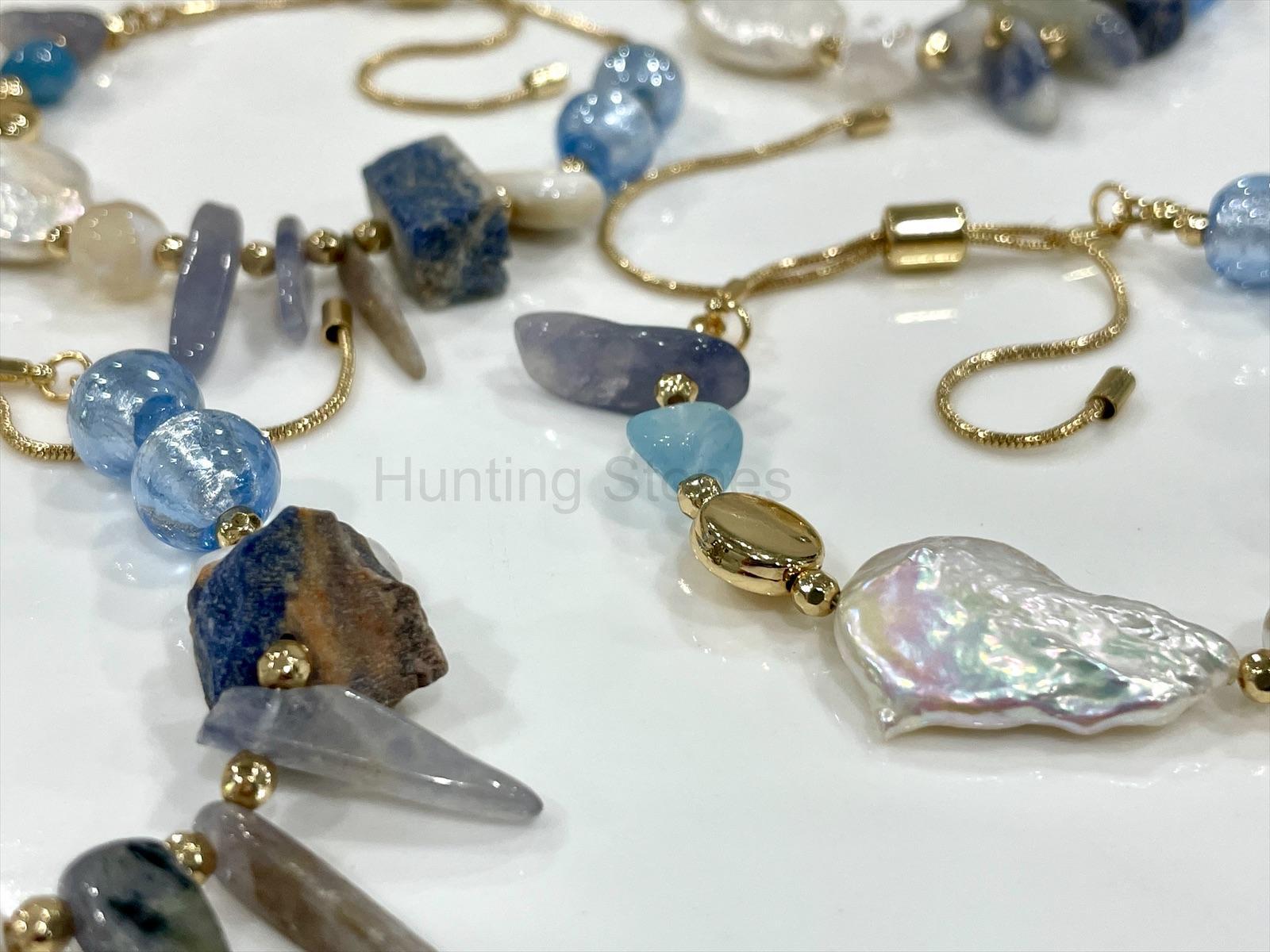 • For an idea of the natural stone sizes, the round bead with white circles on it is 8mm and the round blue glass beads are 10mm