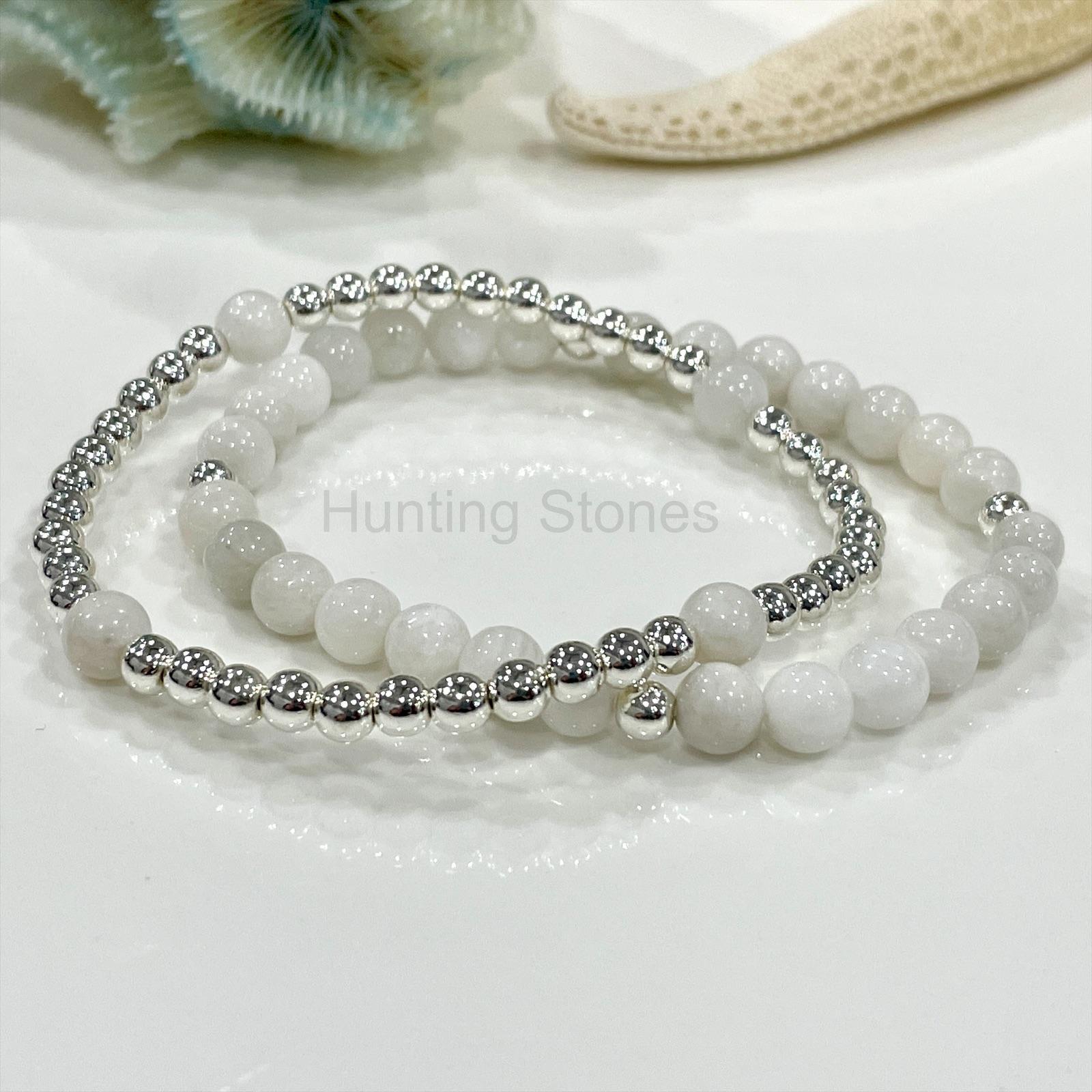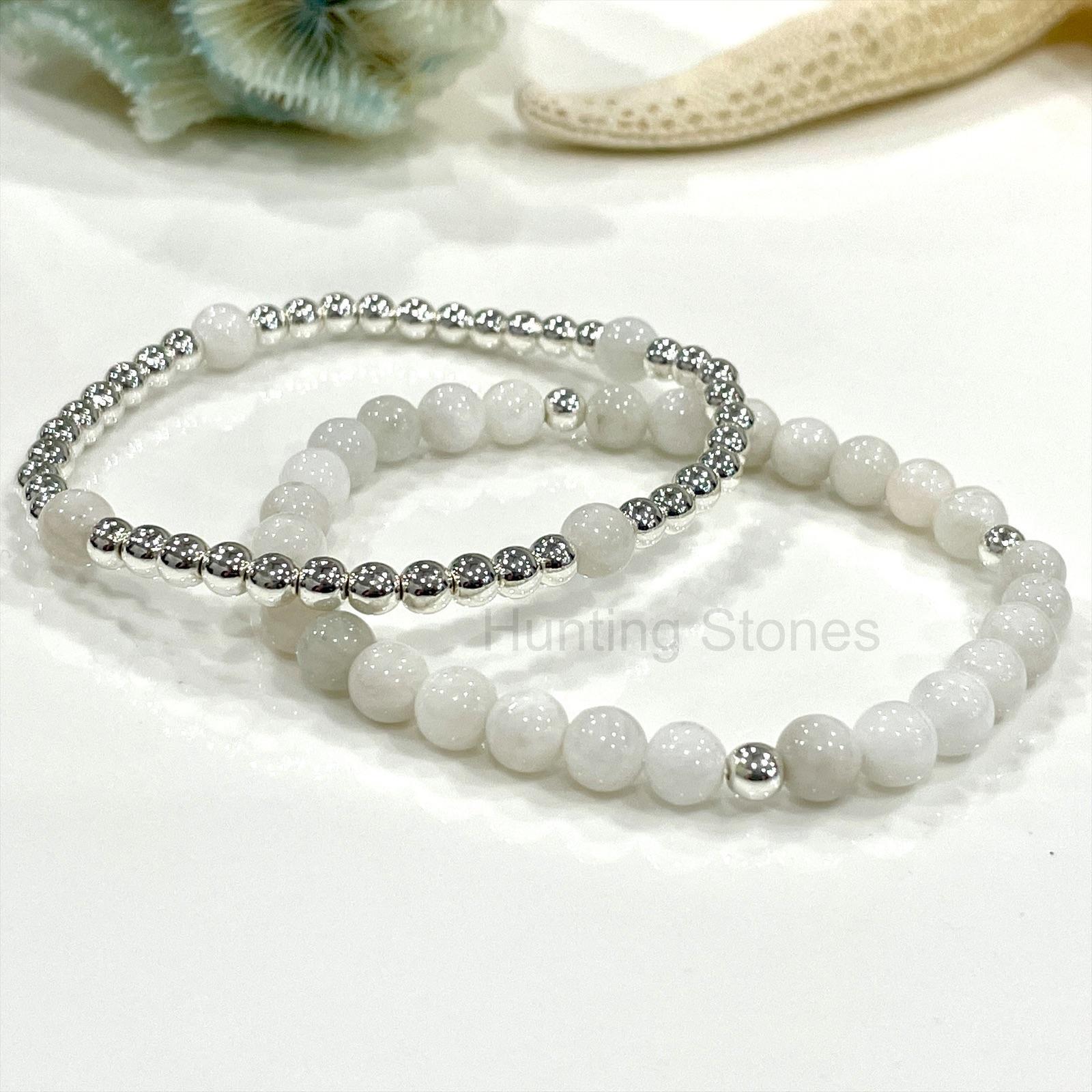Natural Moonstone and Silver Bracelet Set – 17cm stretch  Peace Harmony Intuition