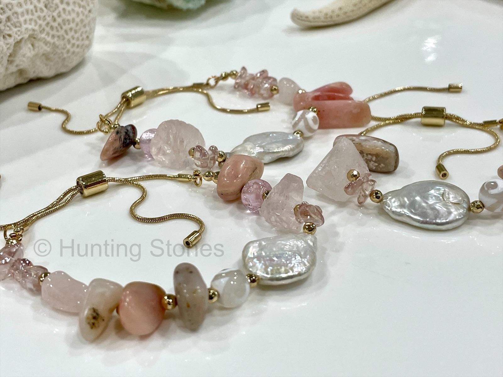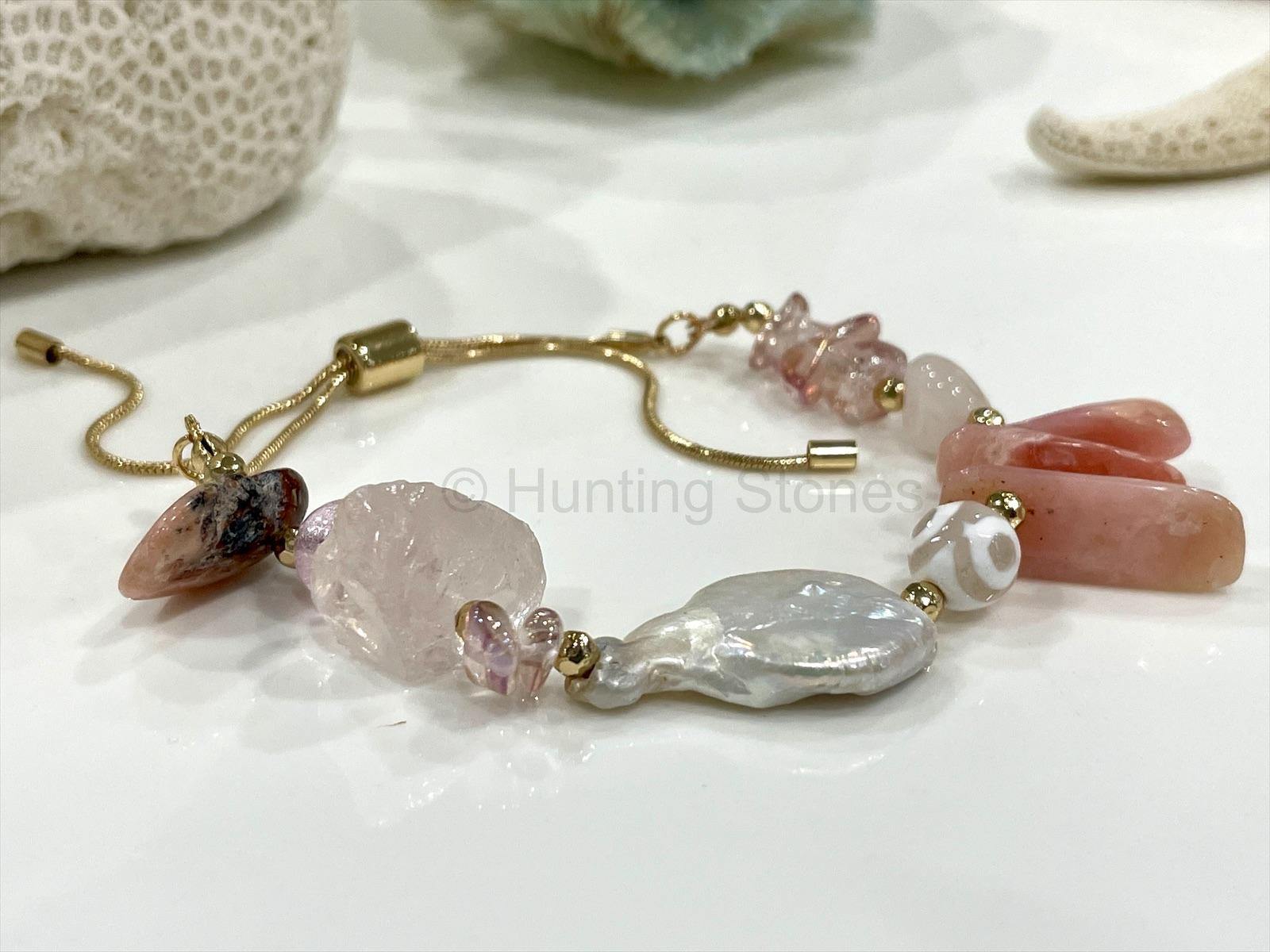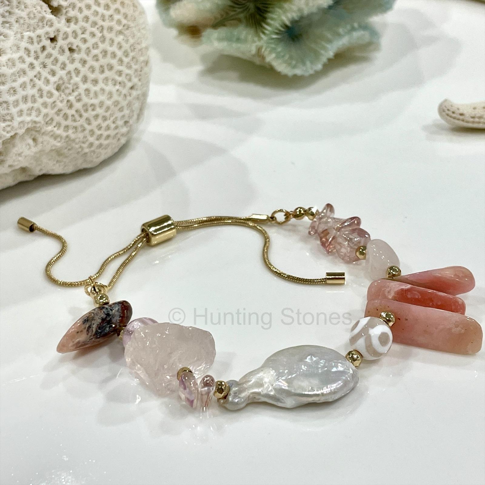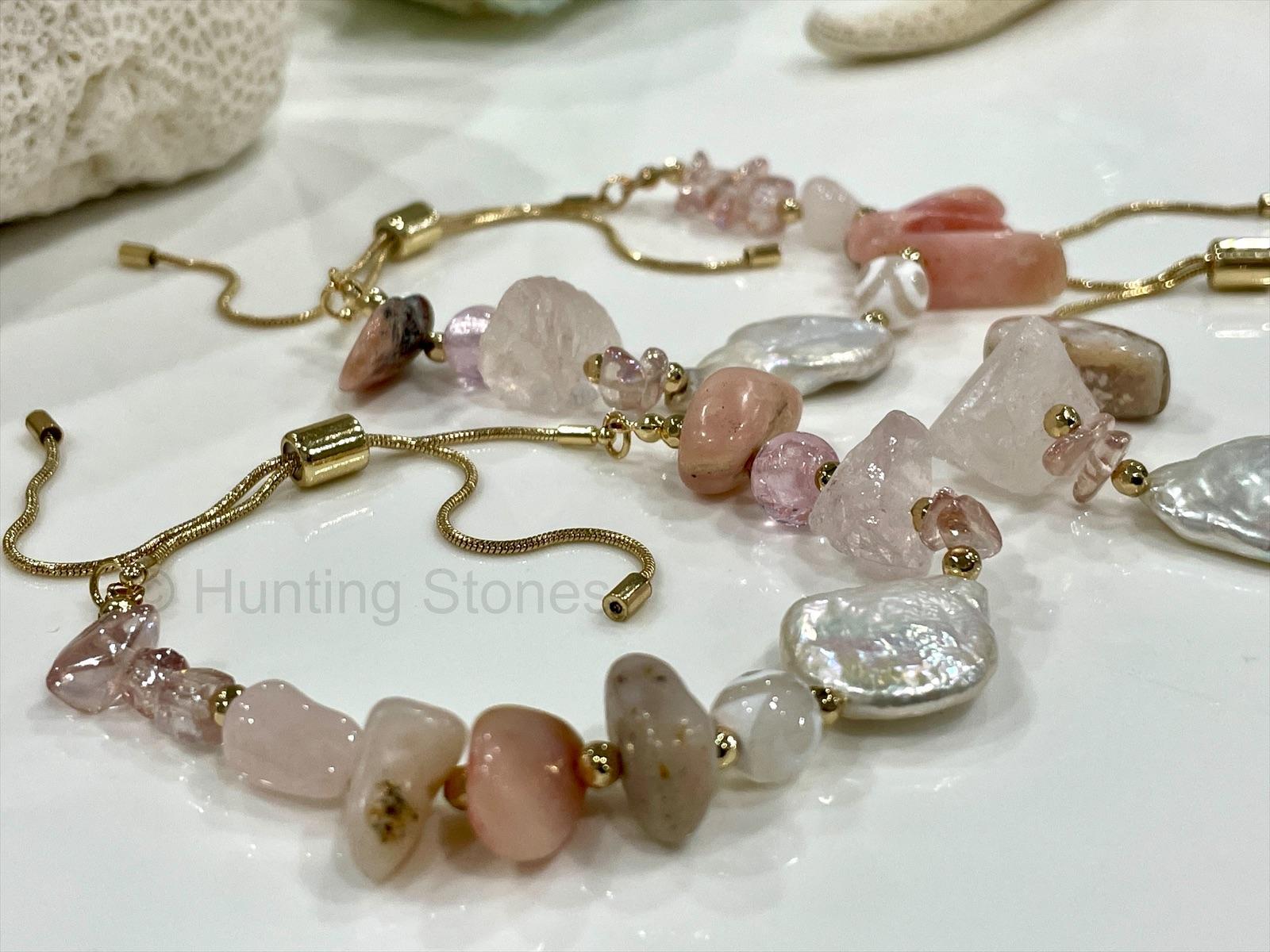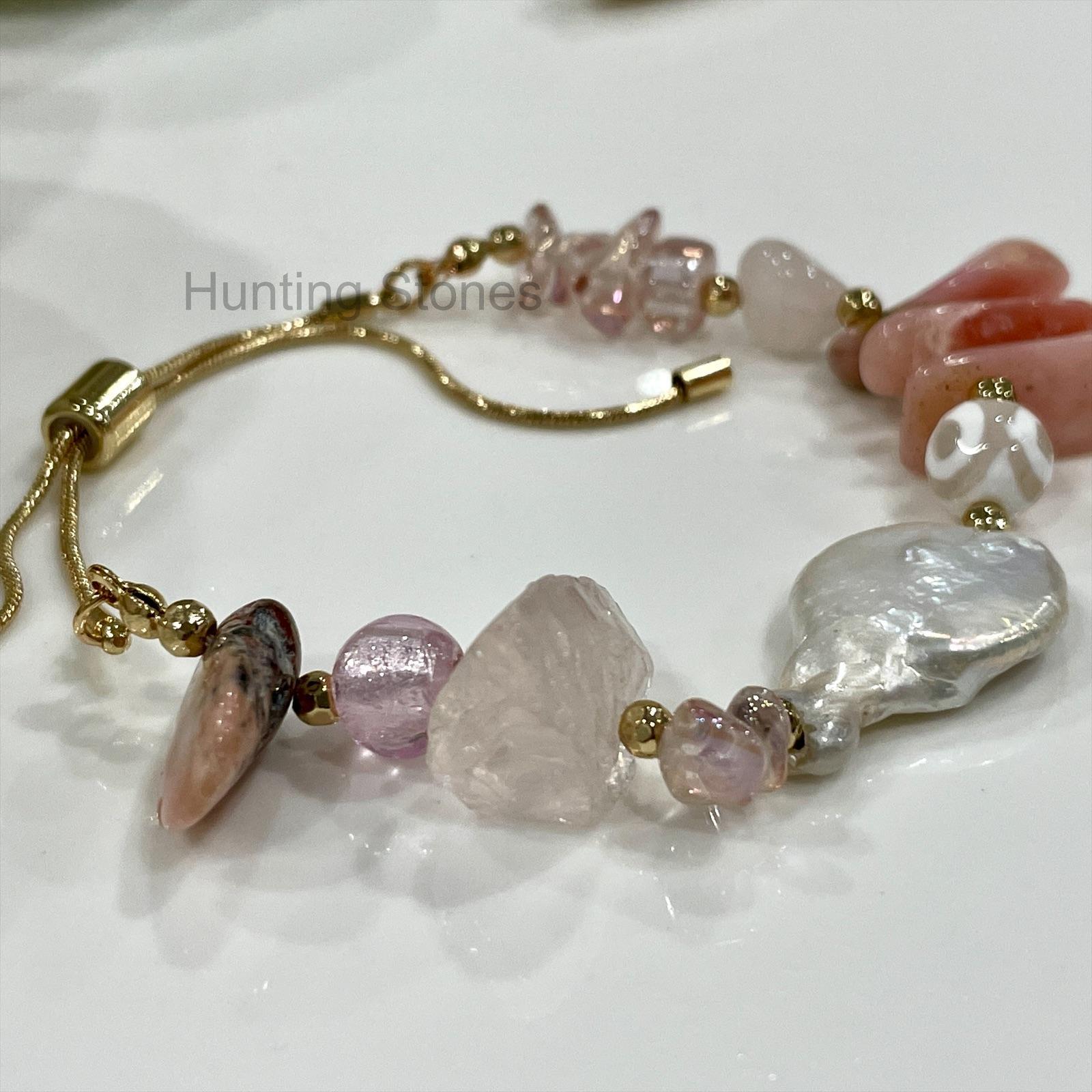 Natural Rose Quartz Crystal and Pink Opal Gemstone Bracelet