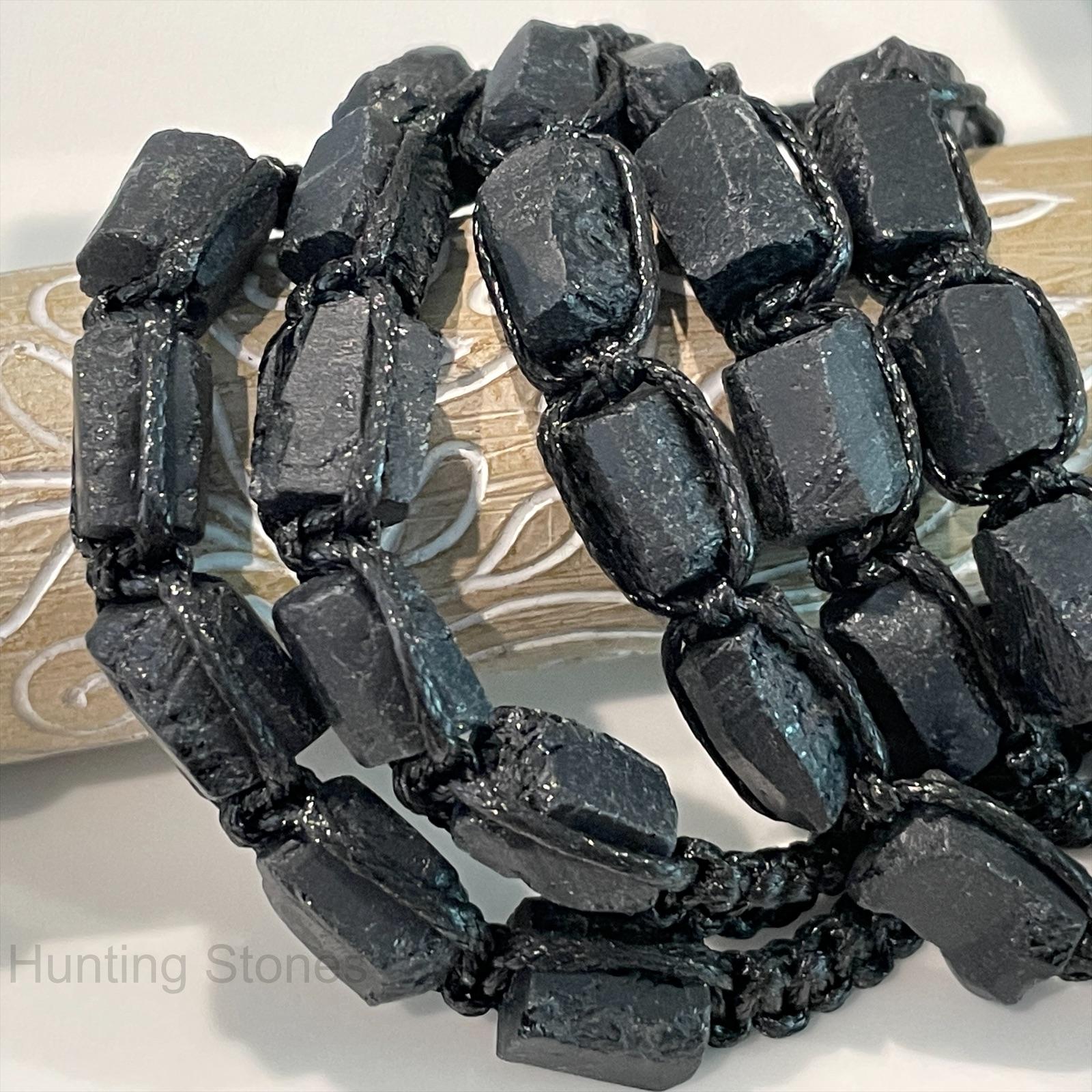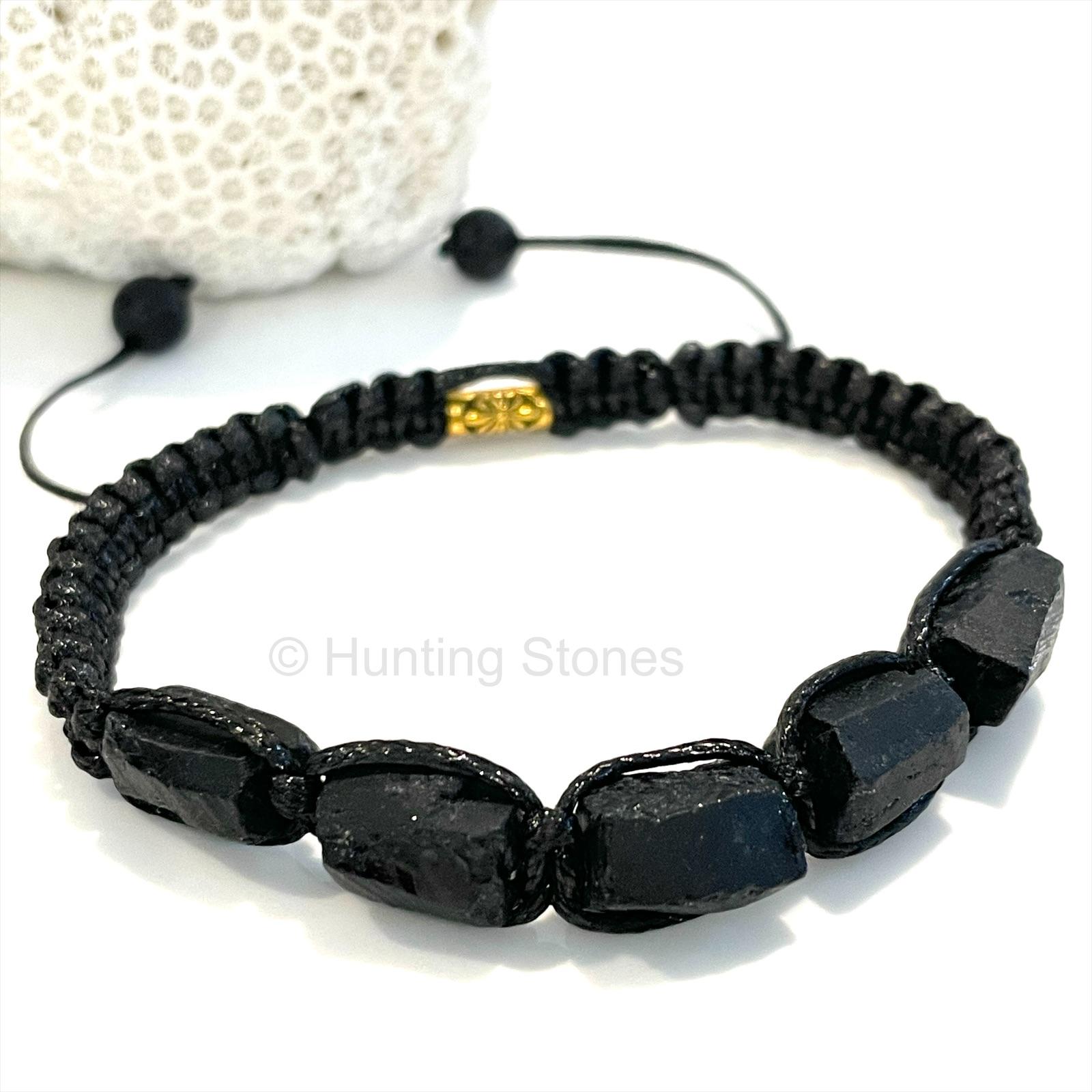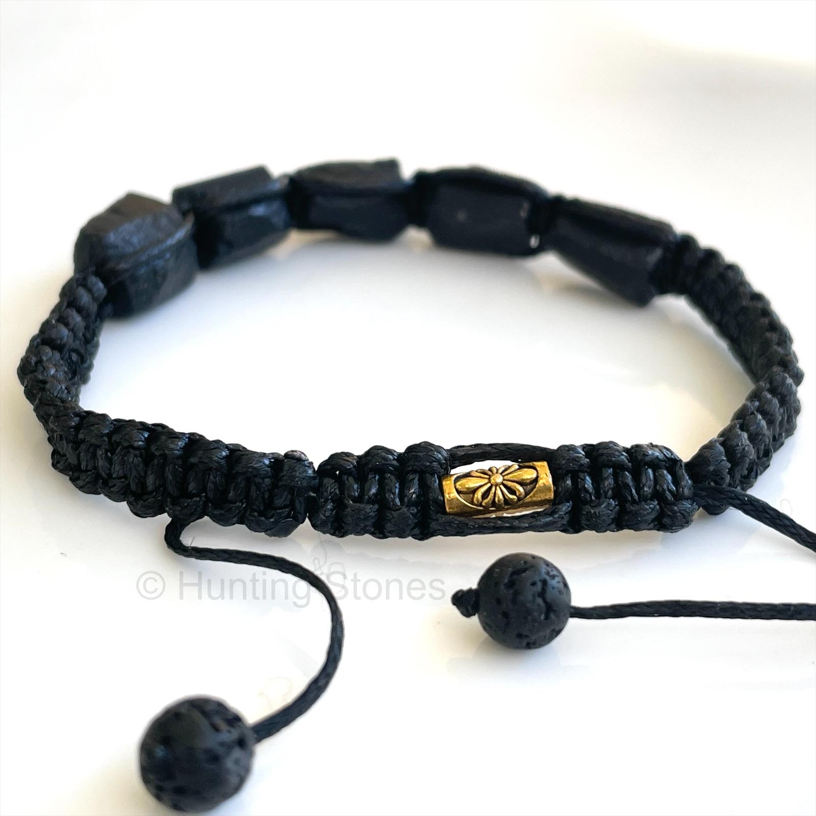 Natural Black Tourmaline bracelet – slide adjustable Unisex – 16.5 to 24cm – Protection Focus Cleansing