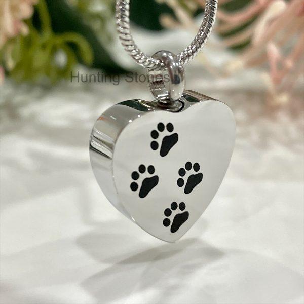 Pet Paw Heart Memorial Cremation Ashes Urn Pendant Necklace – Stainless Steel 20mm
