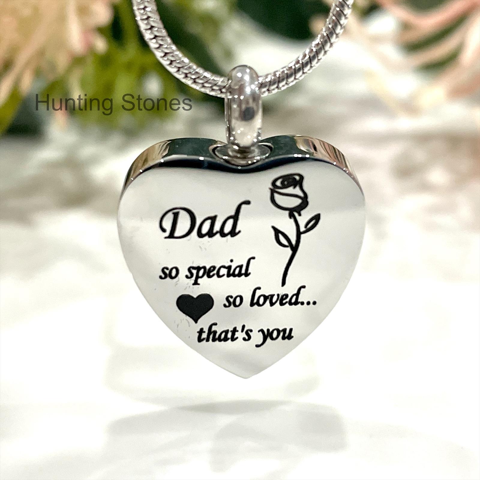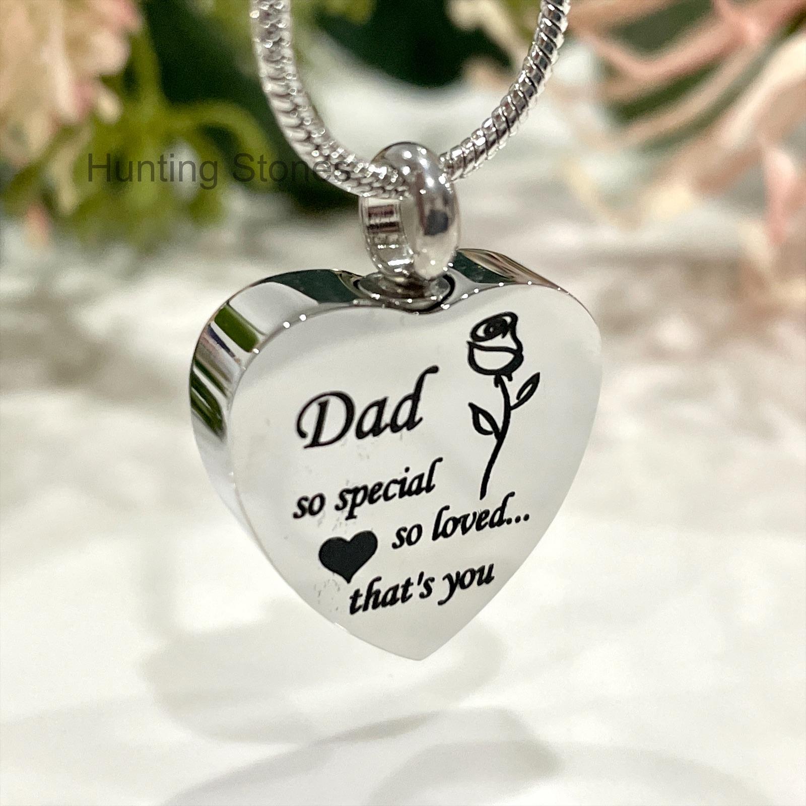 So Loved Dad Heart Memorial Keepsake Cremation Ashes Urn Pendant Necklace