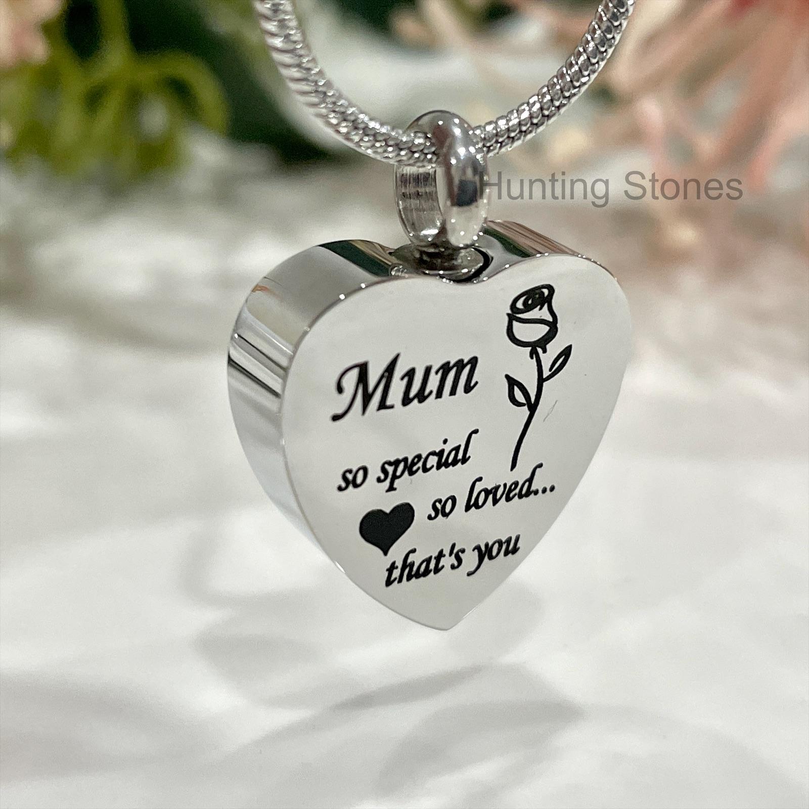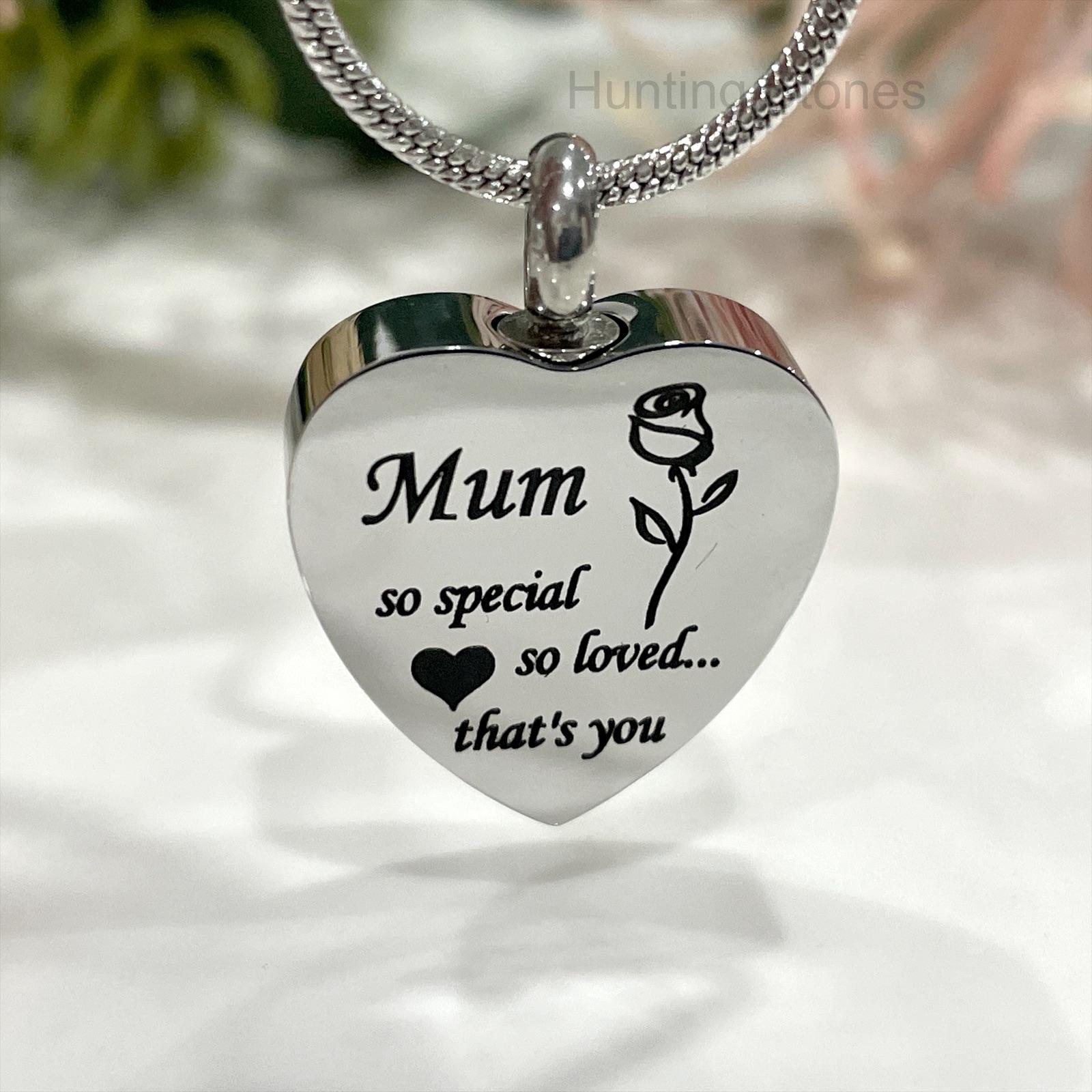So Loved Mum Heart Memorial Cremation Ashes Urn Pendant Necklace – Stainless Steel 20mm