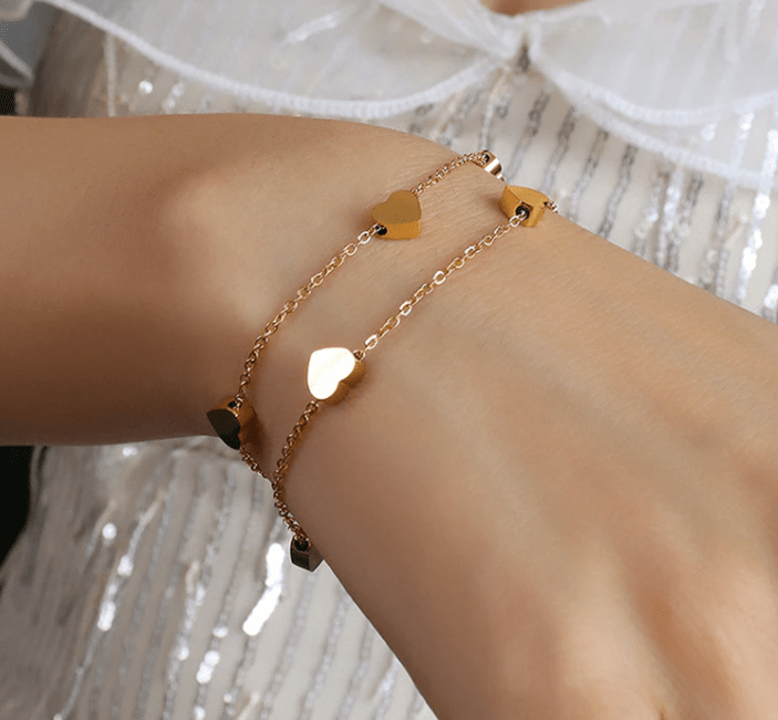 Stainless Steel Double Layer Floating Hearts Bracelet
