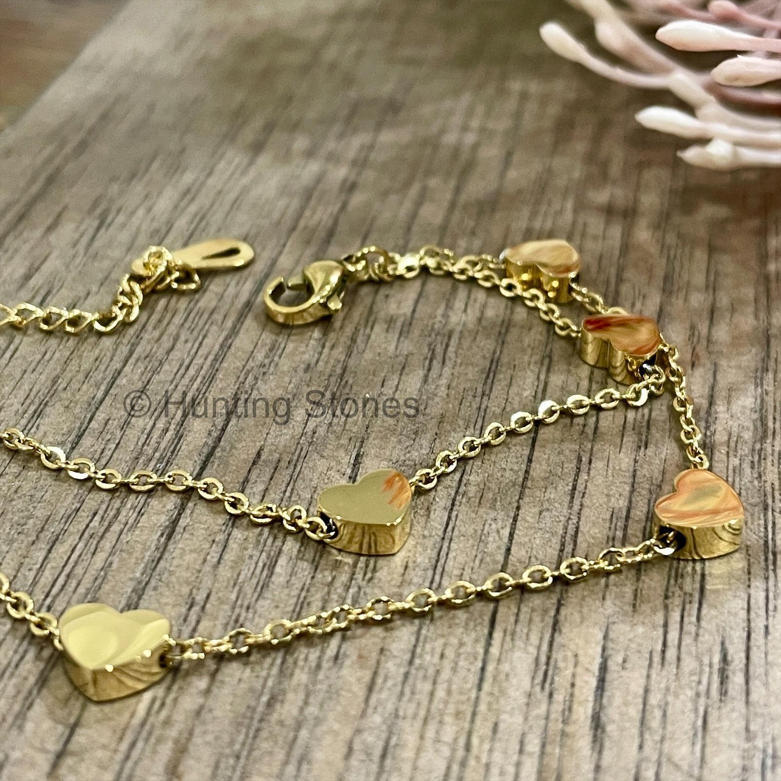 Stainless Steel Double Layer Floating Hearts Bracelet – 15 – 20 cm adjustable