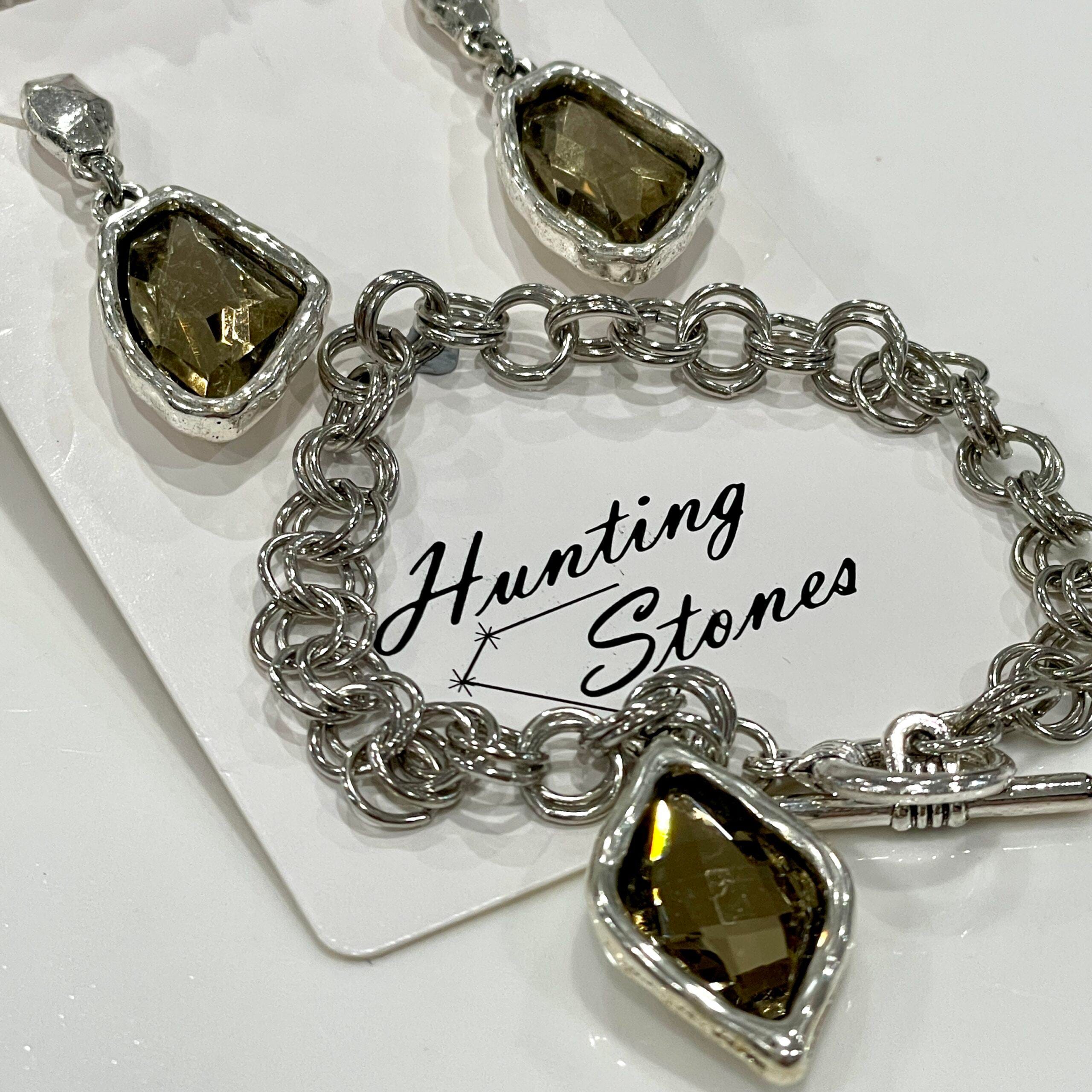 Stunning Brown Topaz Glass Crystal Earrings – Matching Bracelet 19cm