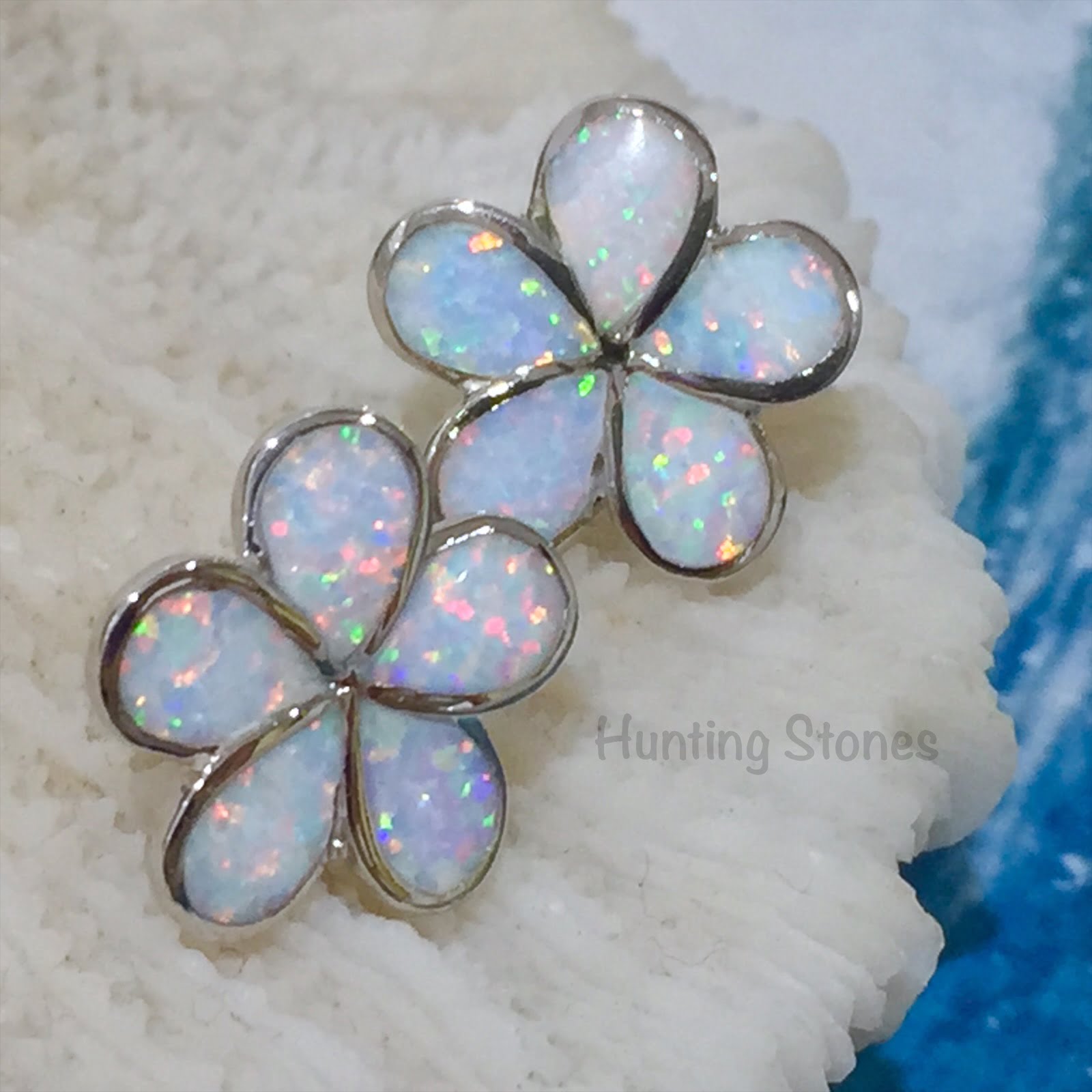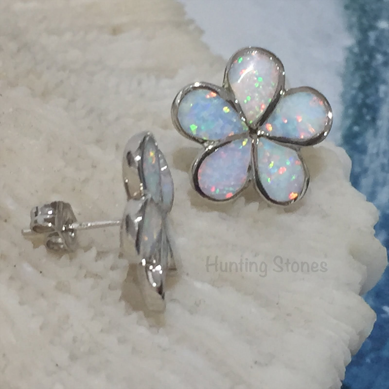 Stunning Fire Opal Flower Earrings Silver inlay 17mm White