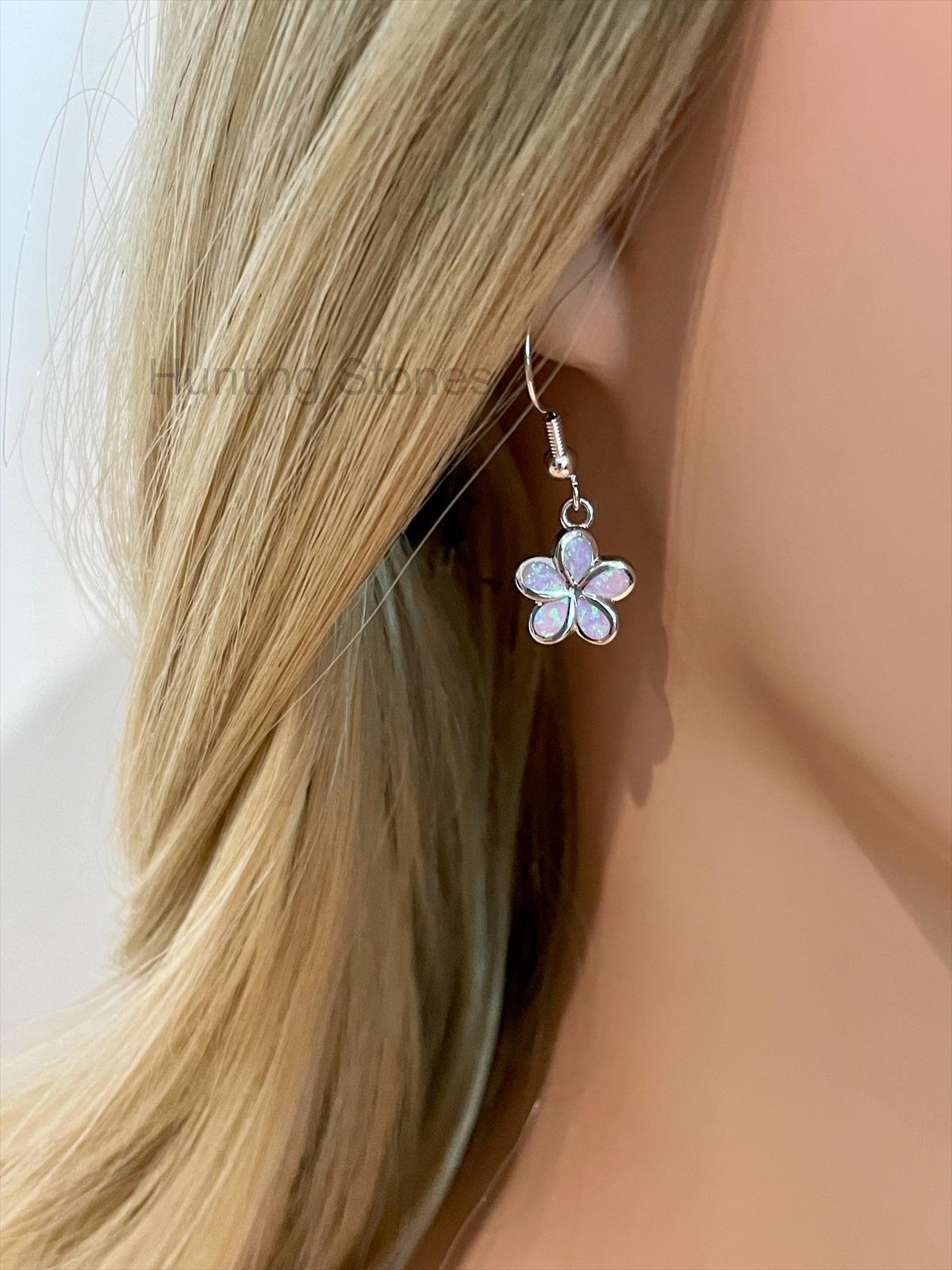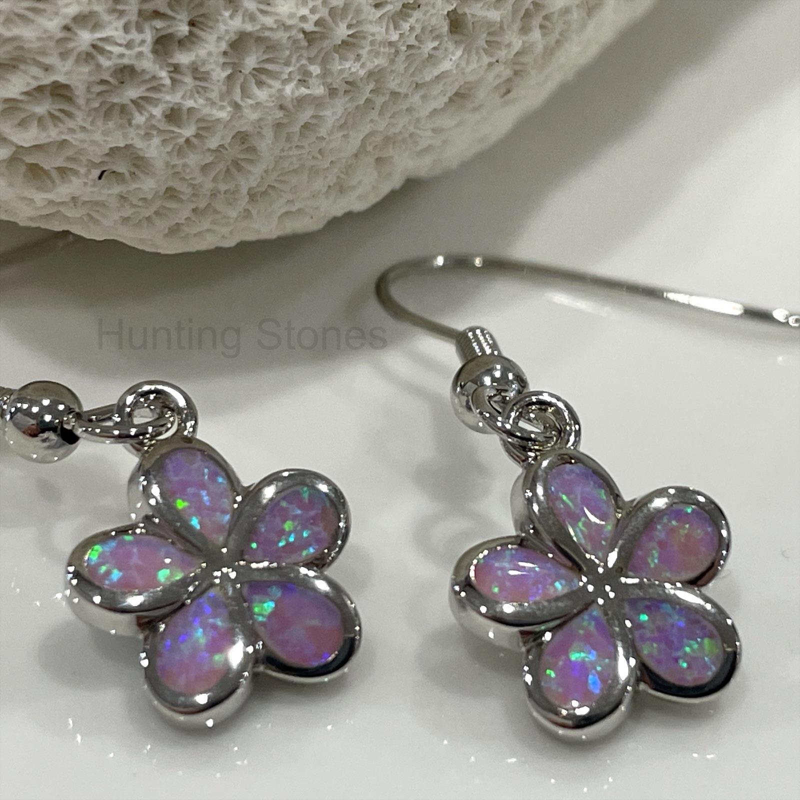 Stunning Pink Fire Opal Flower Earrings Silver inlay 11mm
