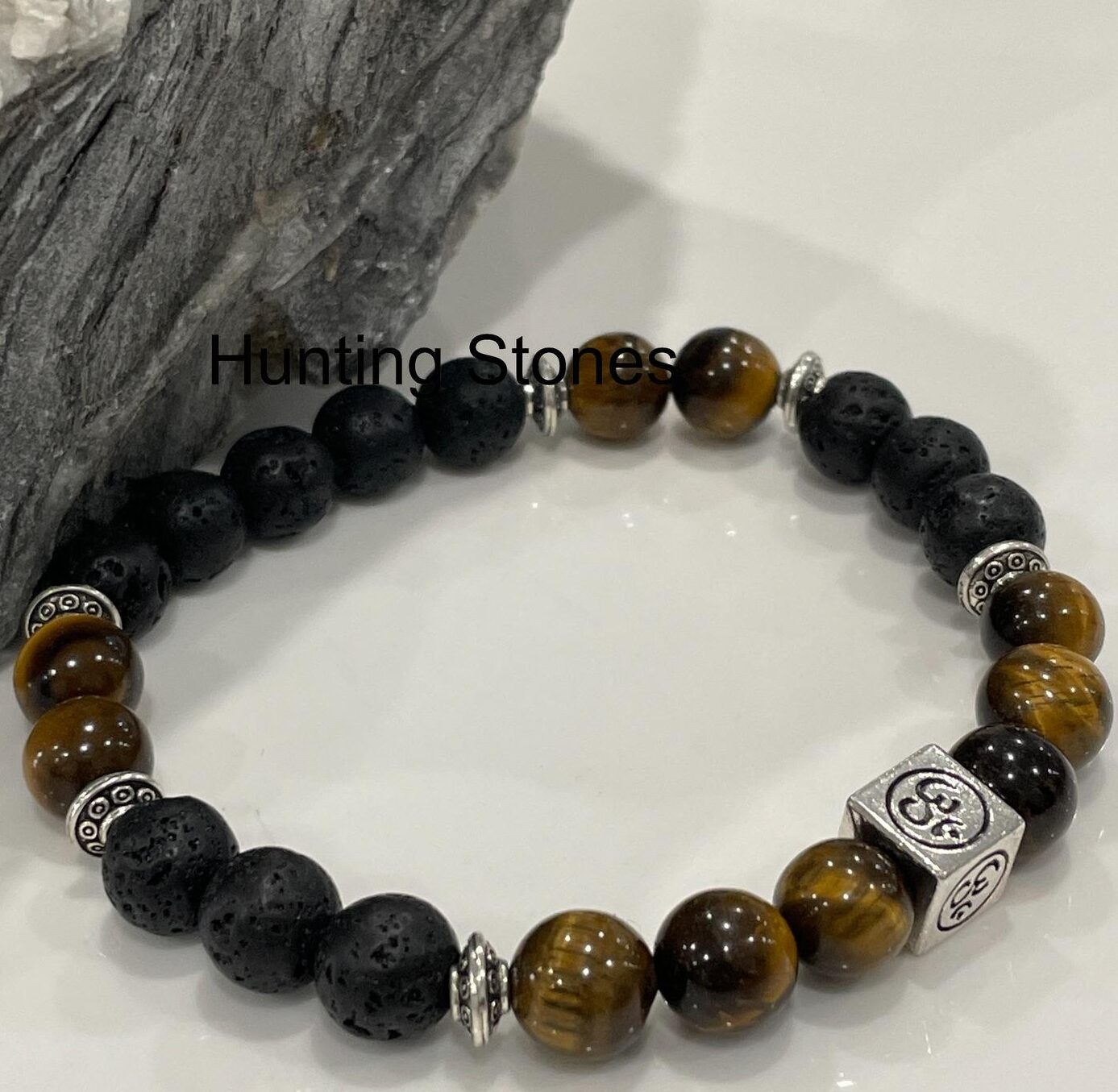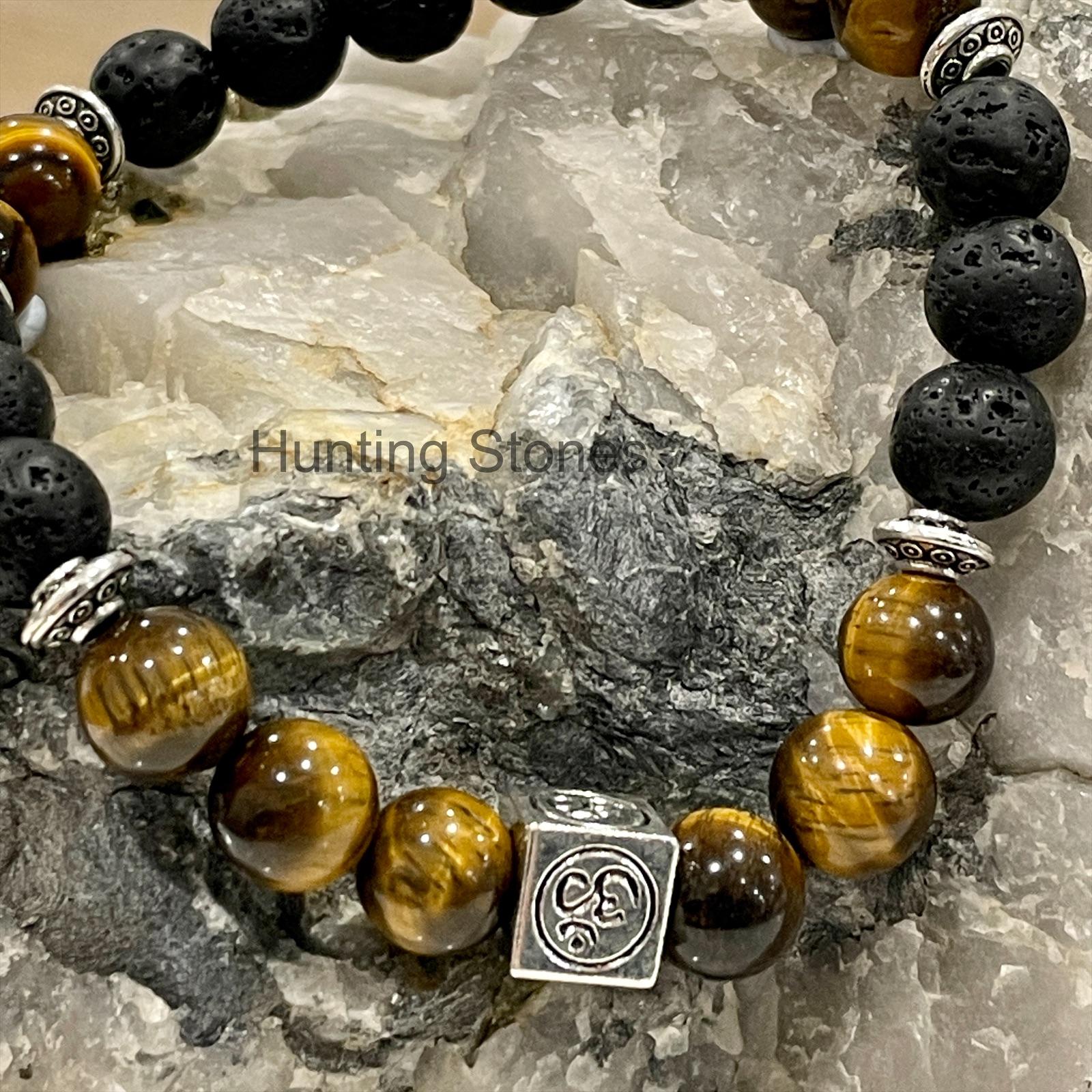 Unisex Aromatherapy Essential oil Natural Lava and Tiger’s Eye Om Bracelet