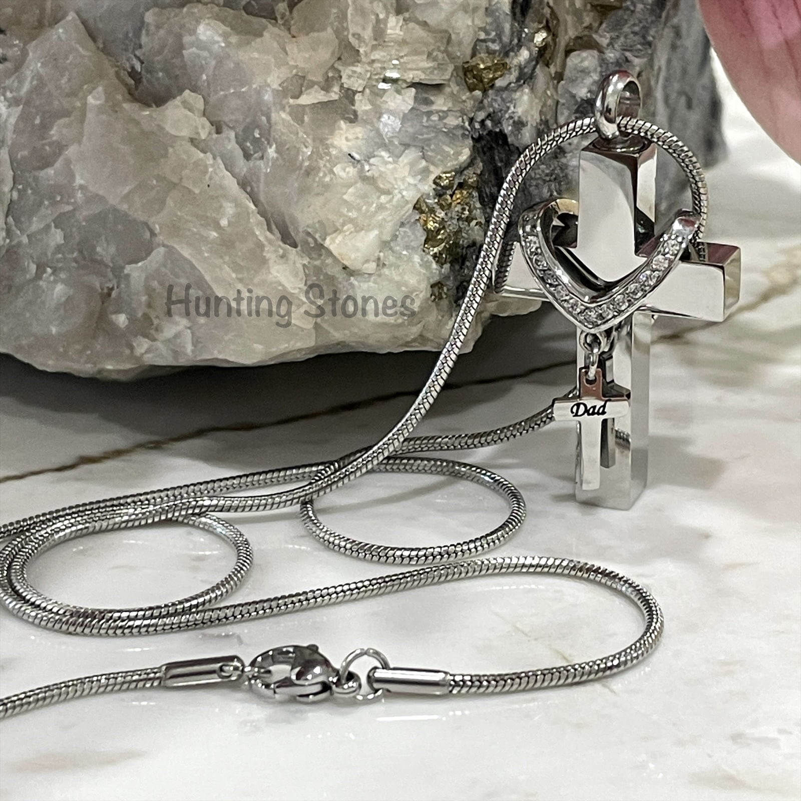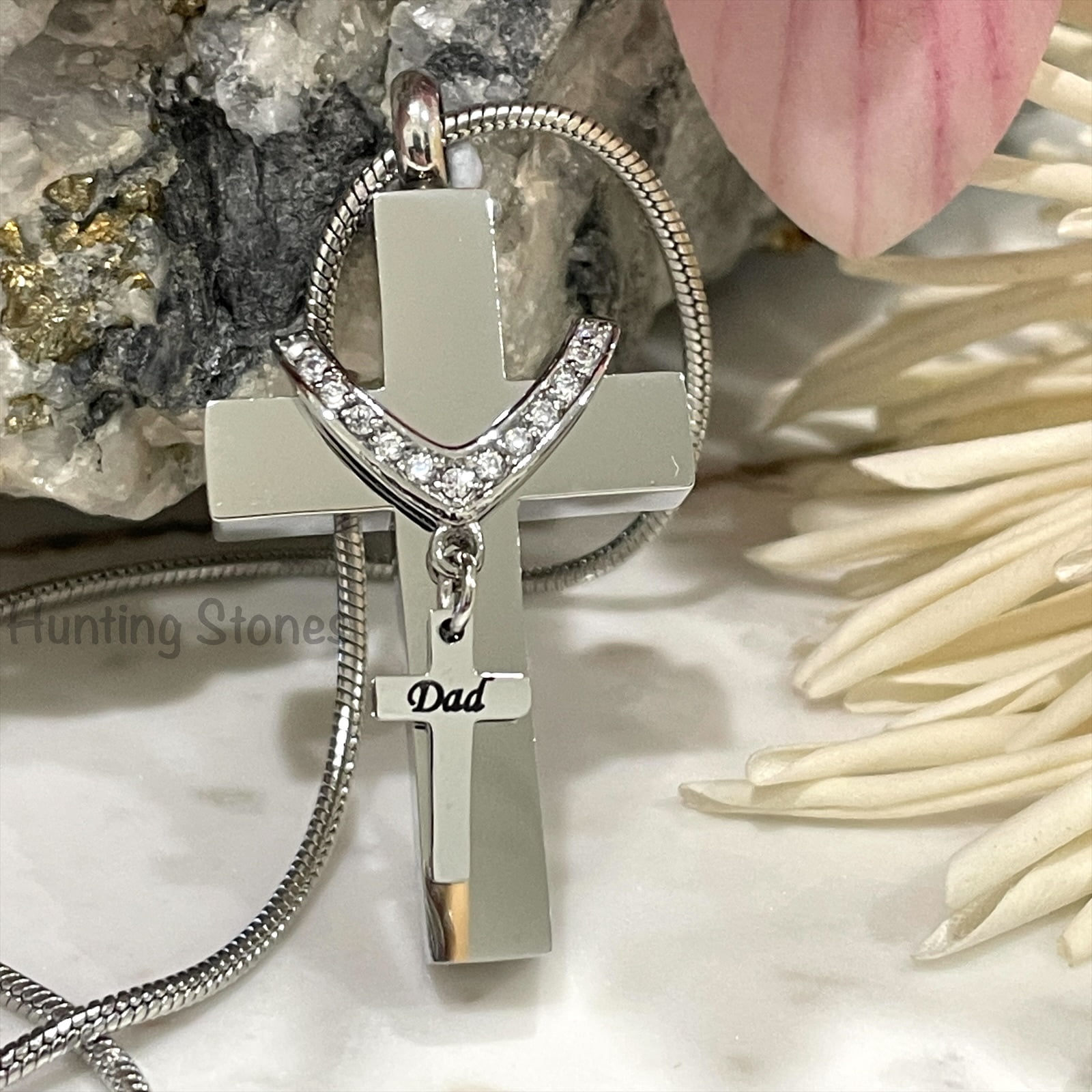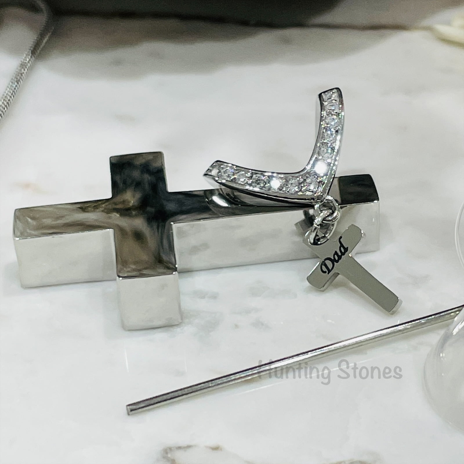 Unisex Dad Cross Memorial Cremation Ashes Urn Pendant Necklace