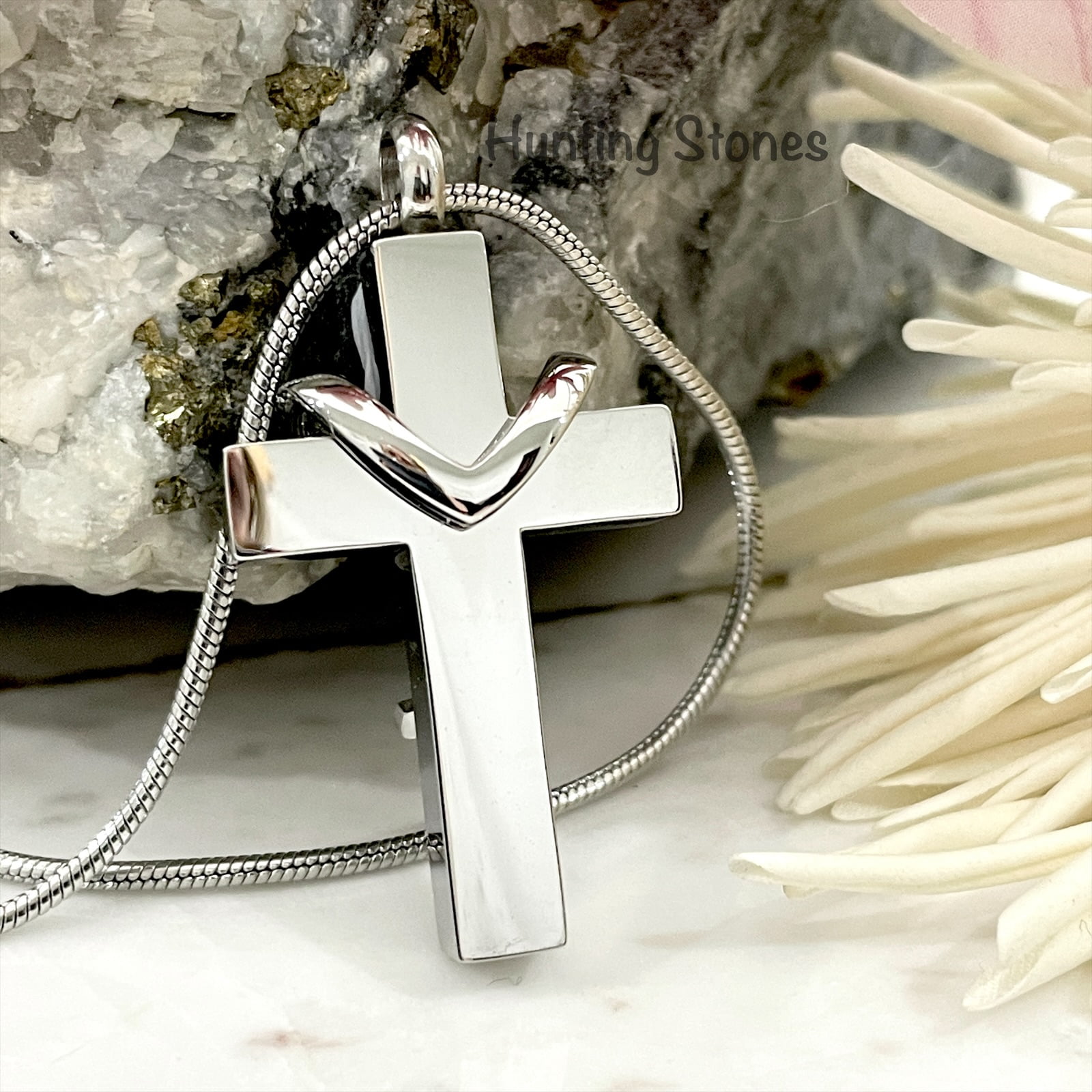 Unisex Dad Cross Memorial Cremation Ashes Urn Pendant Necklace – Quality Stainless Steel Silver 36mm