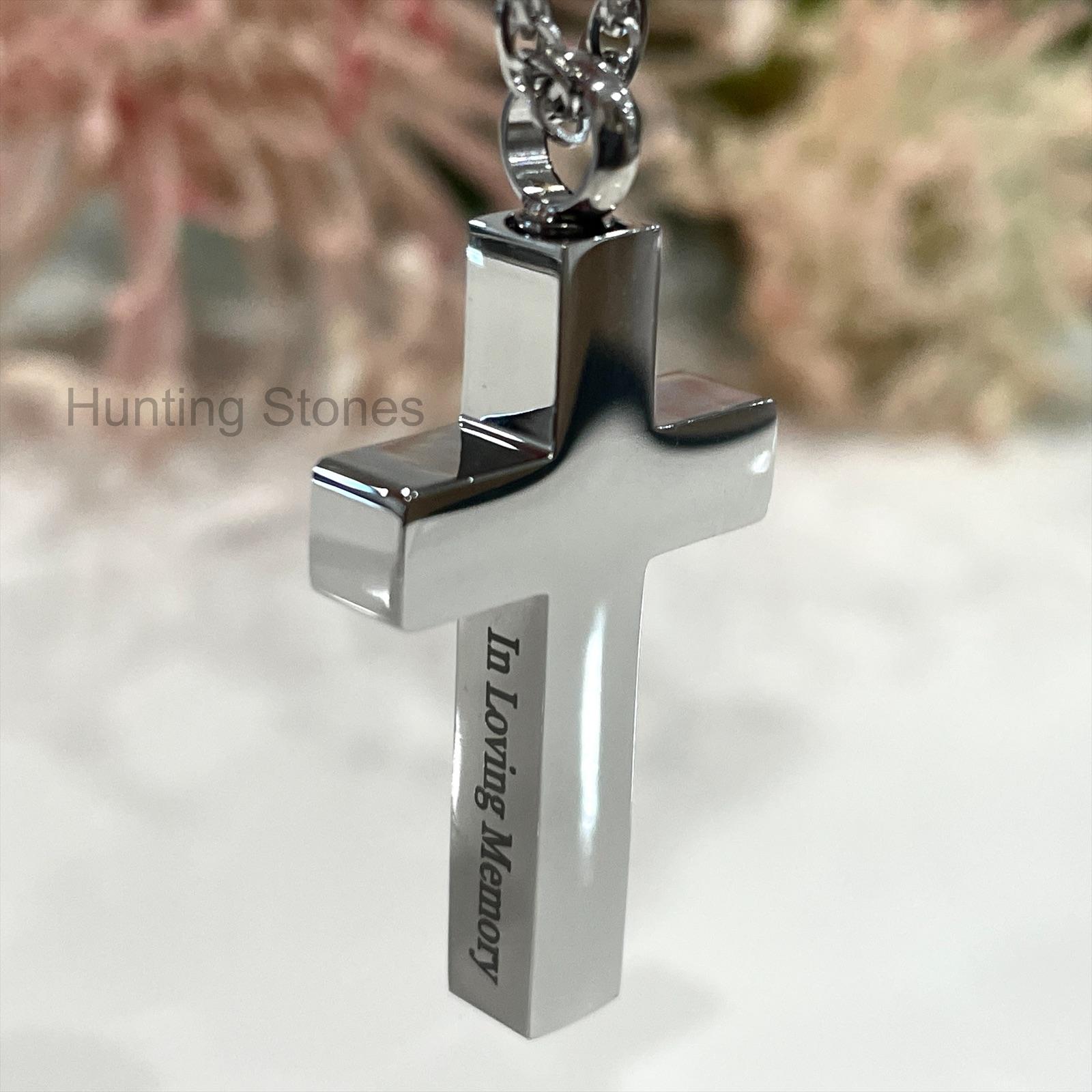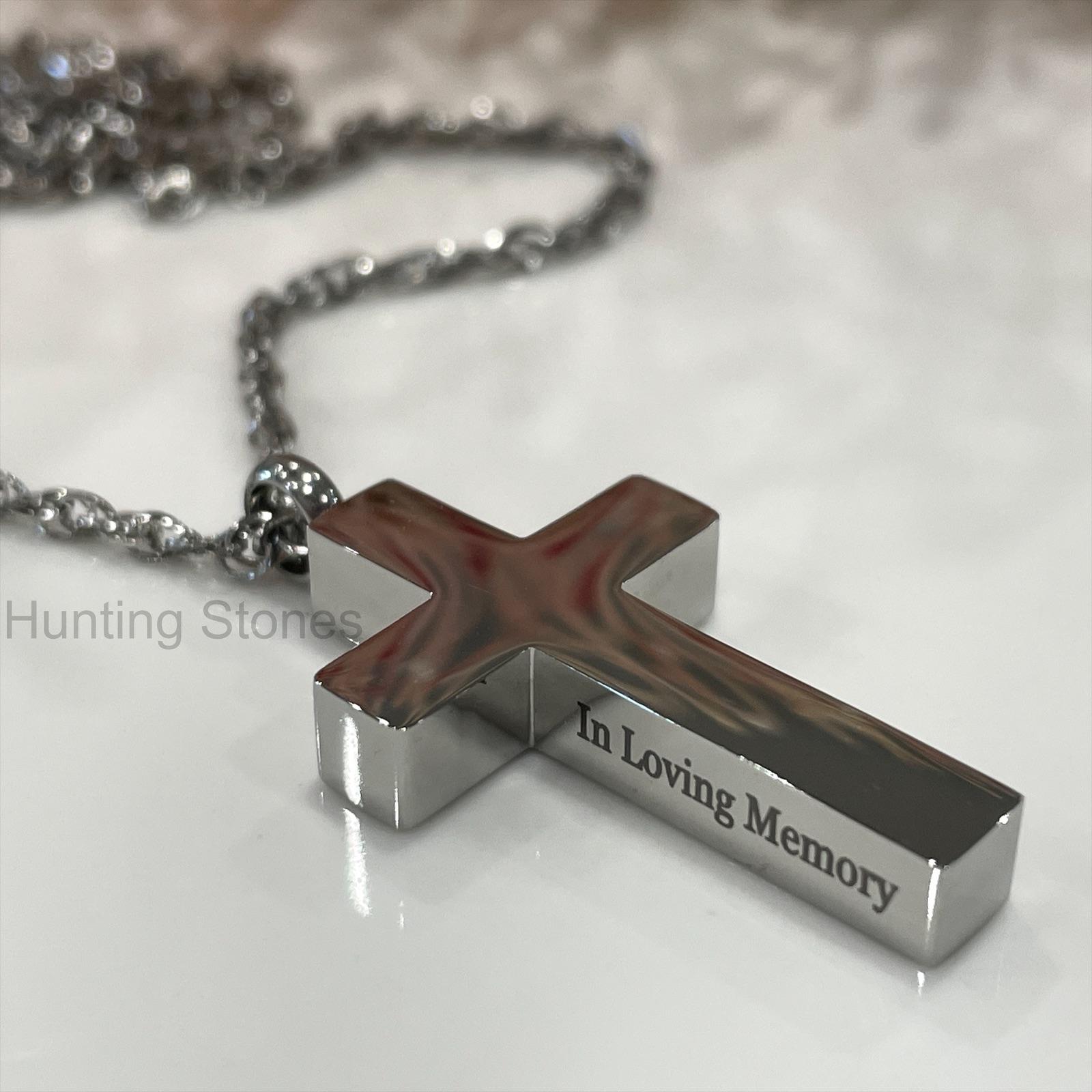 Unisex In Loving Memory Cross Memorial Cremation Ashes Urn Pendant Necklace – Quality Stainless Steel Silver 31mm