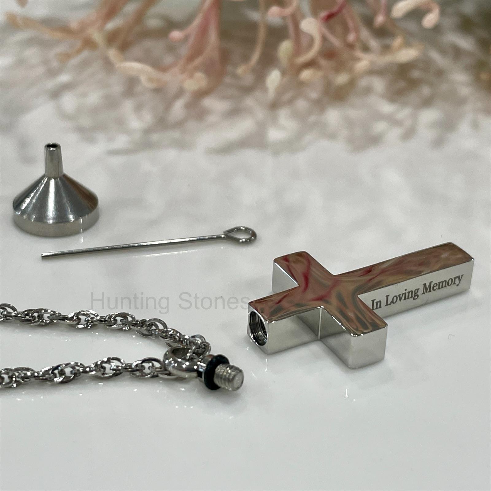 Unisex In Loving Memory Cross Memorial Cremation Ashes Urn Pendant Necklace