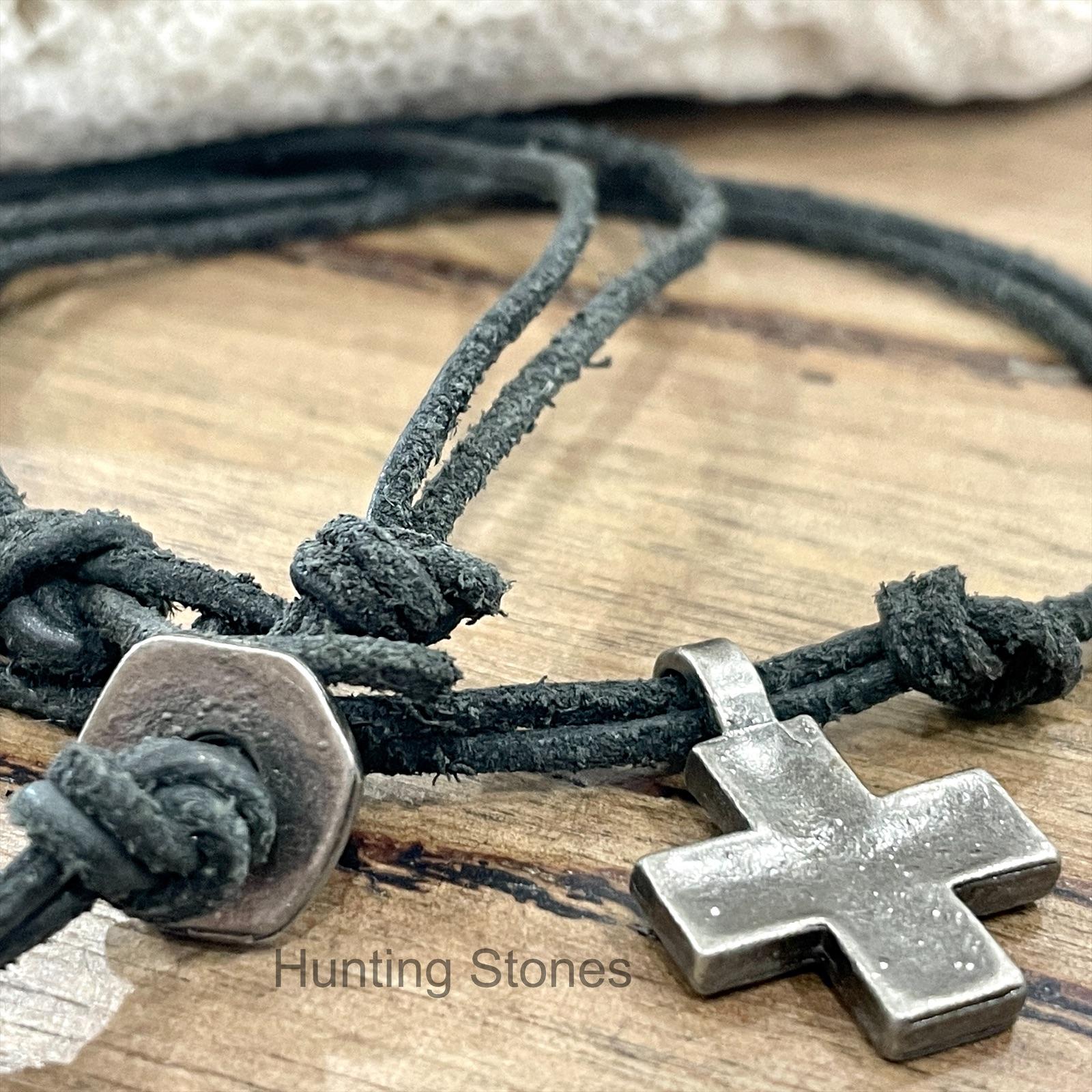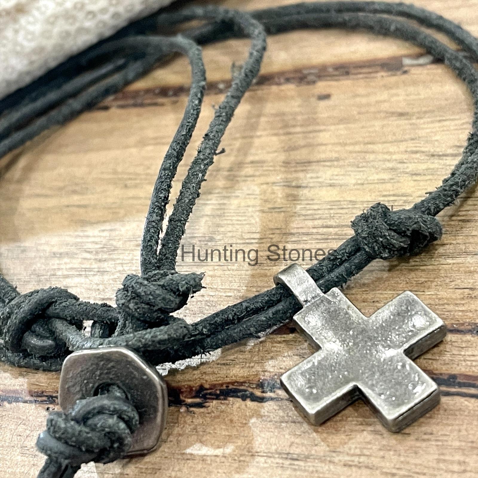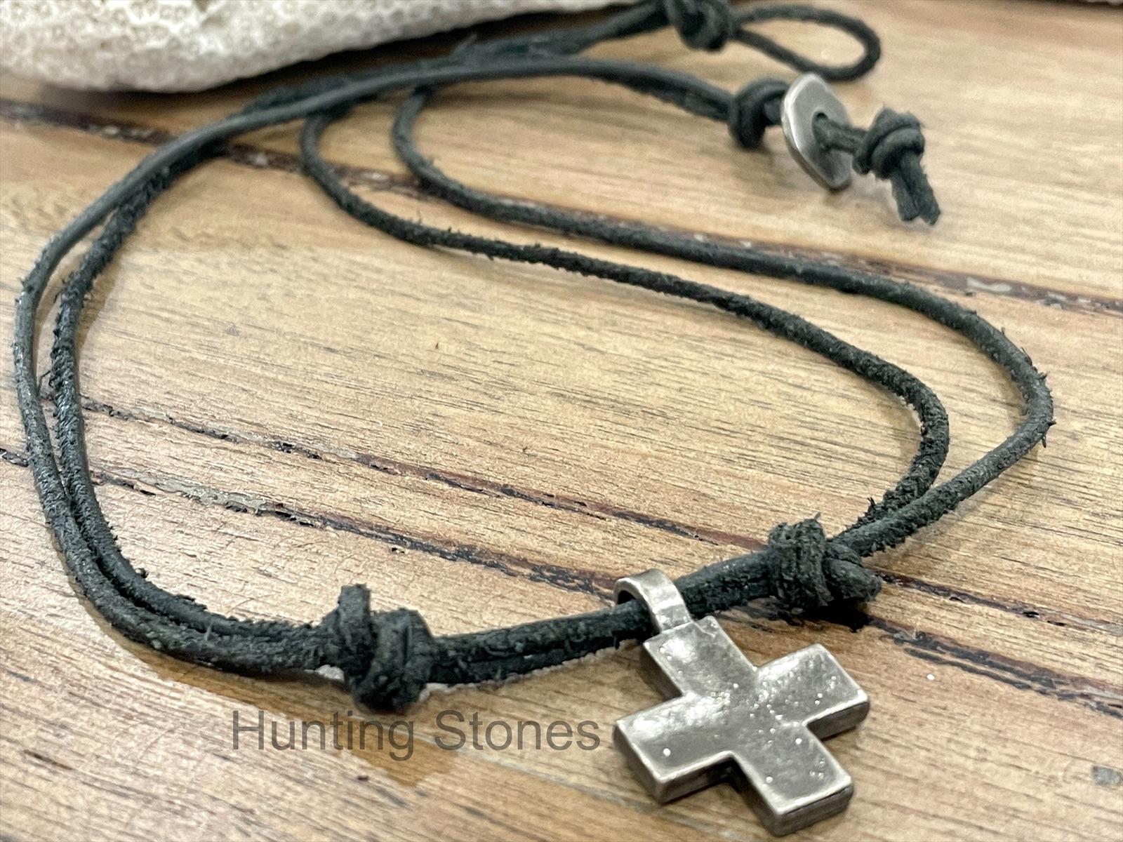 Unisex Metal Cross on Genuine leather necklace – 47cm